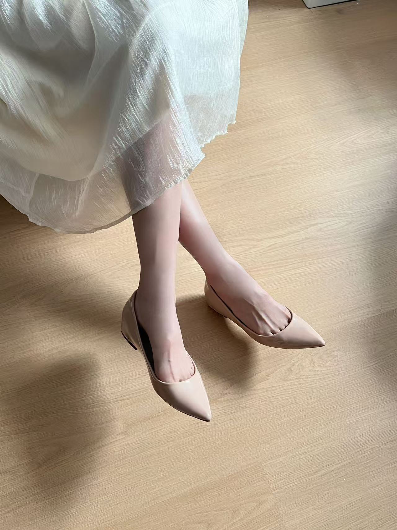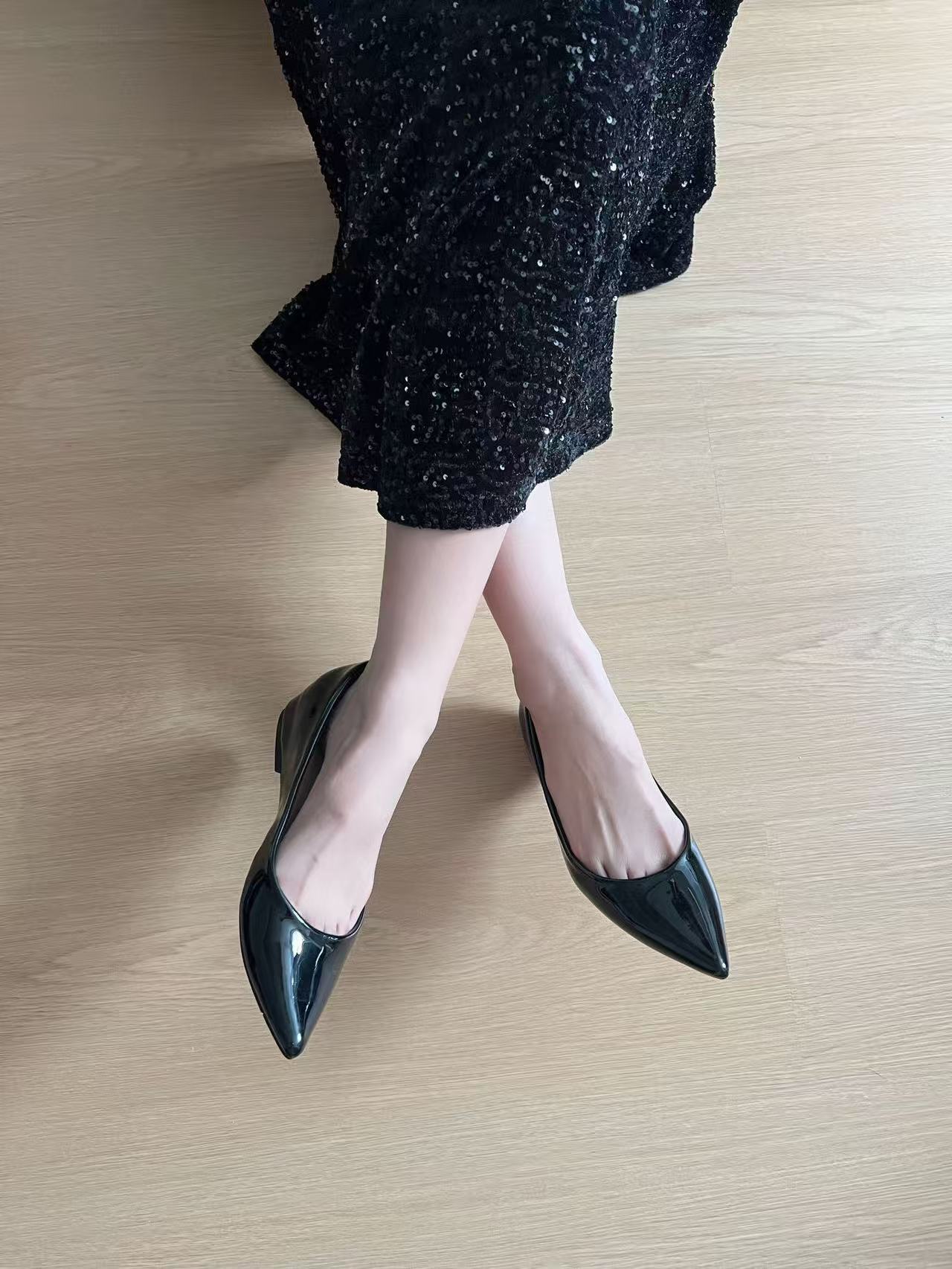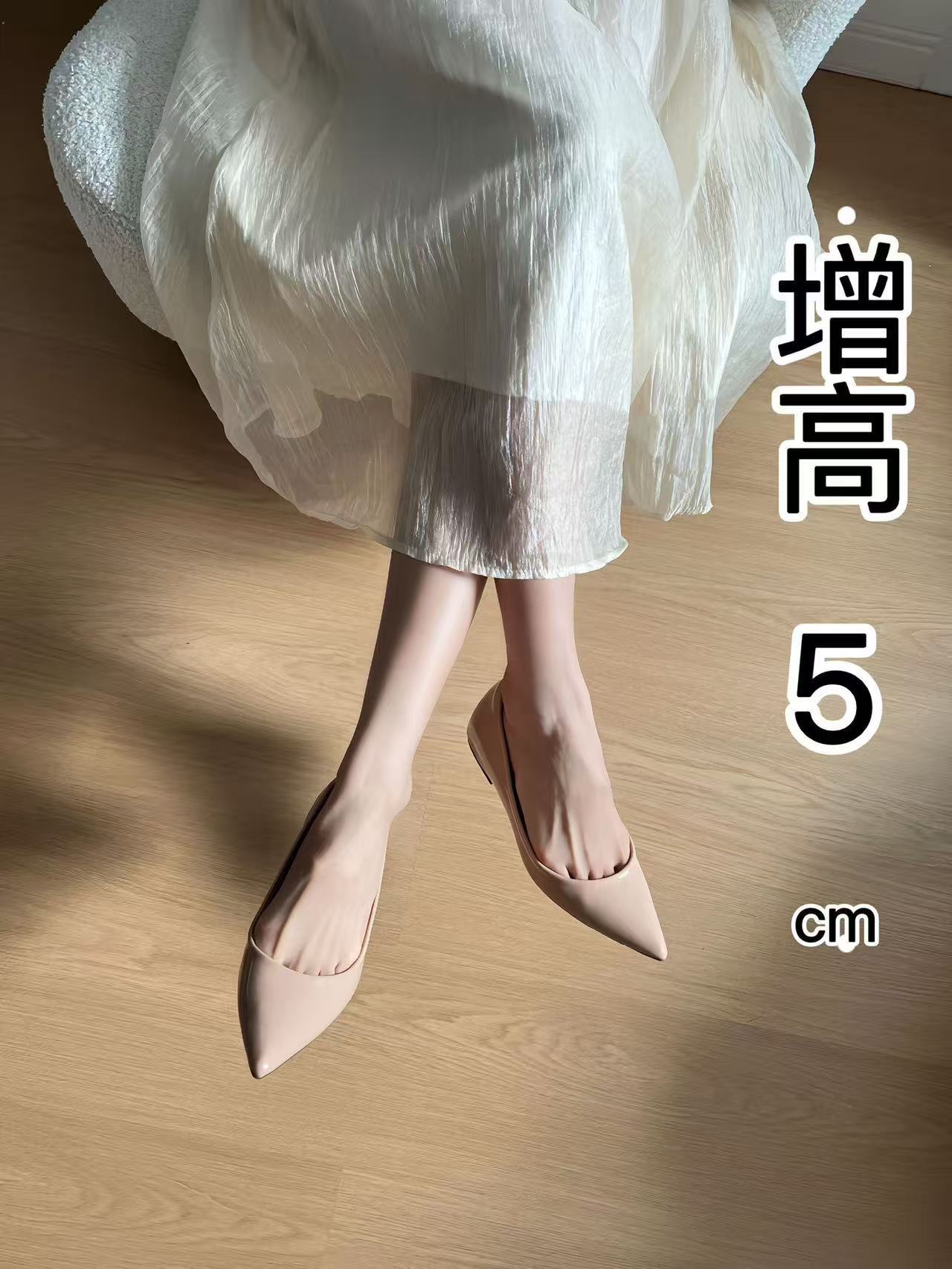 2025년 여름 신상품, 내부 높이가 5cm 증가한 뾰족한 앞코 얕은 구두, 다재다능한 여성화