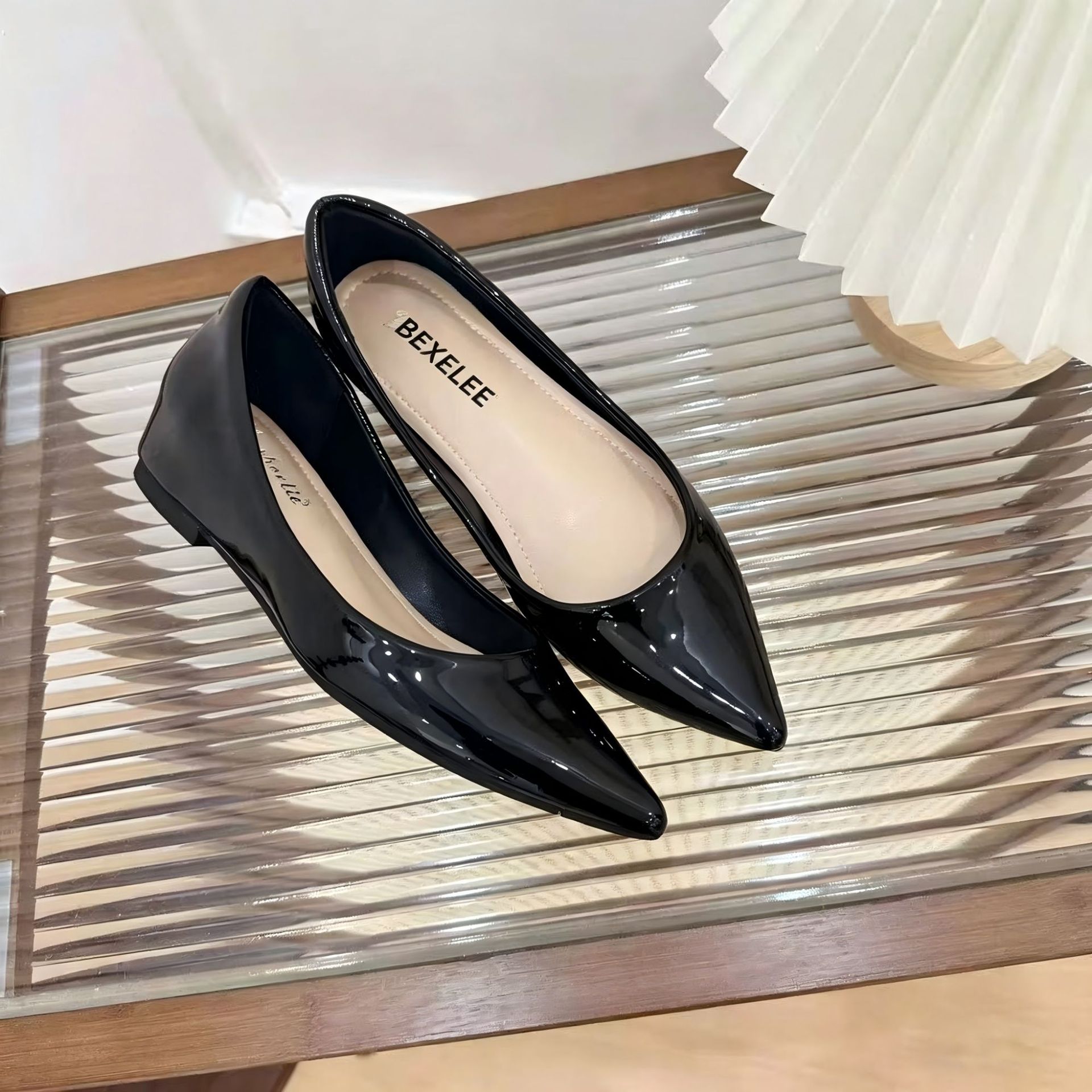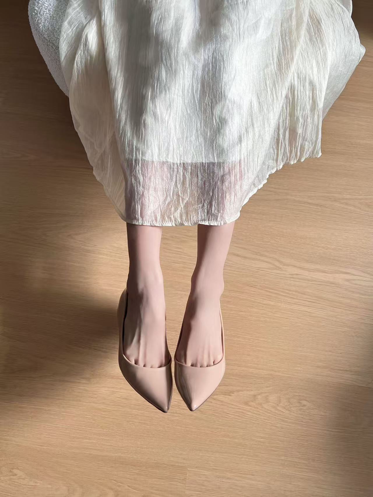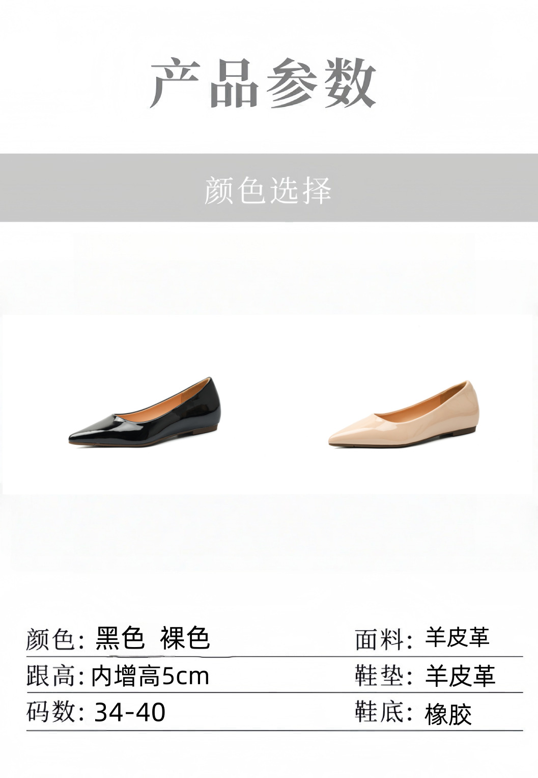 2025년 여름 신상품, 내부 높이가 5cm 증가한 뾰족한 앞코 얕은 구두, 다재다능한 여성화