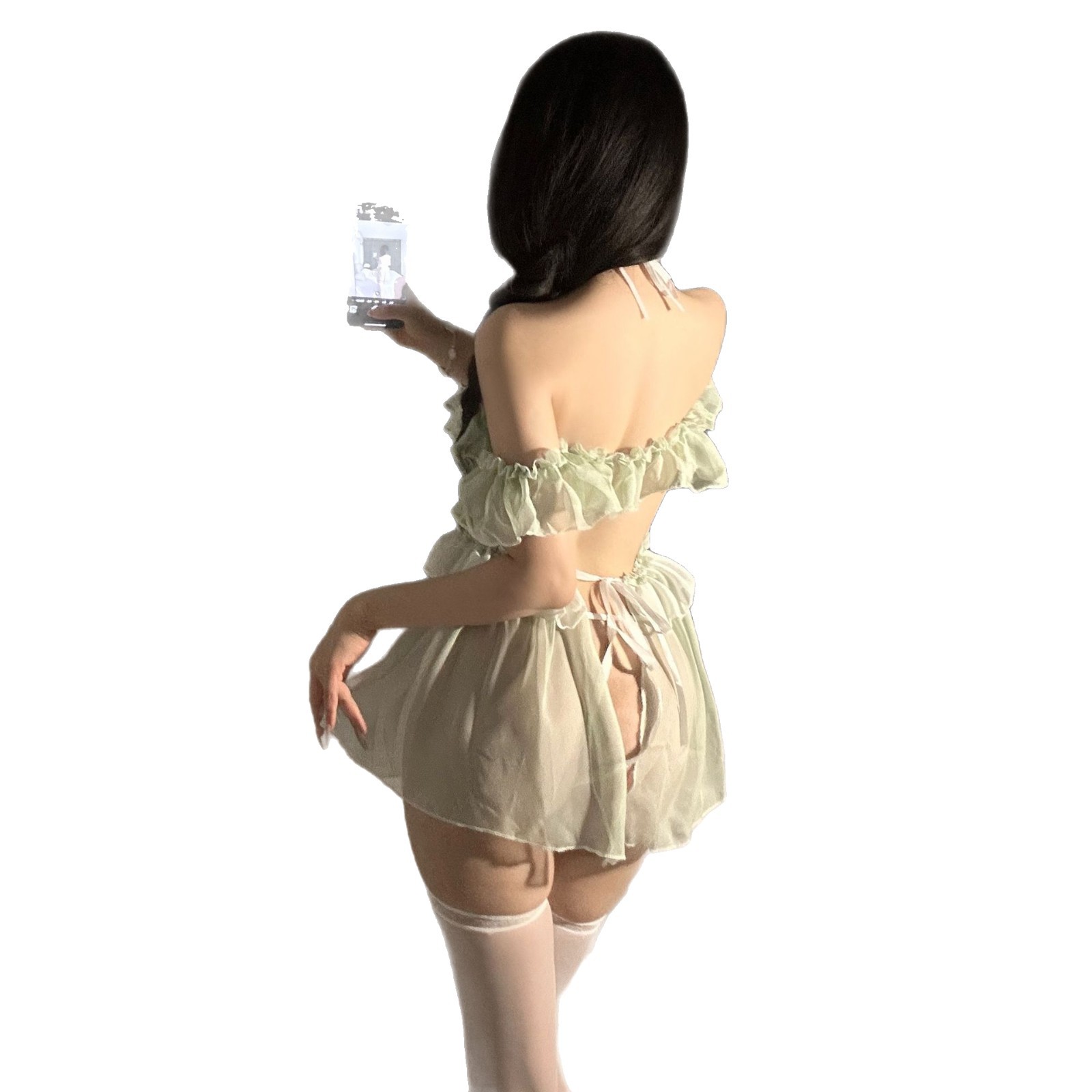 야간 섹시 속옷, 순수하고 달콤한 엉덩이 노출 시스루 드레스, 섹시한 순수한 욕망 공주 qqny 금욕 잠옷