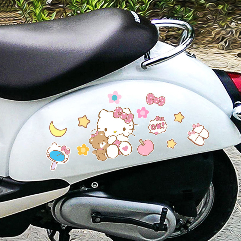 귀여운 만화 KT 고양이 오토바이 전기 자동차 스티커 스크래치 차단 배터리 자동차 헬멧 장식 노트북 스티커