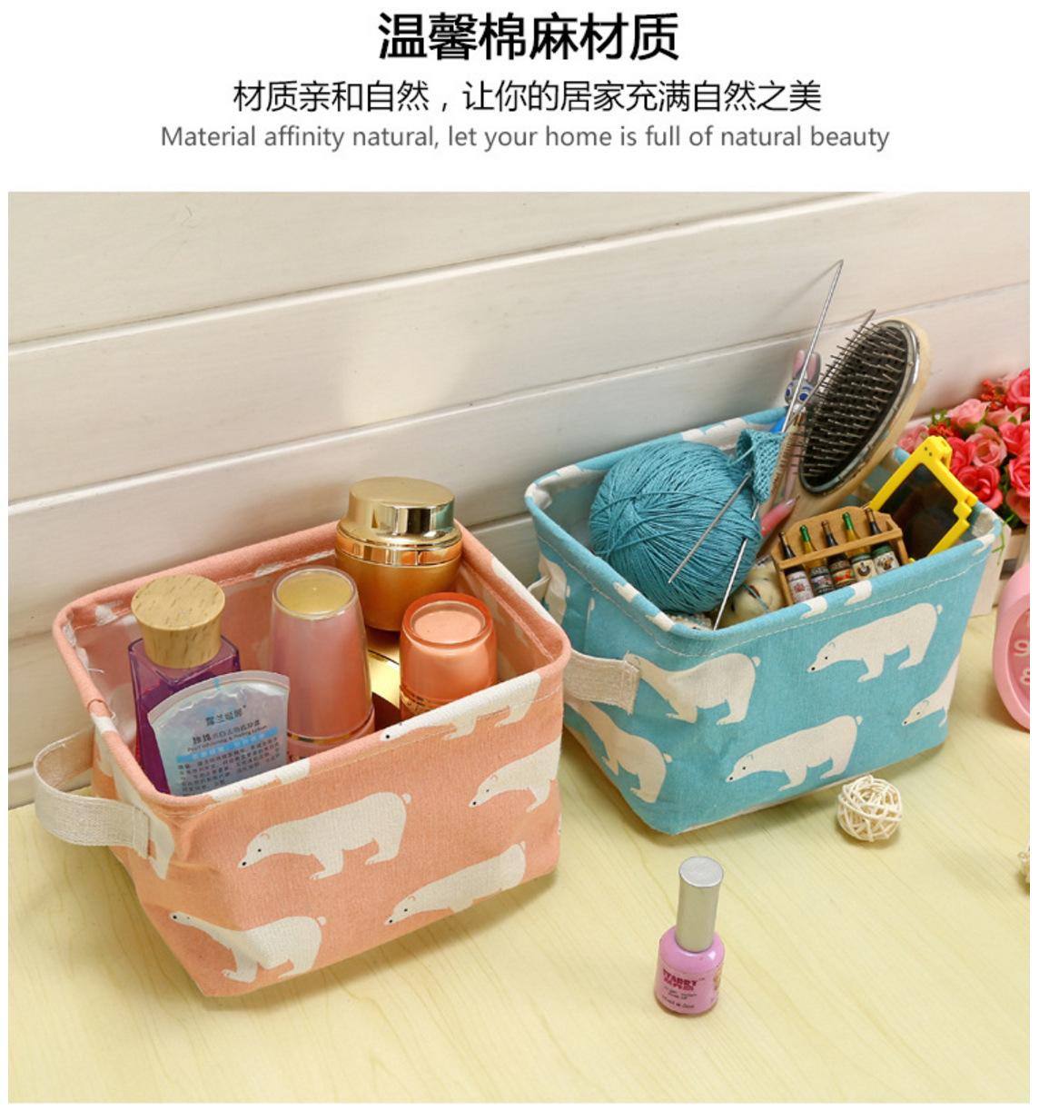 크리 에이 티브 홈 zakka 패션 코튼과 린넨 스토리지 바구니 휴대용 방수 목욕 바구니 사무실 데스크탑 스토리지 박스