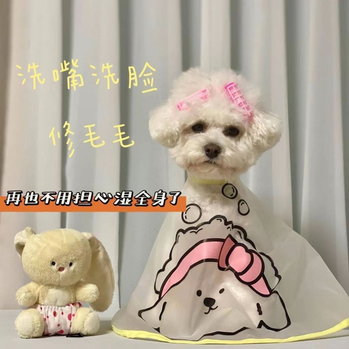 강아지 귀여운 방수 턱받이, 세안망토, 목욕앞치마, 배꼽받이, 애완동물 생일 강아지 턱받이, 휴대용 목베개
