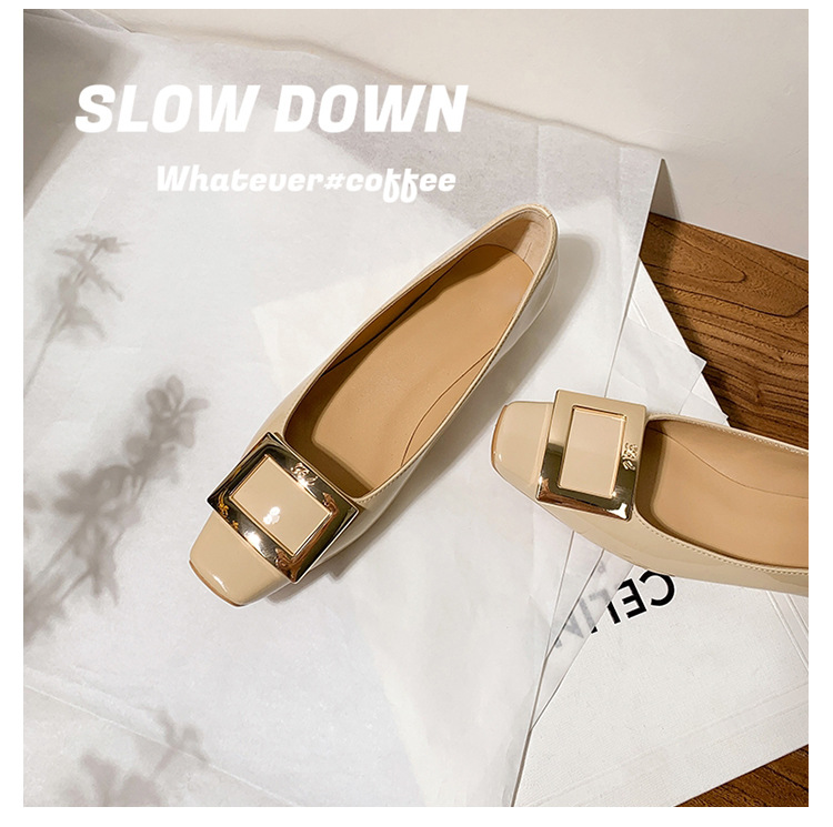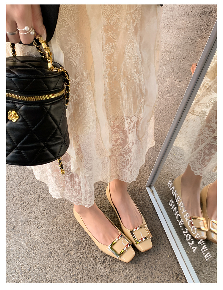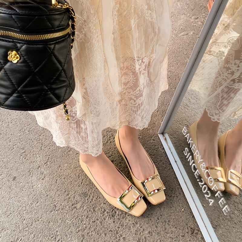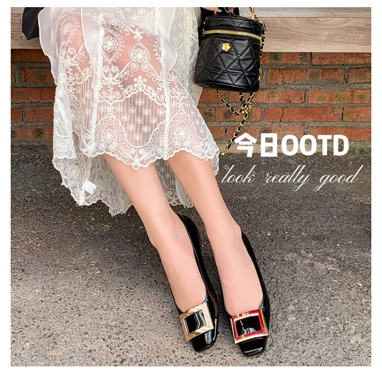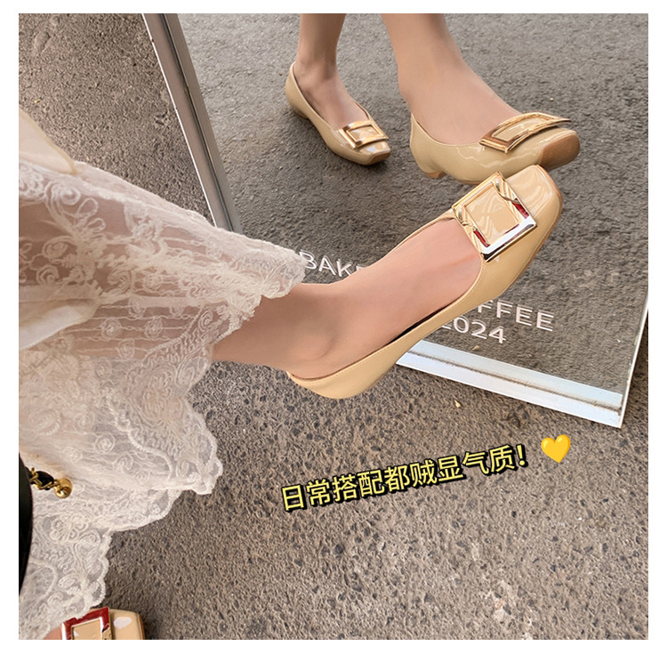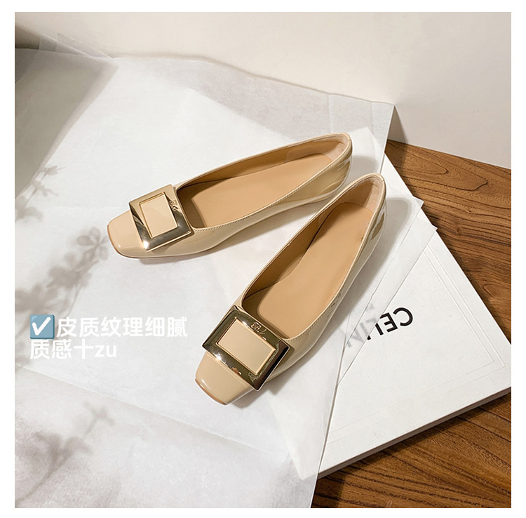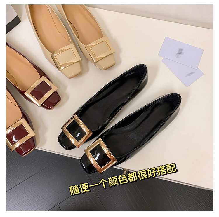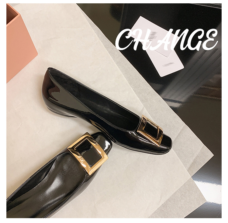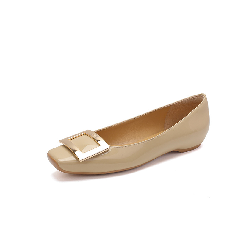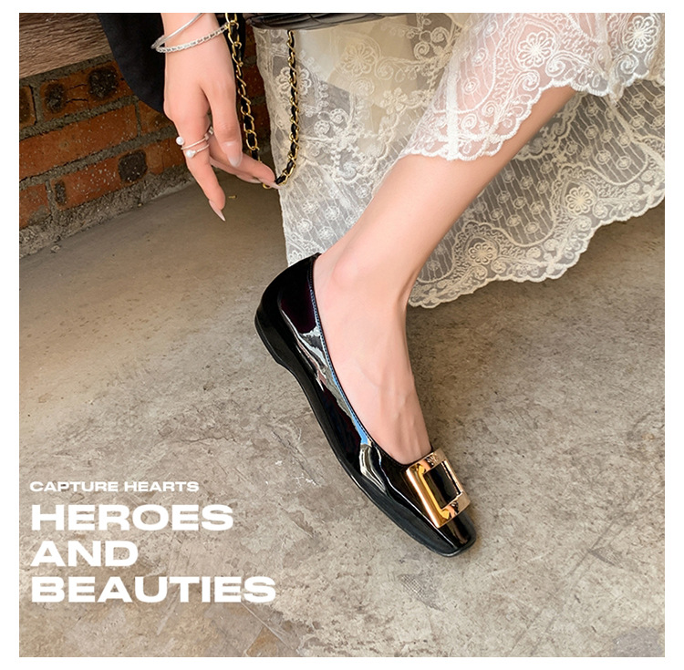 클래식 스퀘어 버클 여성용 신발, 천연 가죽, 데일리 다용도 페이턴트 가죽 스퀘어 토 슈즈, 데일리용 여성용 플랫 슈즈