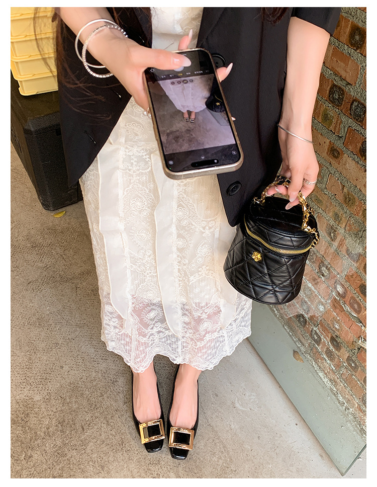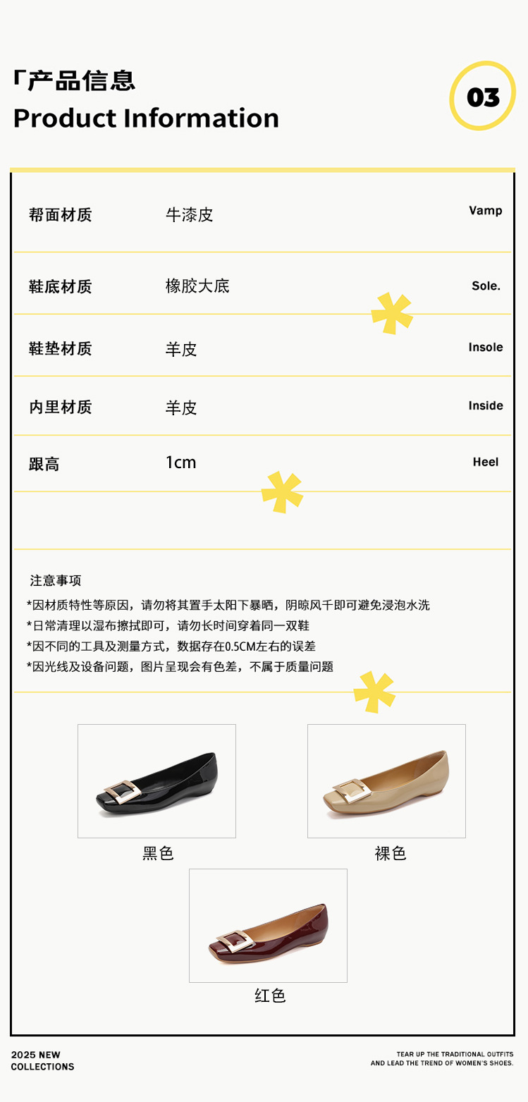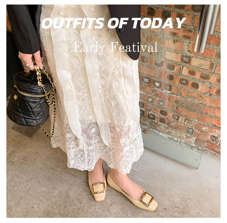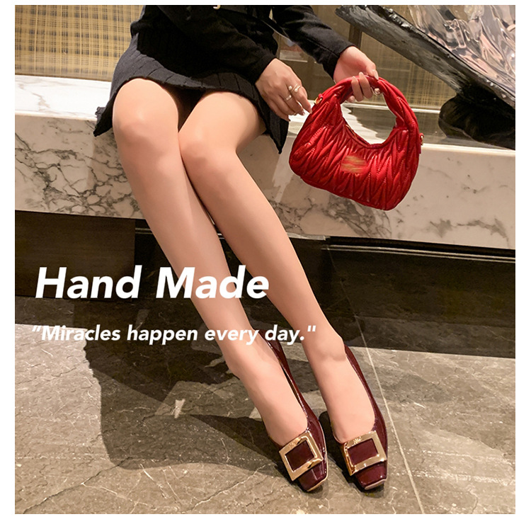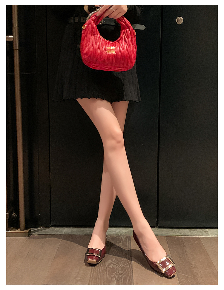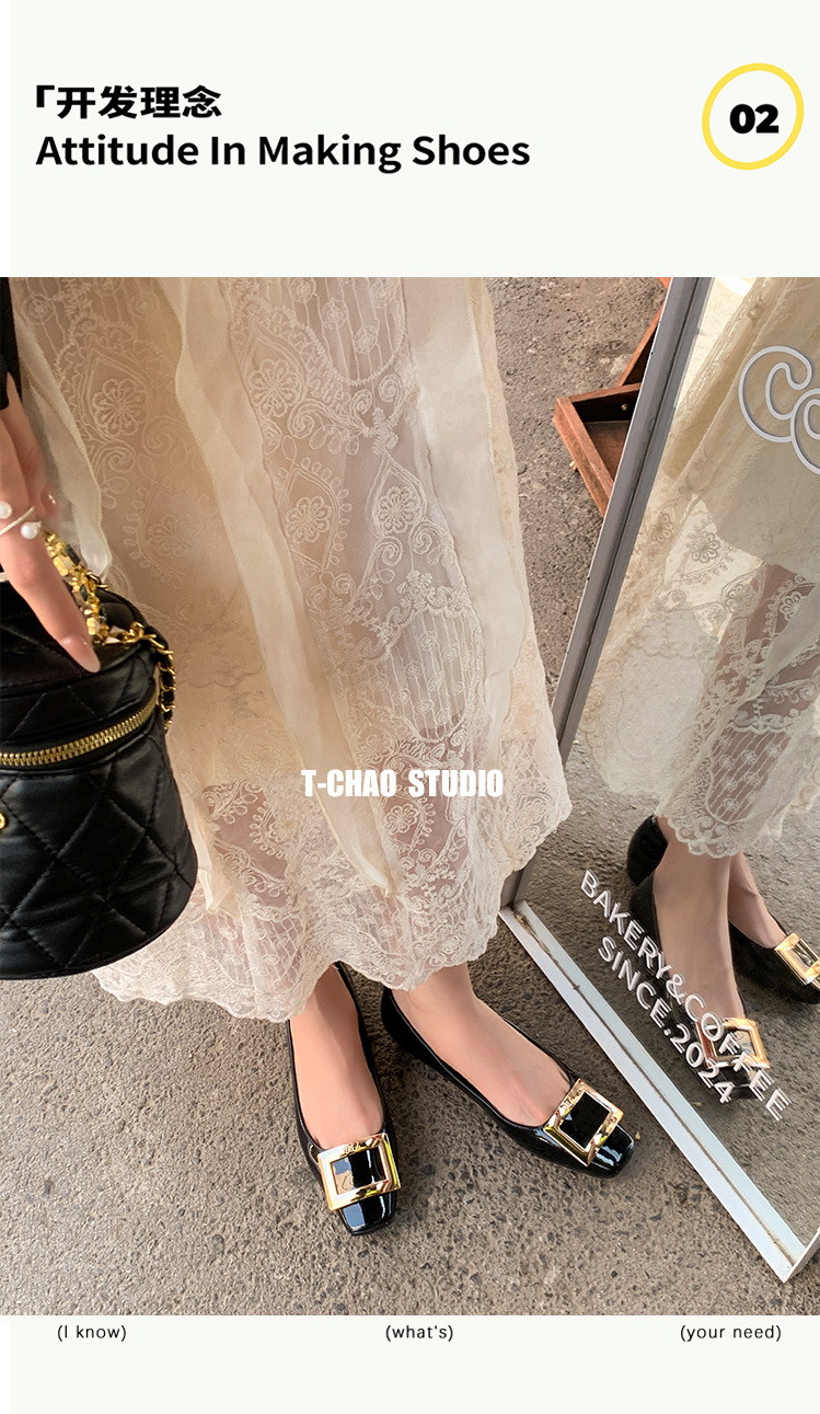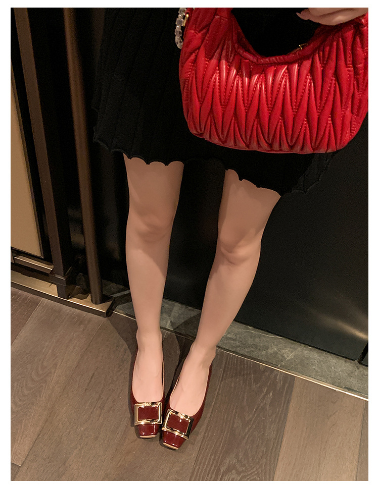 클래식 스퀘어 버클 여성용 신발, 천연 가죽, 데일리 다용도 페이턴트 가죽 스퀘어 토 슈즈, 데일리용 여성용 플랫 슈즈