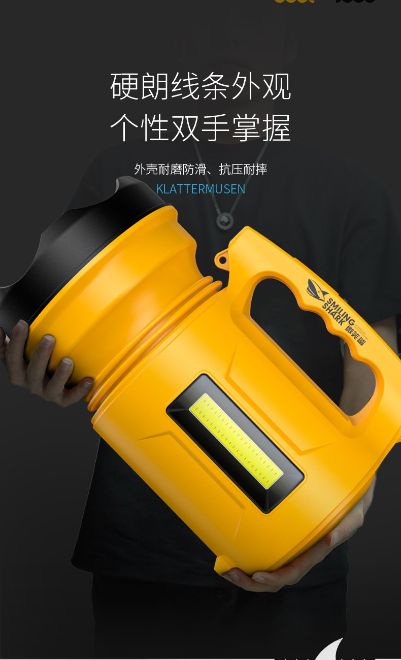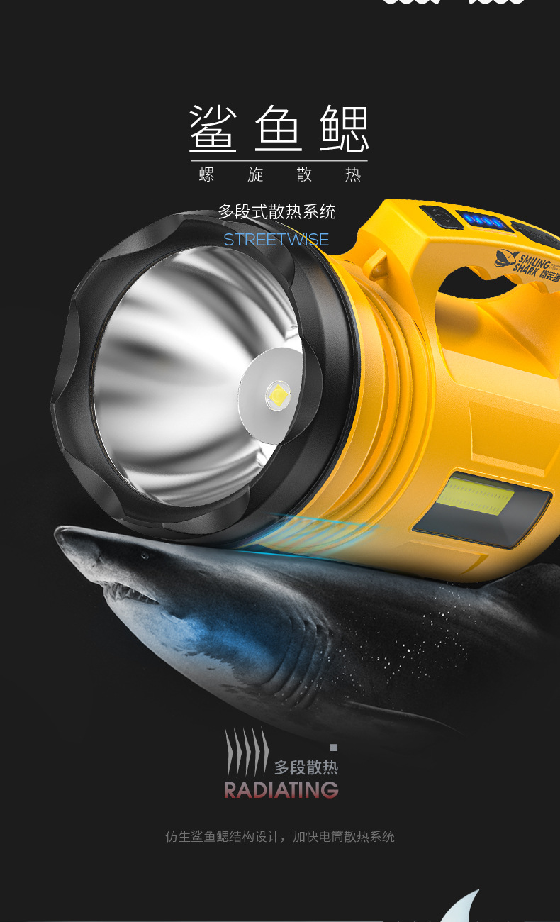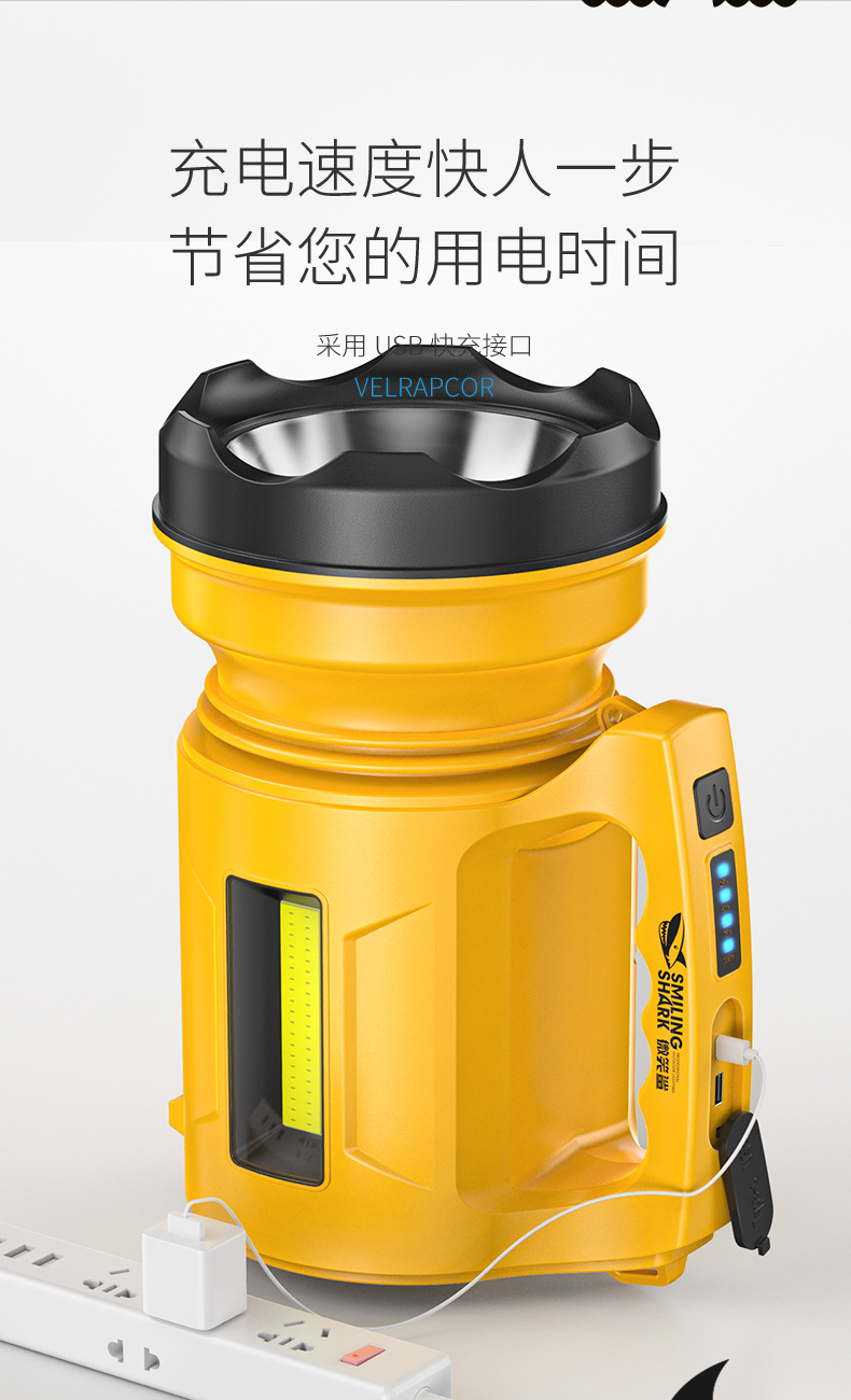 스마일 샤크 다기능 고휘도 휴대용 램프, 전기 디스플레이 다채로운 램프, 다단계 서치라이트, 실외 고휘도 휴대용 손전등
