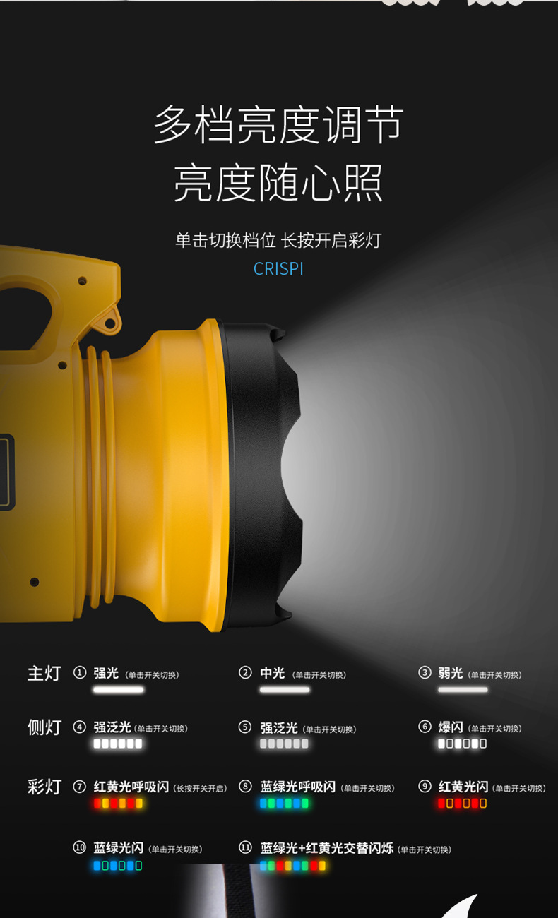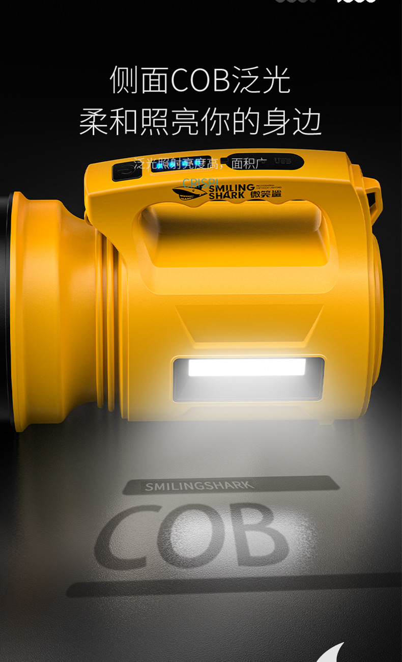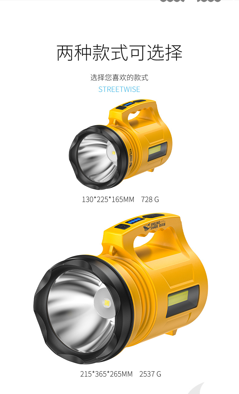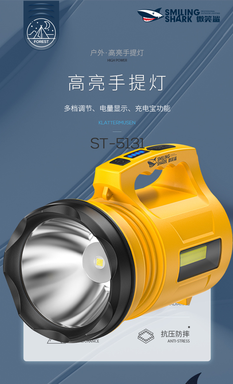 스마일 샤크 다기능 고휘도 휴대용 램프, 전기 디스플레이 다채로운 램프, 다단계 서치라이트, 실외 고휘도 휴대용 손전등