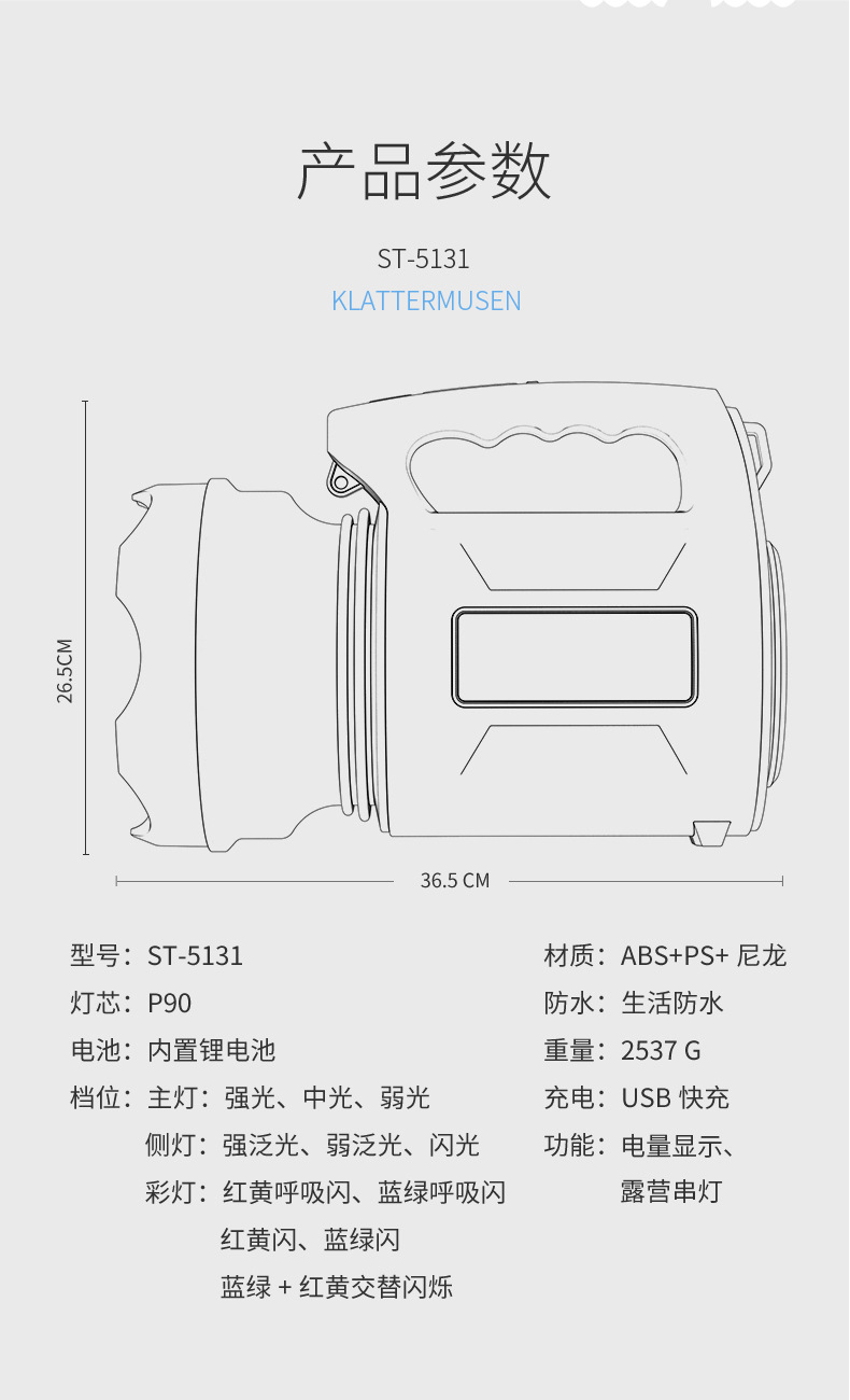 P50 다기능 고휘도 휴대용 램프 - 5131 소형 모델 [18650 배터리 6000mAh 4개 내장]