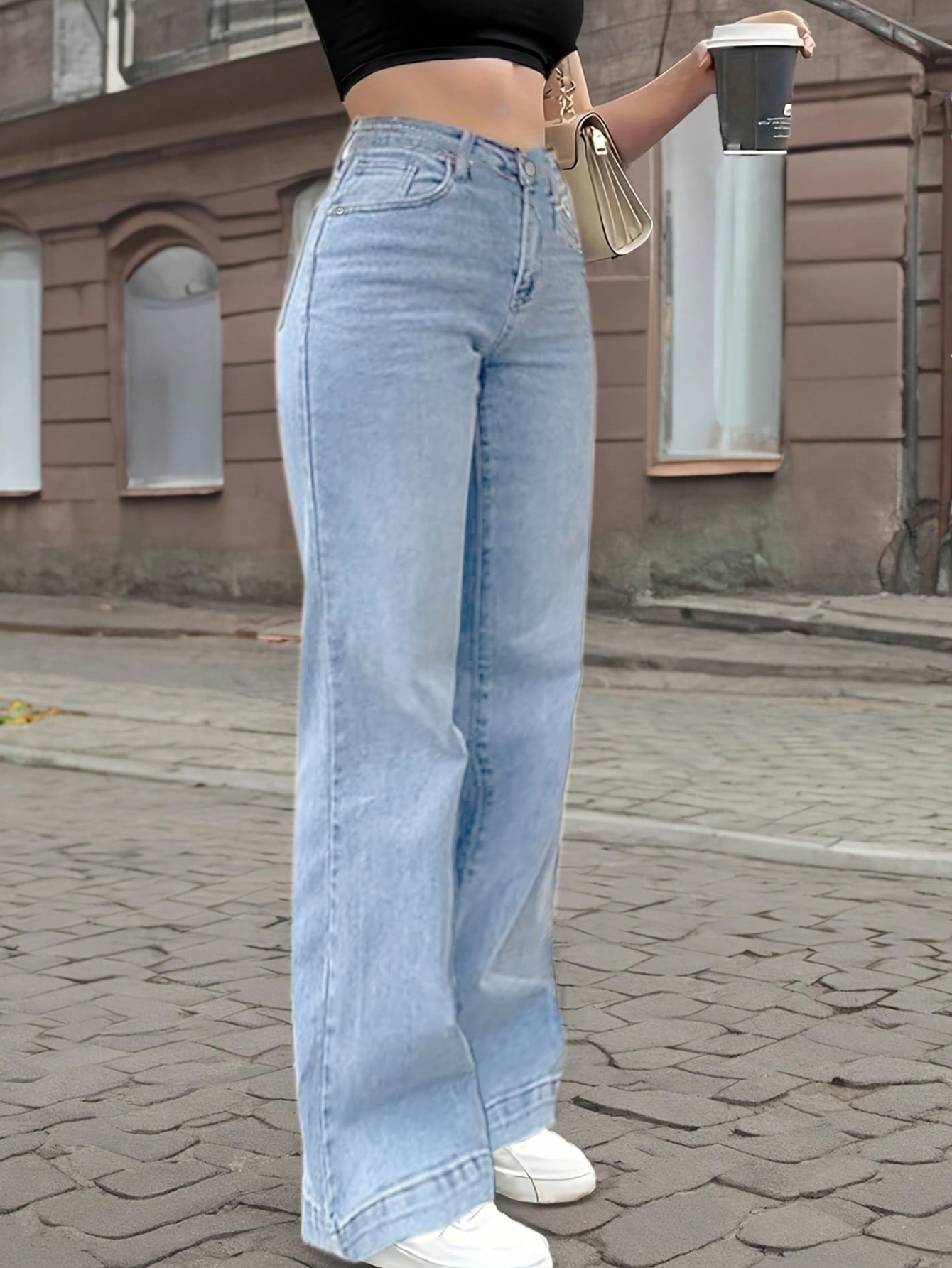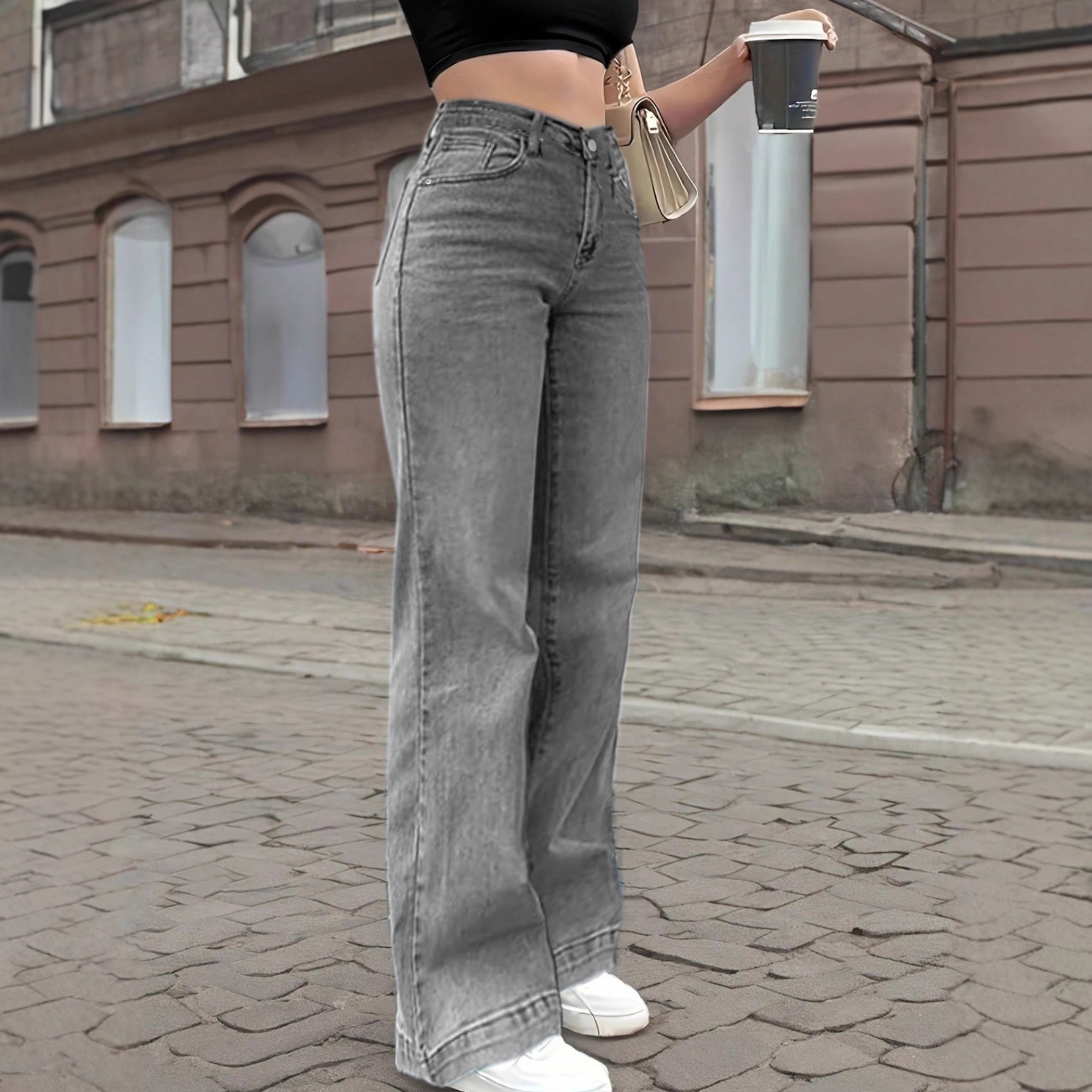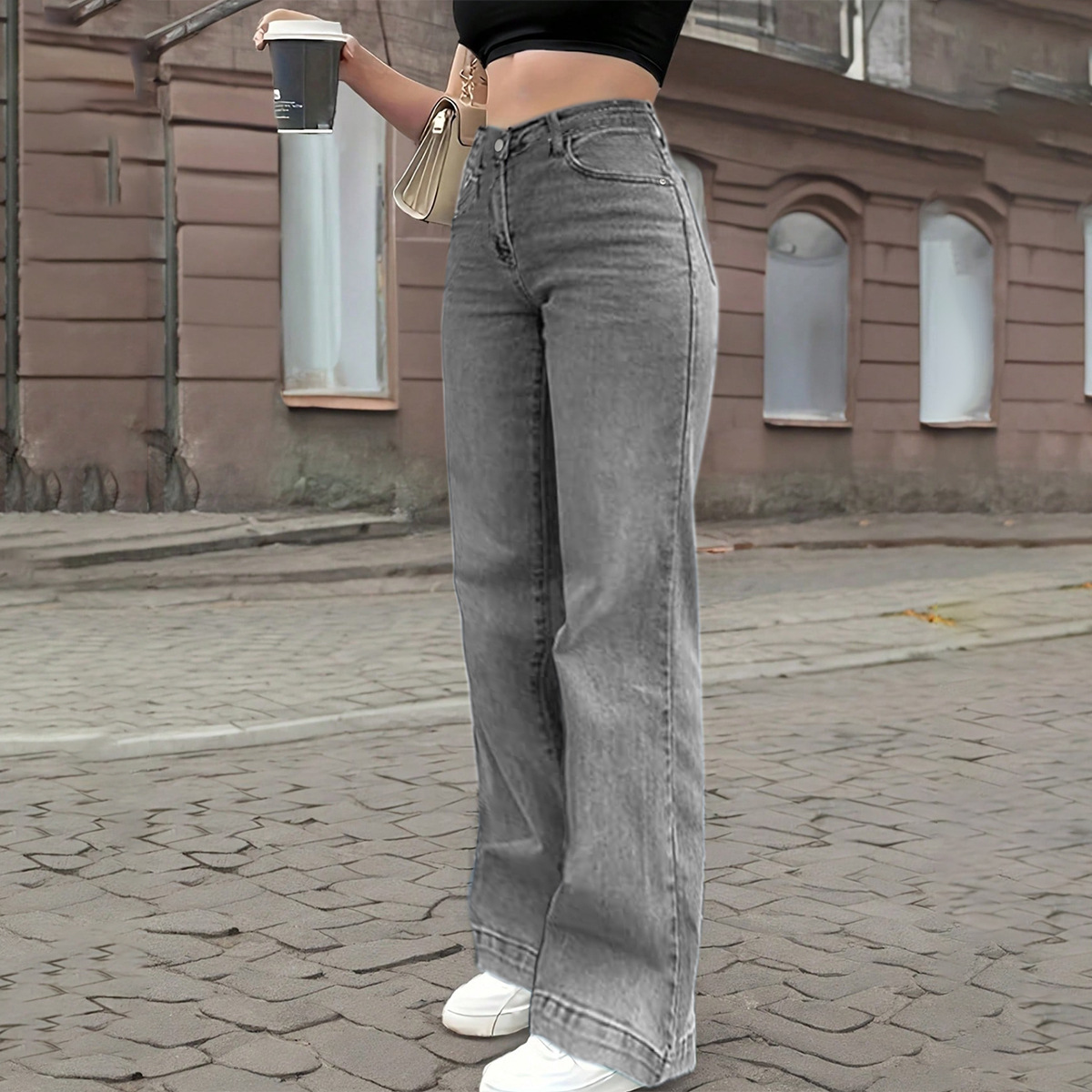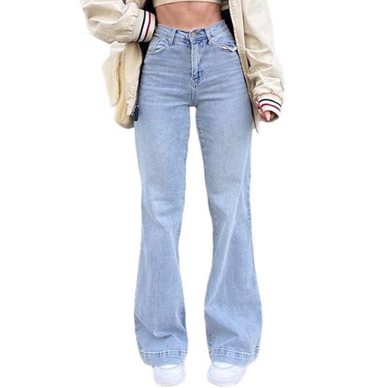 26 크로스보더 연청색 일자핏 청바지 여성용 슬림핏 와이드 팬츠 여름 신상 키높이 슬림핏 작은 키에도 잘 어울리는 트렌디한 스타일