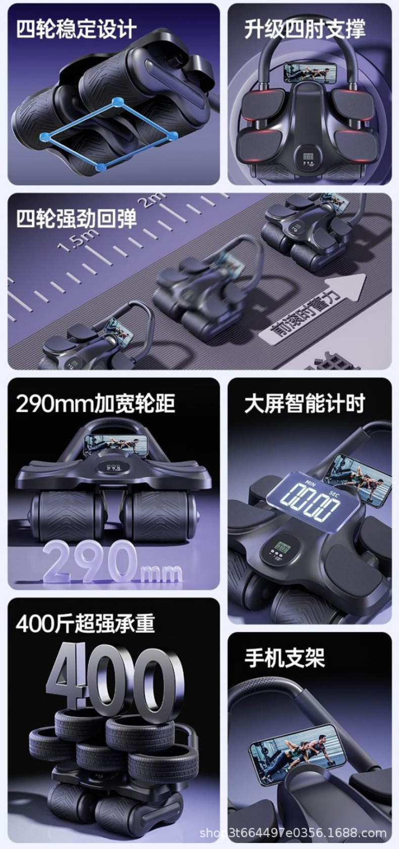 4륜 복부 휠 2025 새로운 자동 리바운드 팔꿈치 지지대 복근 운동 도구 복부 수축 남성 피트니스 장비