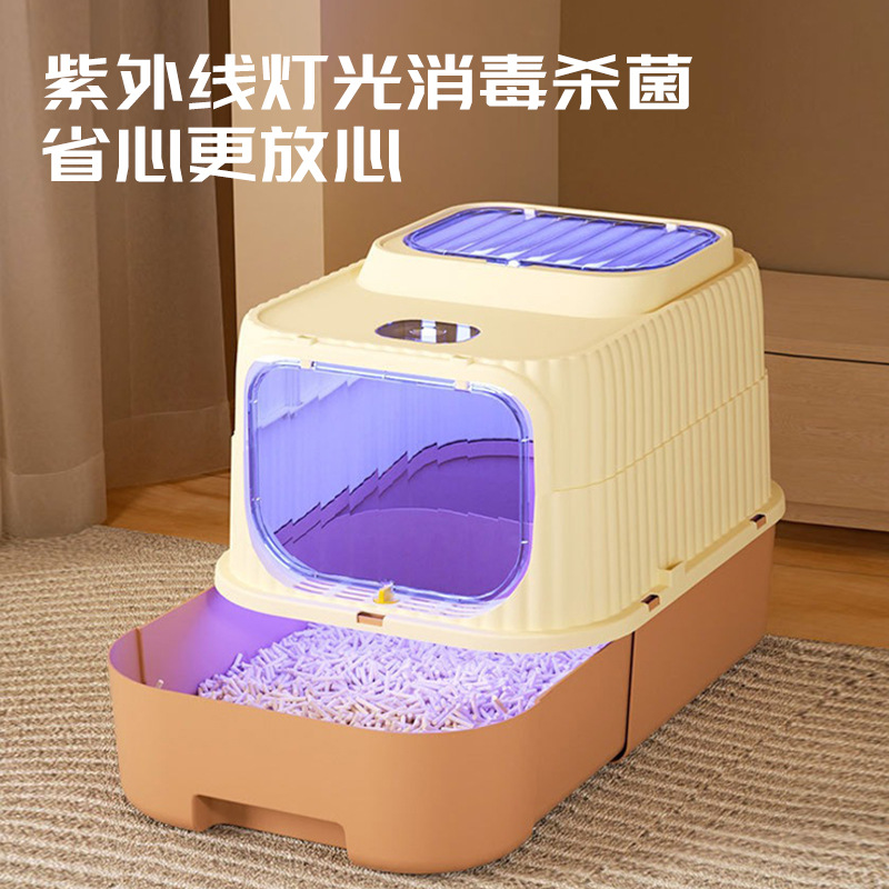 고양이 쓰레기 상자 초대형 완전 밀폐형 비말 방지 고양이 쓰레기 상자 두꺼운 방수 고양이 화장실 애완 동물 용품 이동식 이중 문