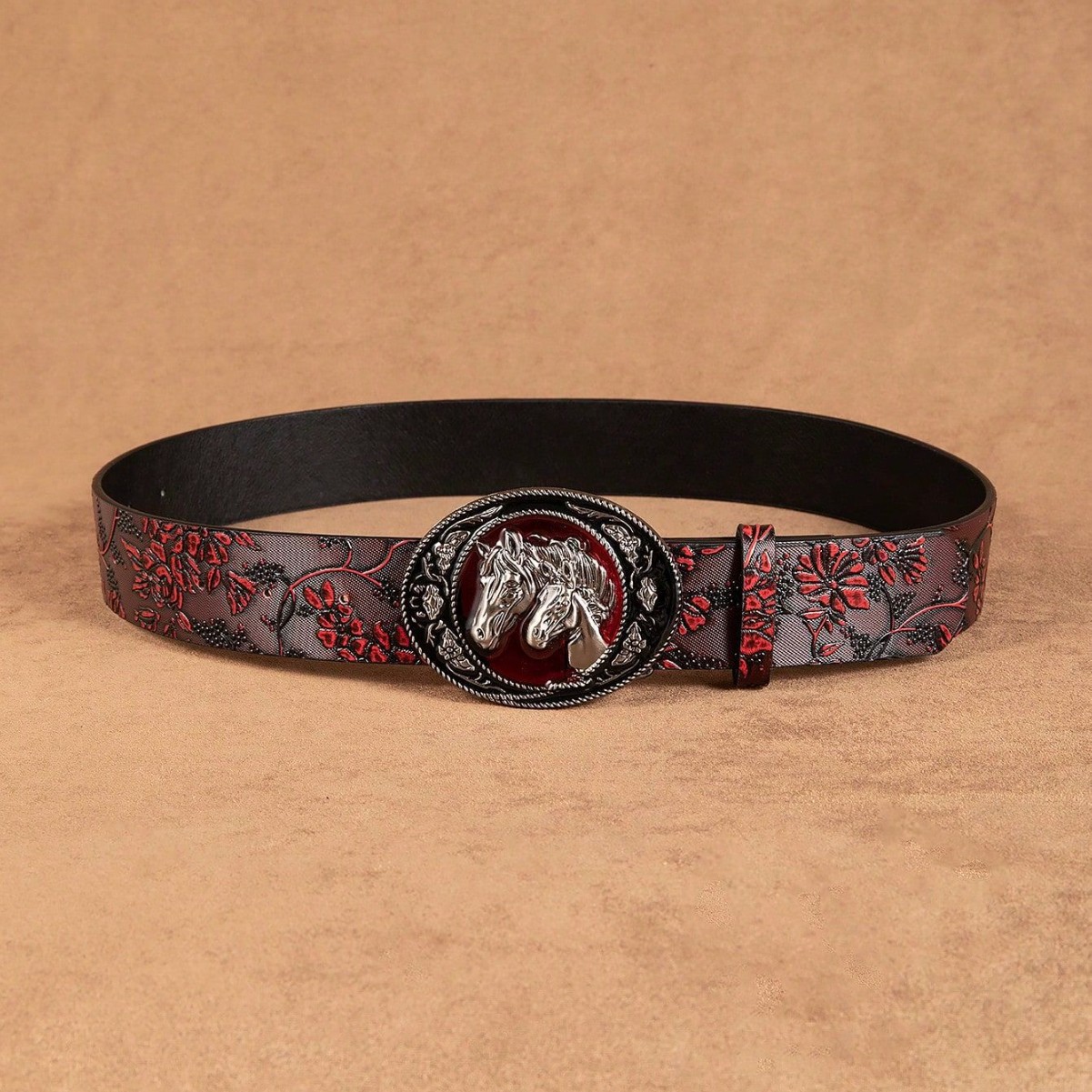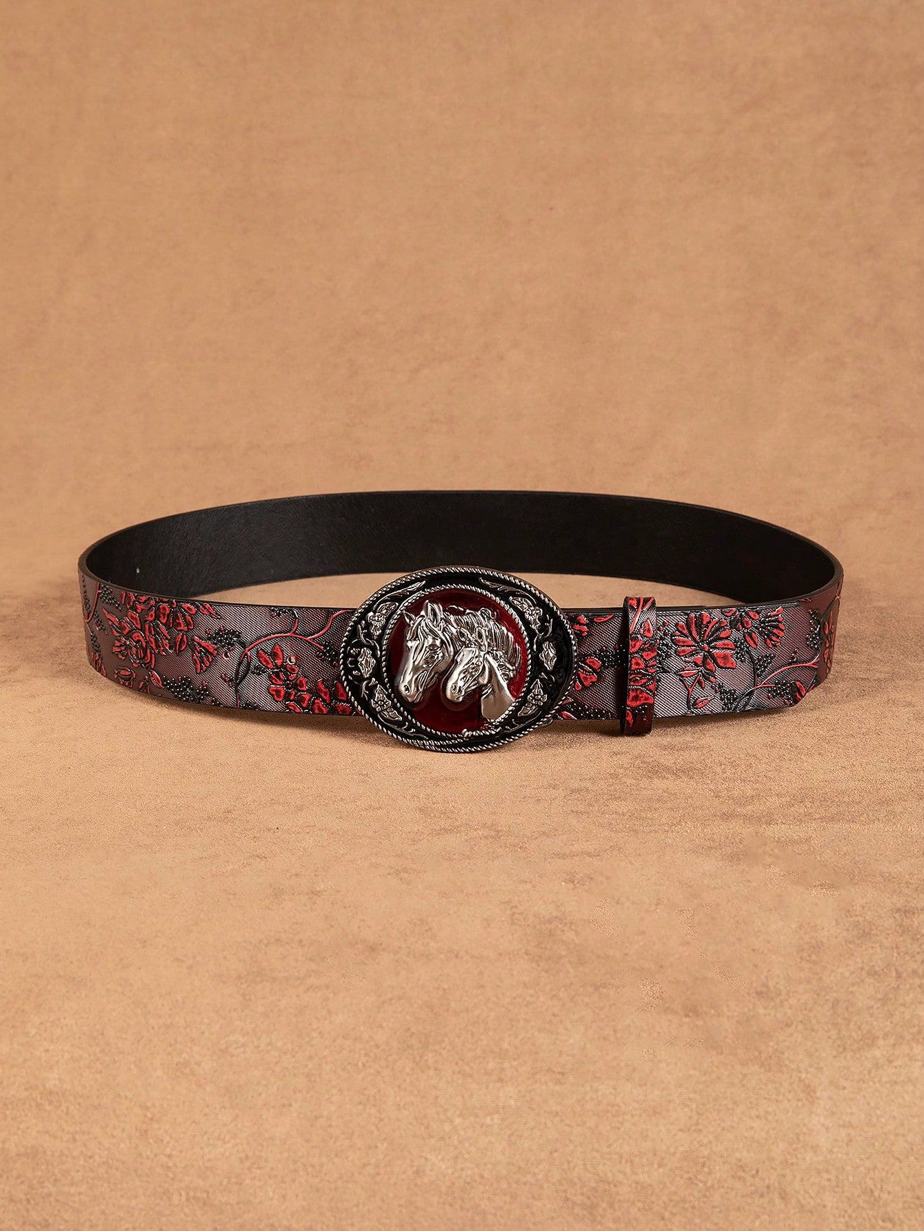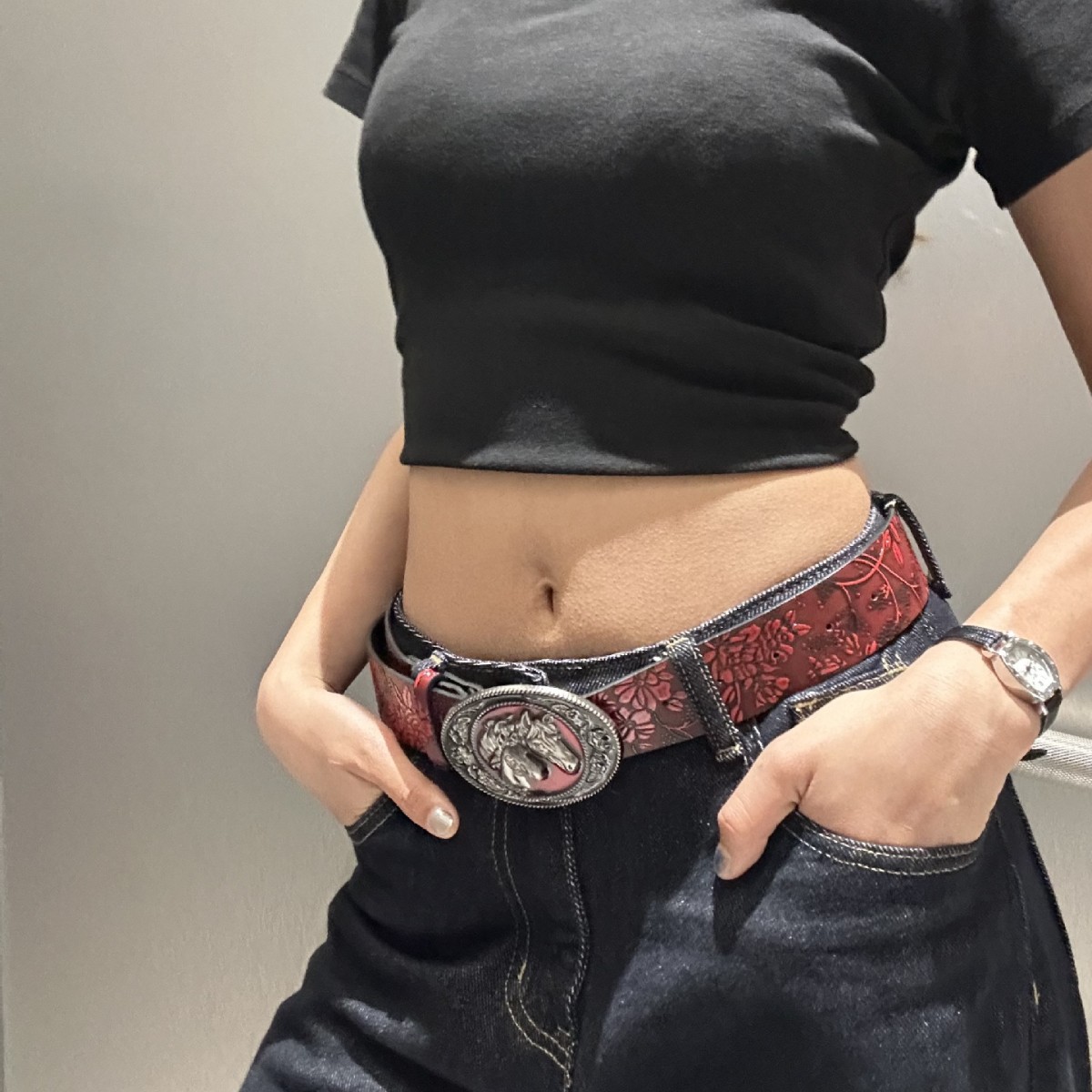 2025 새로운 머스탱 버클 패턴 벨트 유럽과 미국의 패션 청바지와 매치 와이드 팬츠 PU 소재 여성 벨트