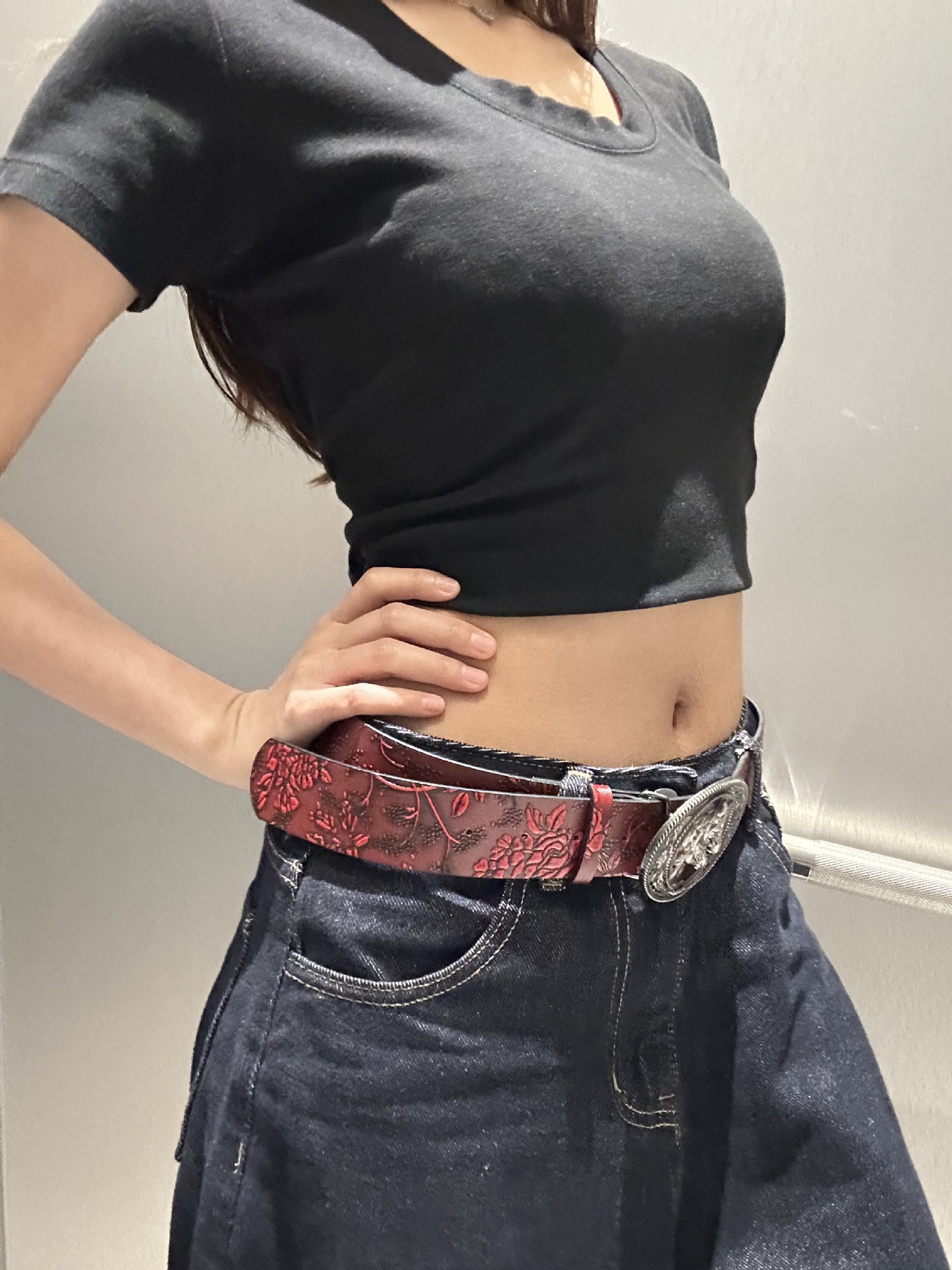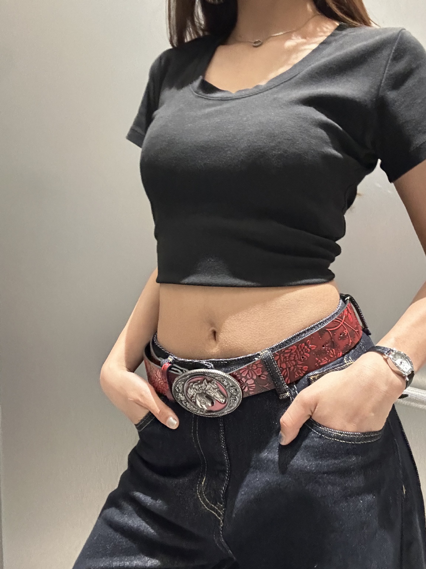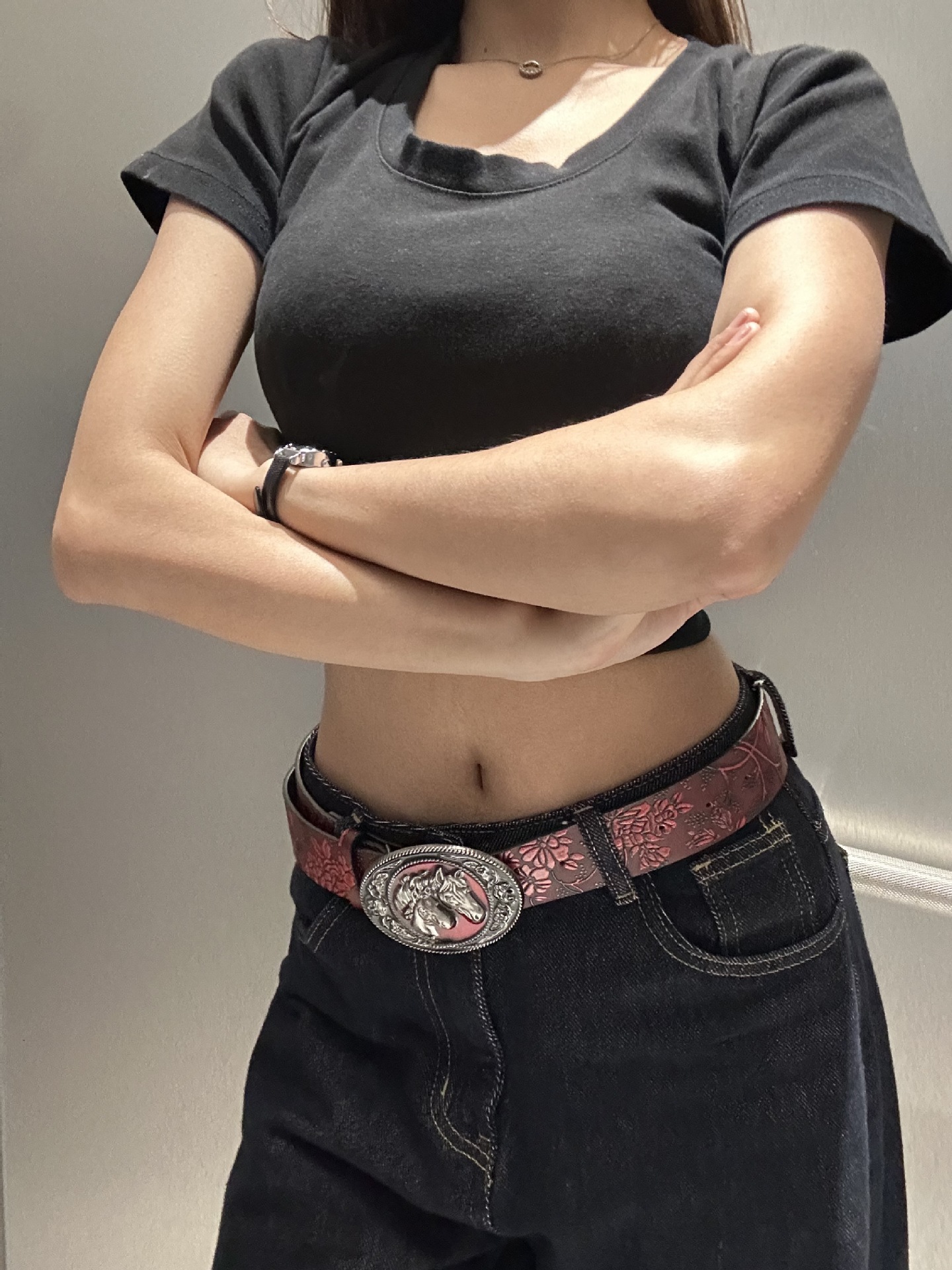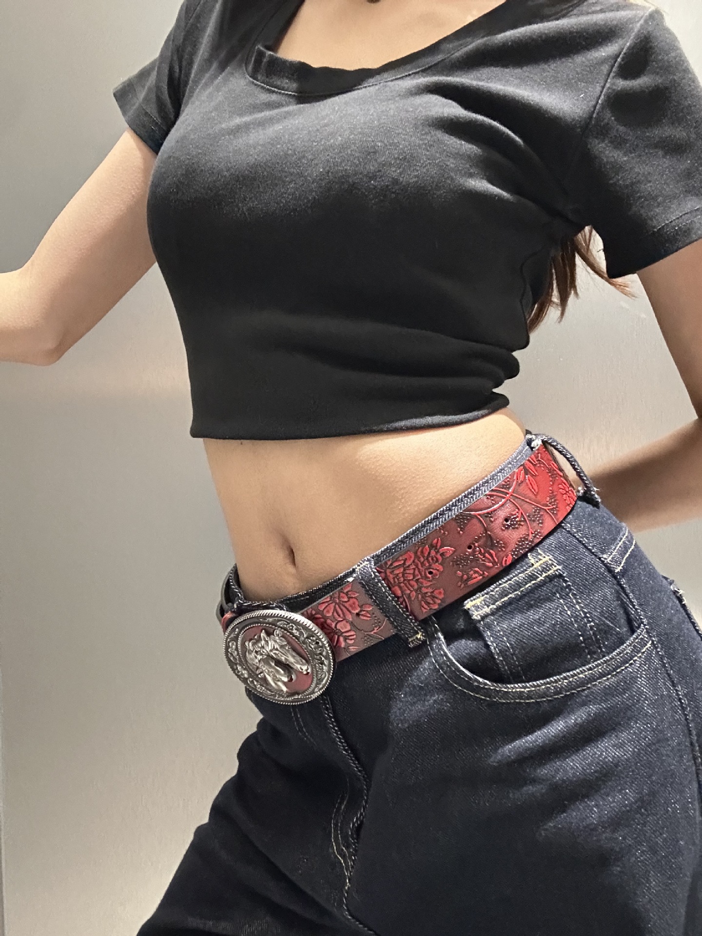2025 새로운 머스탱 버클 패턴 벨트 유럽과 미국의 패션 청바지와 매치 와이드 팬츠 PU 소재 여성 벨트