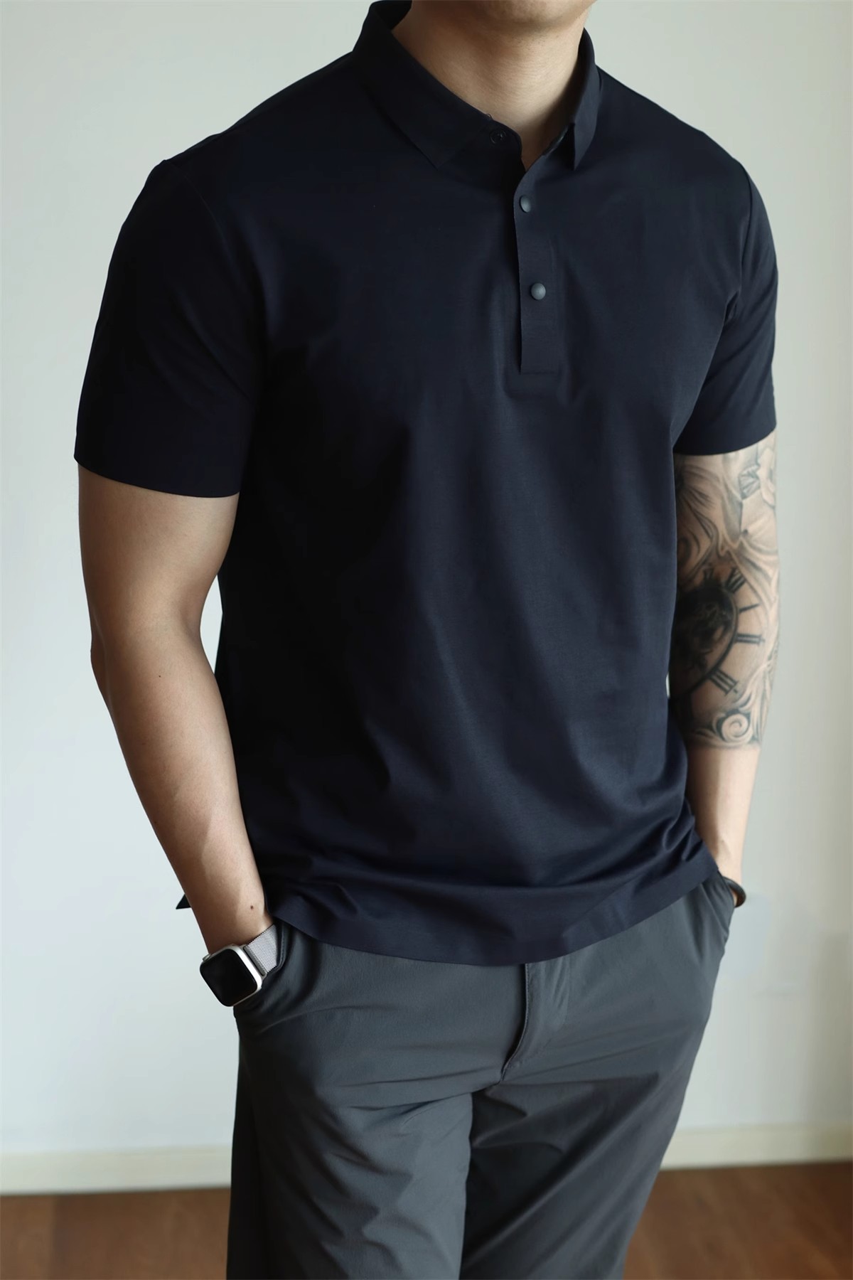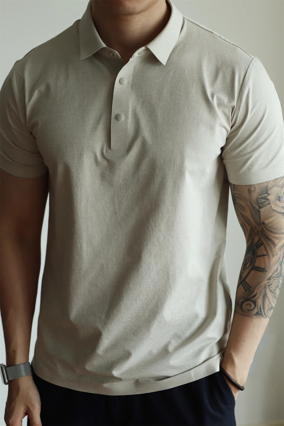 시원한 디산 주름 반팔 폴로셔츠 남성용 여름 2026 아이스 실크 노아이언링크스 무봉제 4버튼 5A 항균 속건 티셔츠