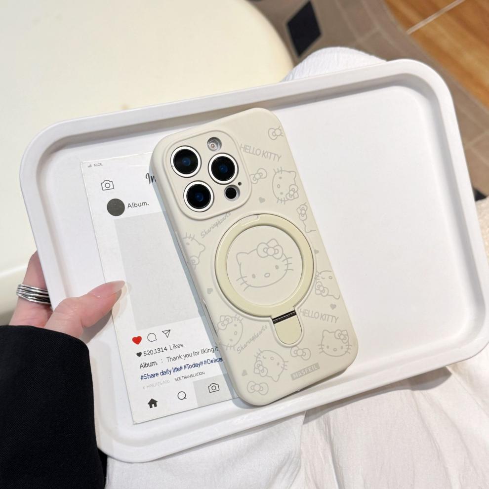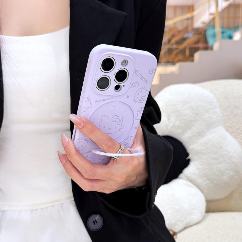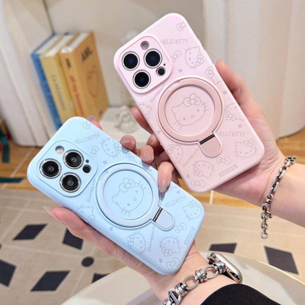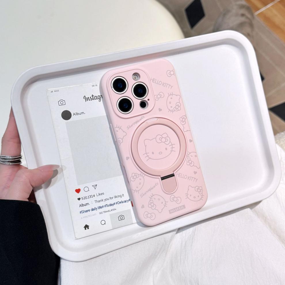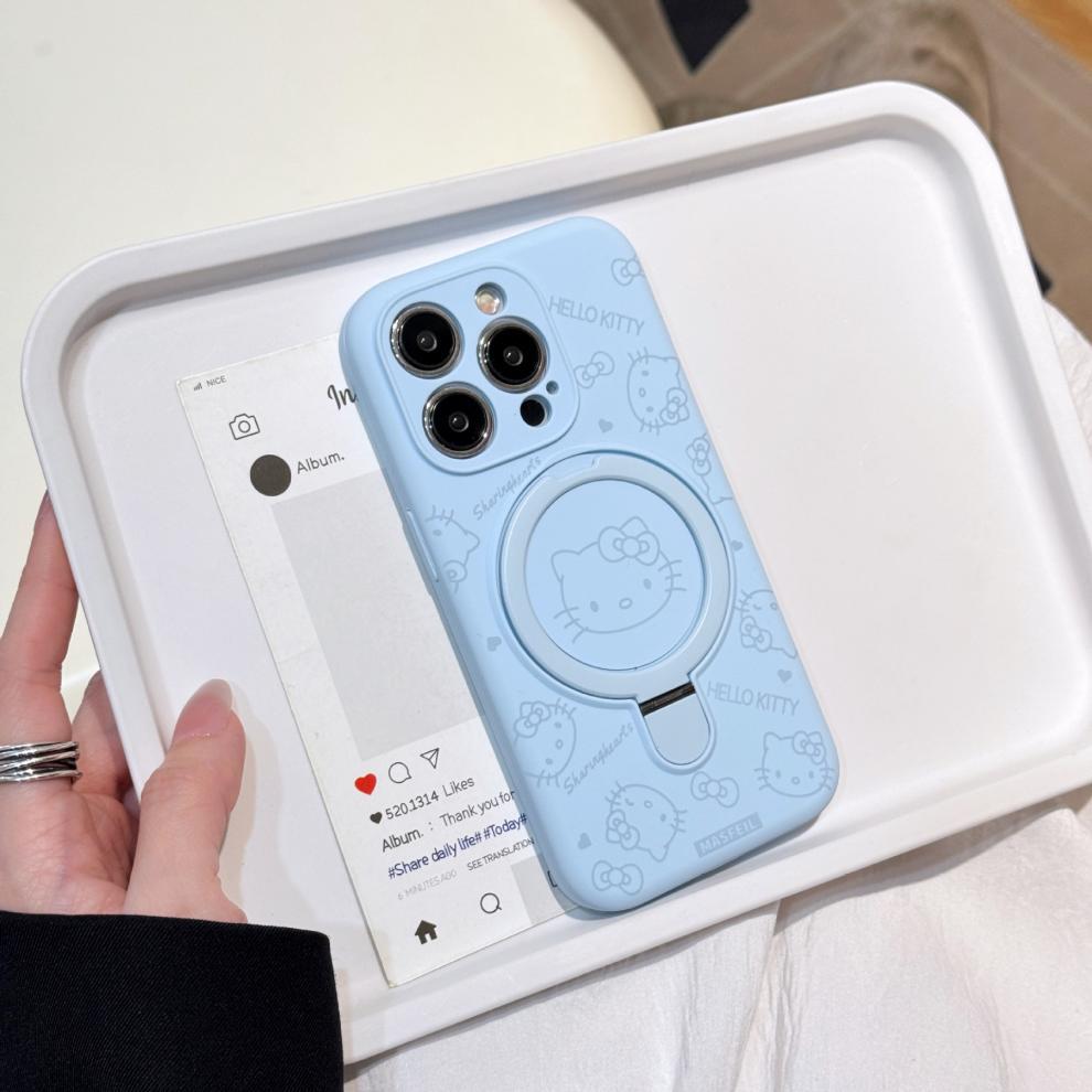 Apple iPhone16ProMax 액체 키티 고양이 휴대폰 케이스에 적합 15P 자기 홀더 미세 구멍 보호 커버