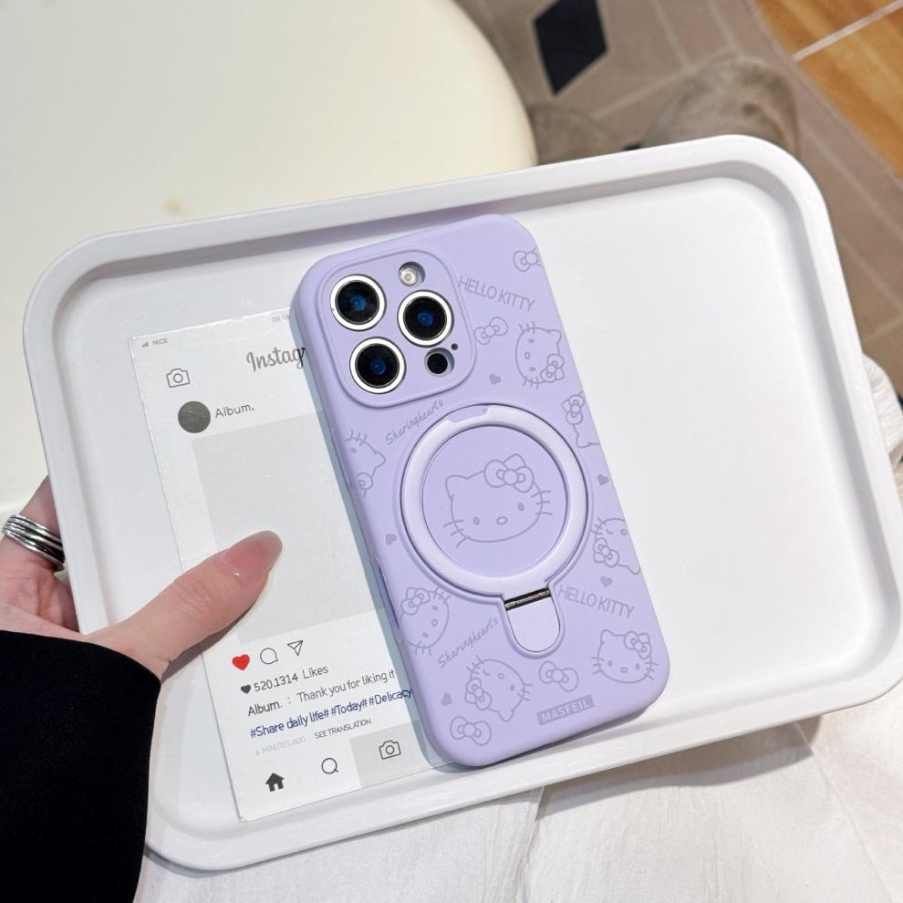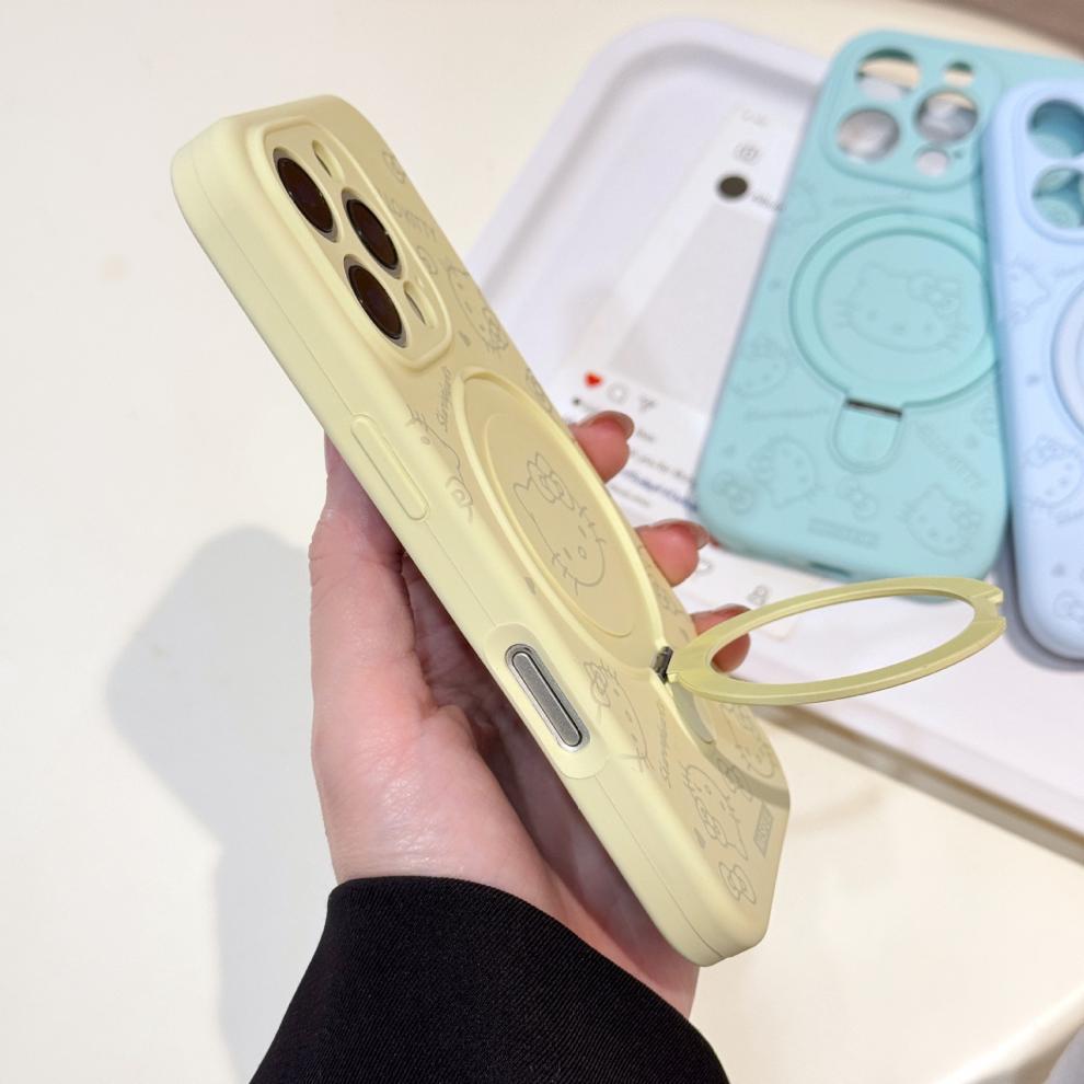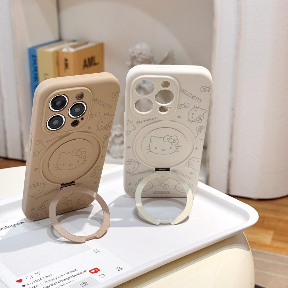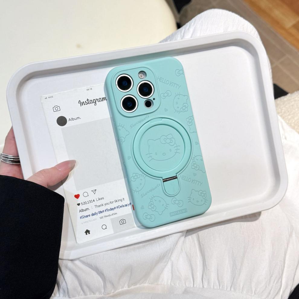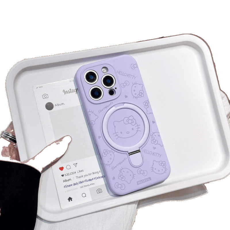 Apple iPhone16ProMax 액체 키티 고양이 휴대폰 케이스에 적합 15P 자기 홀더 미세 구멍 보호 커버