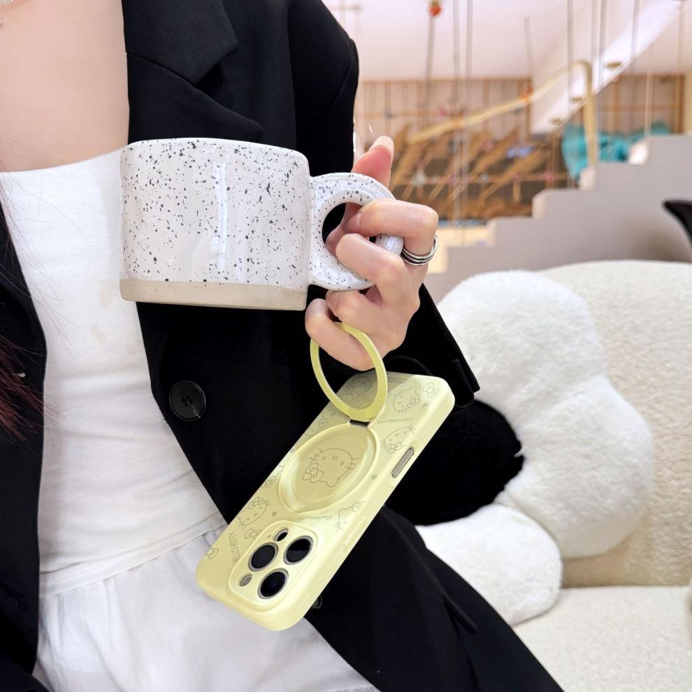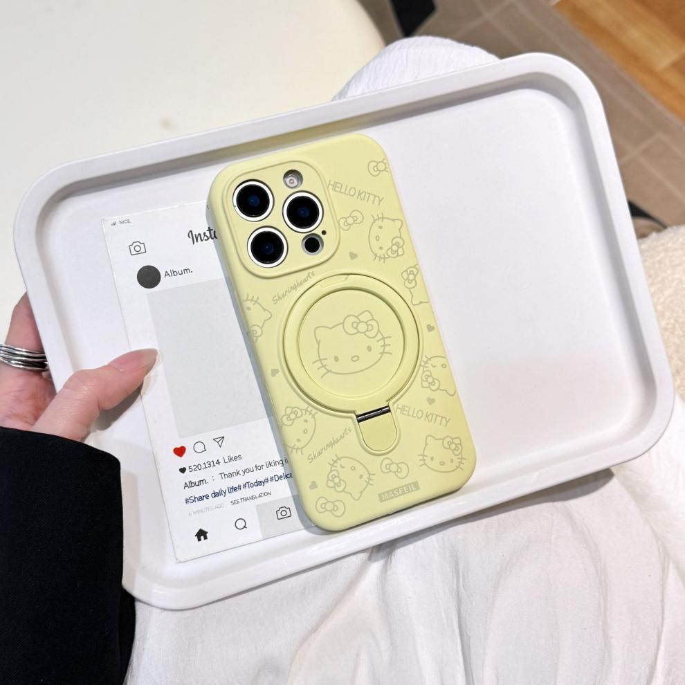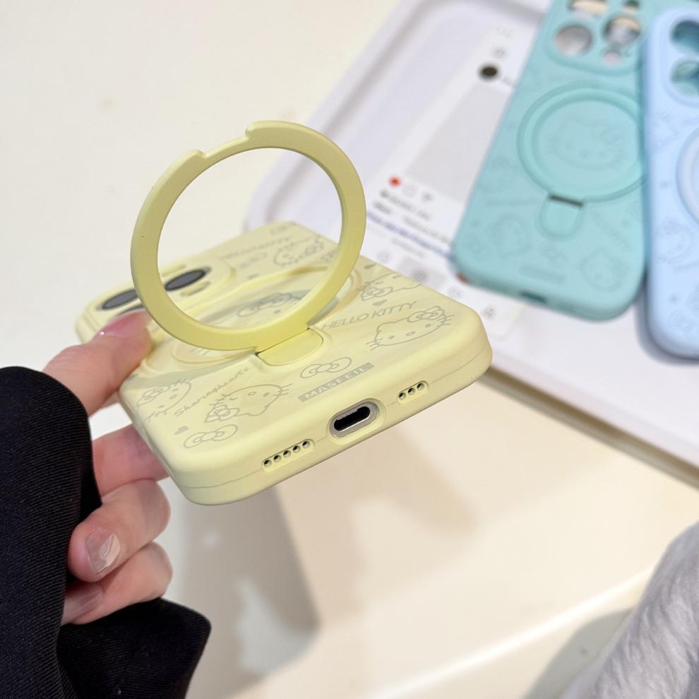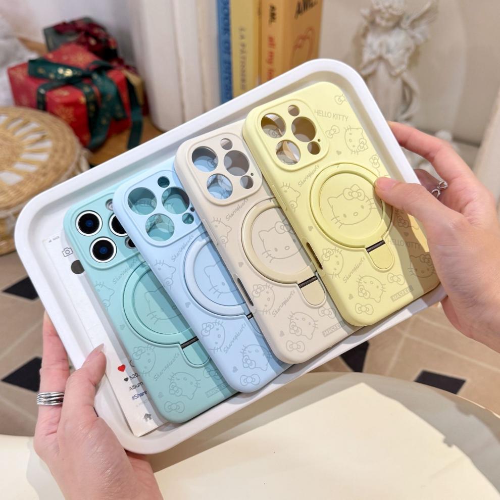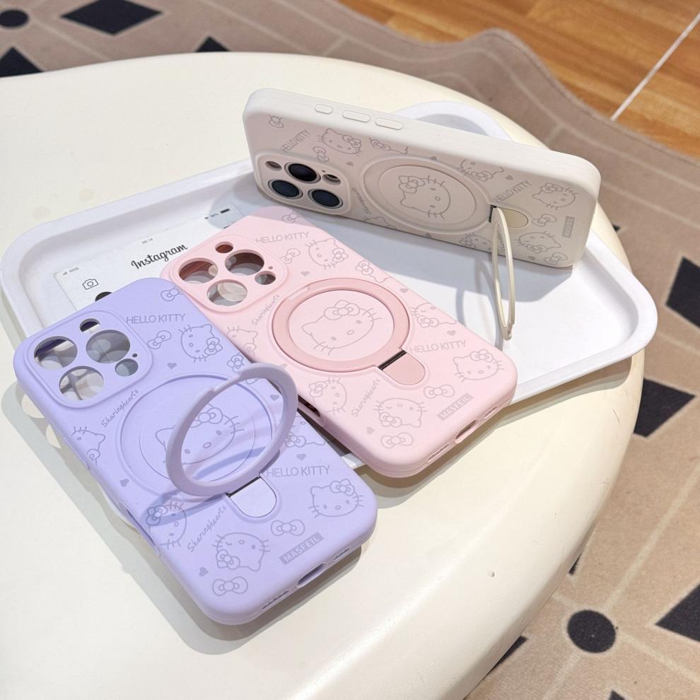 Apple iPhone16ProMax 액체 키티 고양이 휴대폰 케이스에 적합 15P 자기 홀더 미세 구멍 보호 커버
