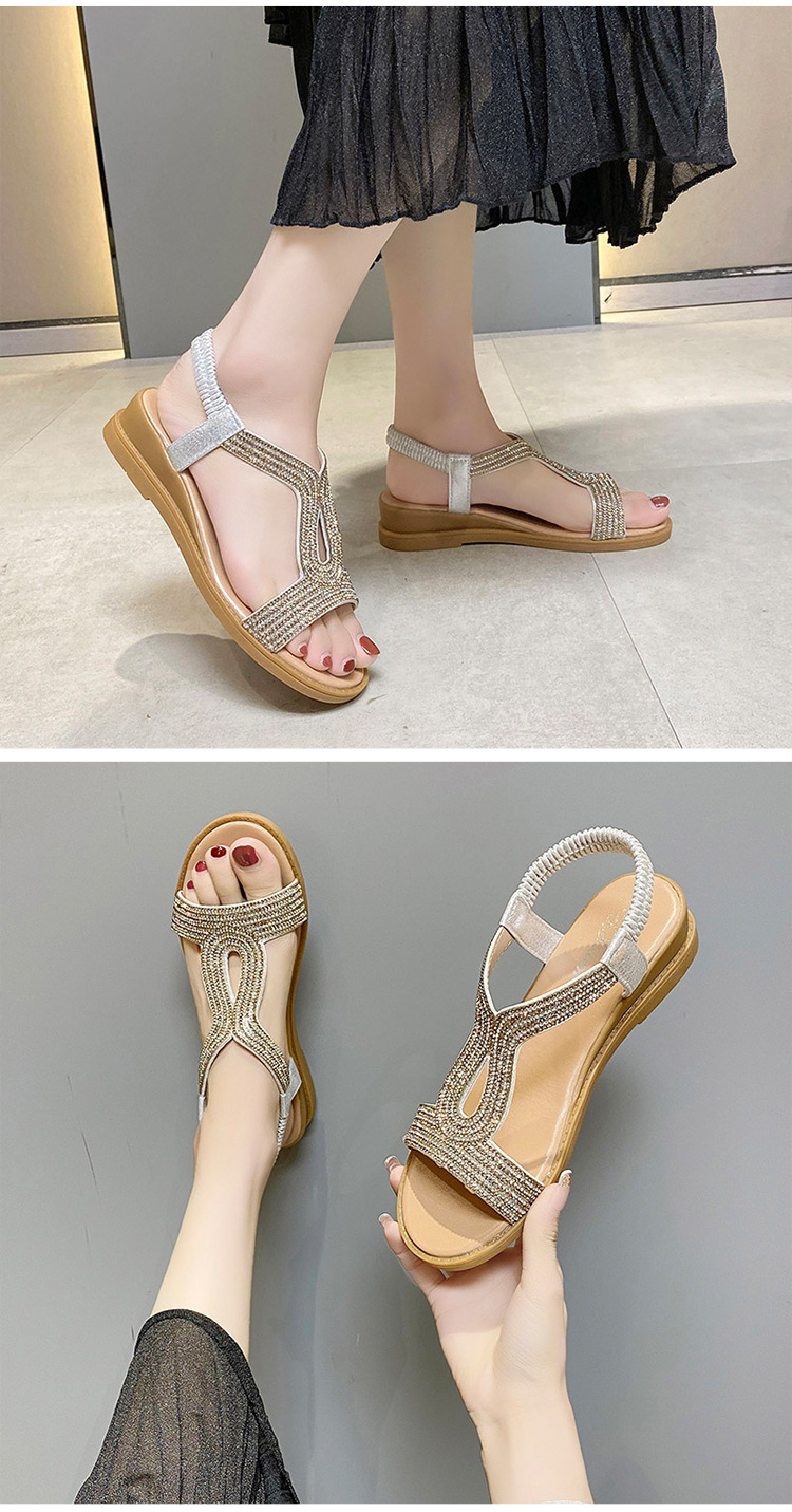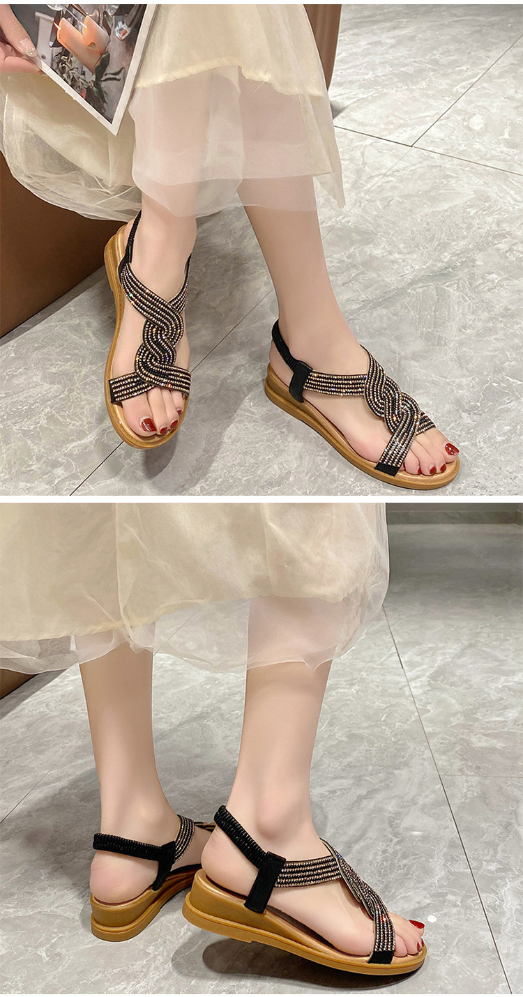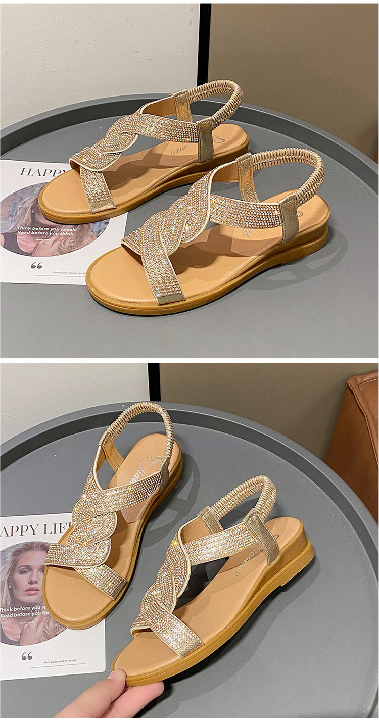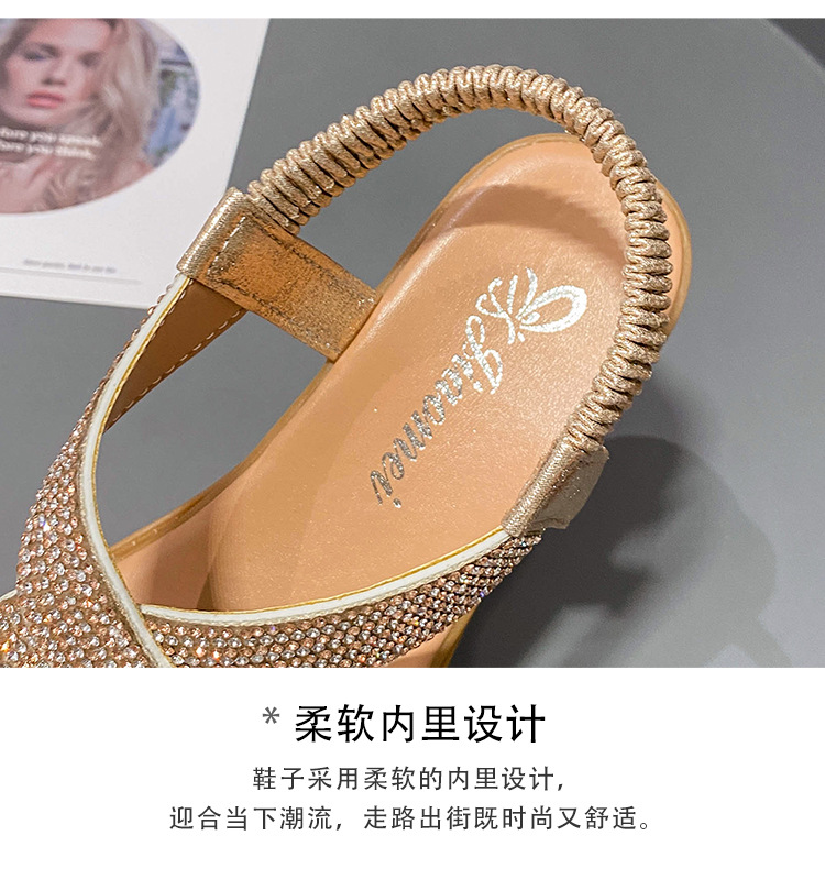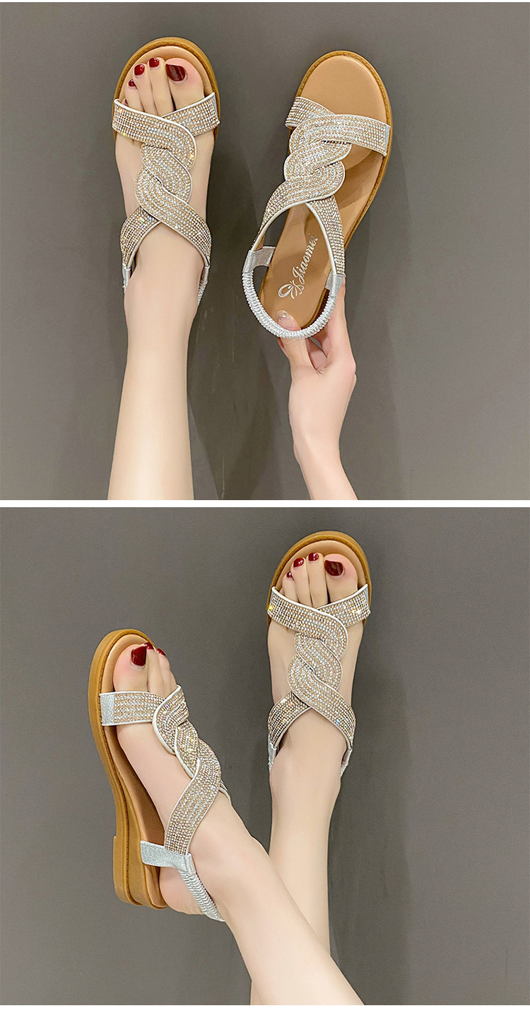 대외 무역 대형 2025 여름 신작 라인스톤 웨지 샌들 여성용 로마 오픈 토우 패션 샌들