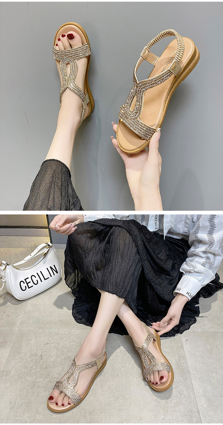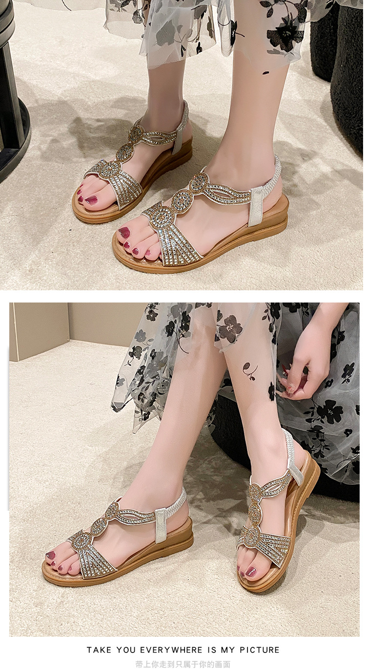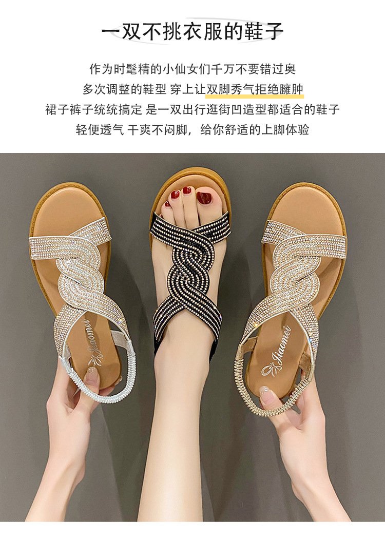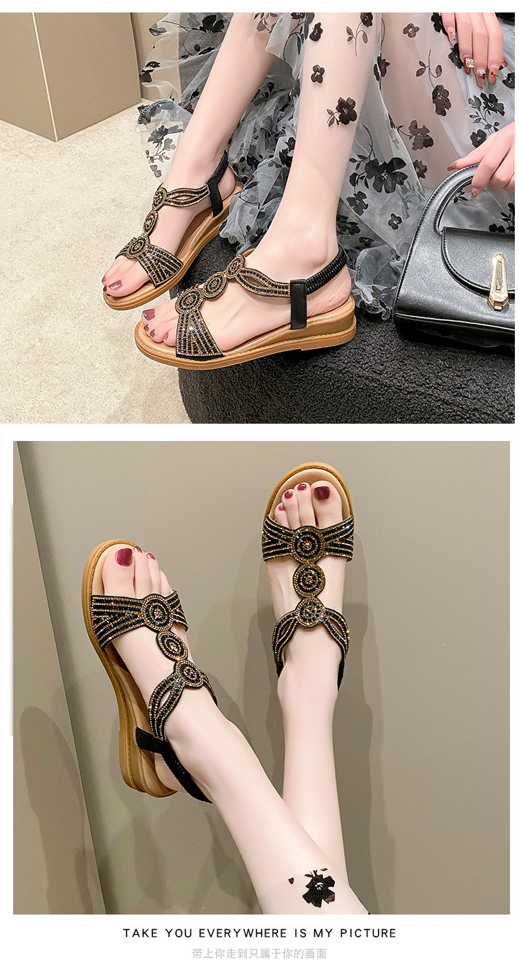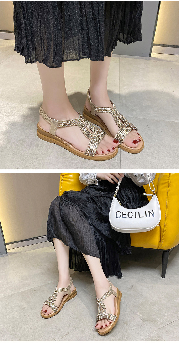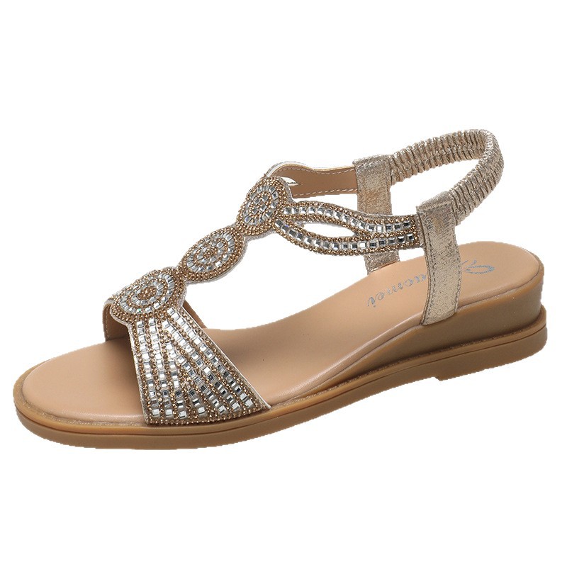 대외 무역 대형 2025 여름 신작 라인스톤 웨지 샌들 여성용 로마 오픈 토우 패션 샌들