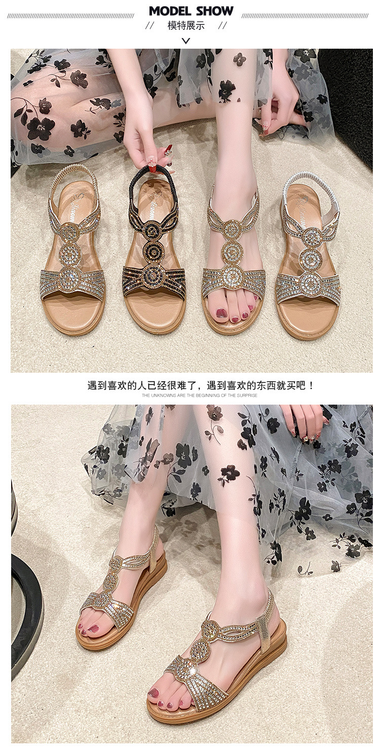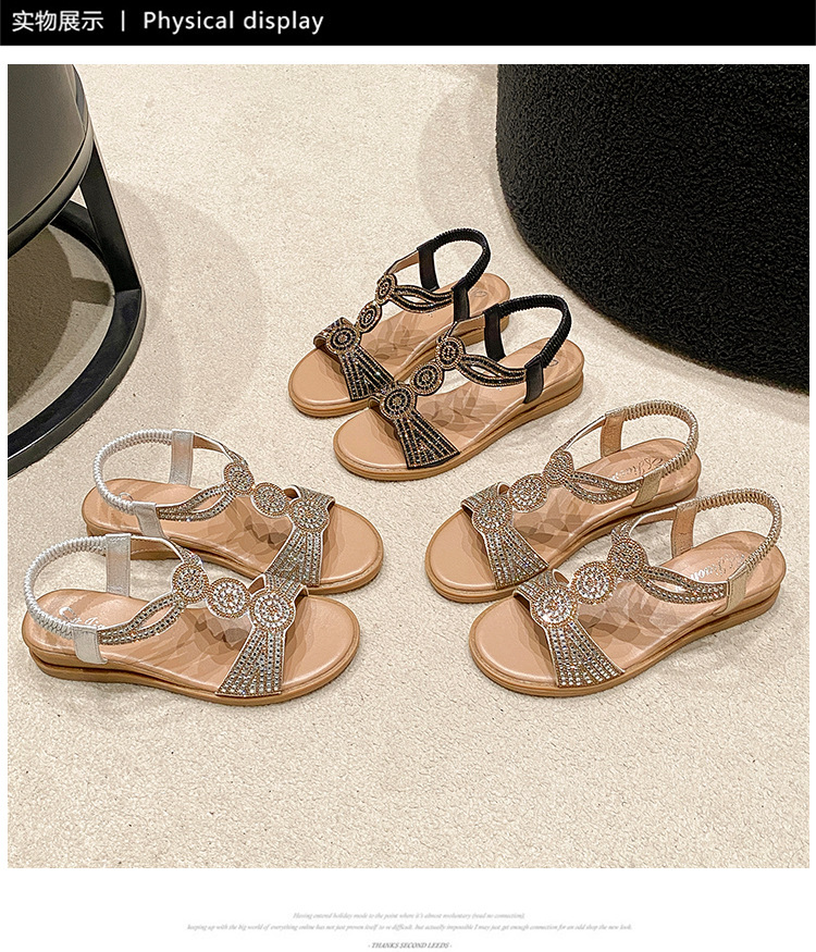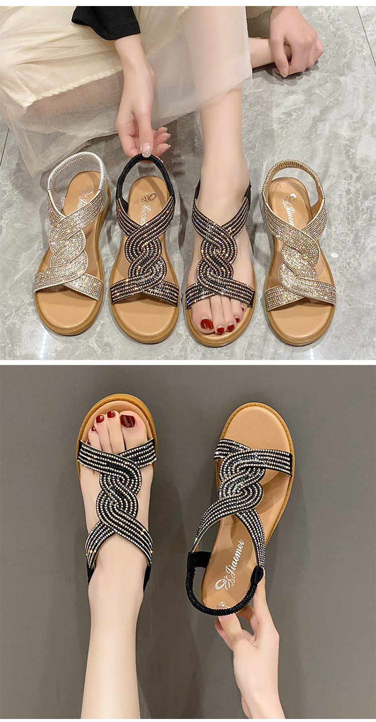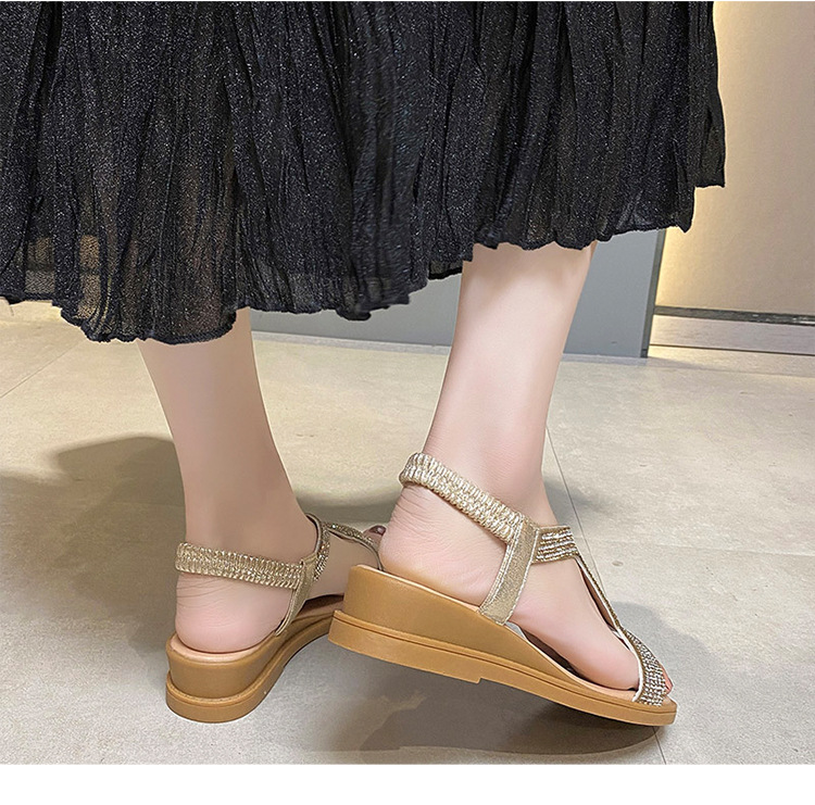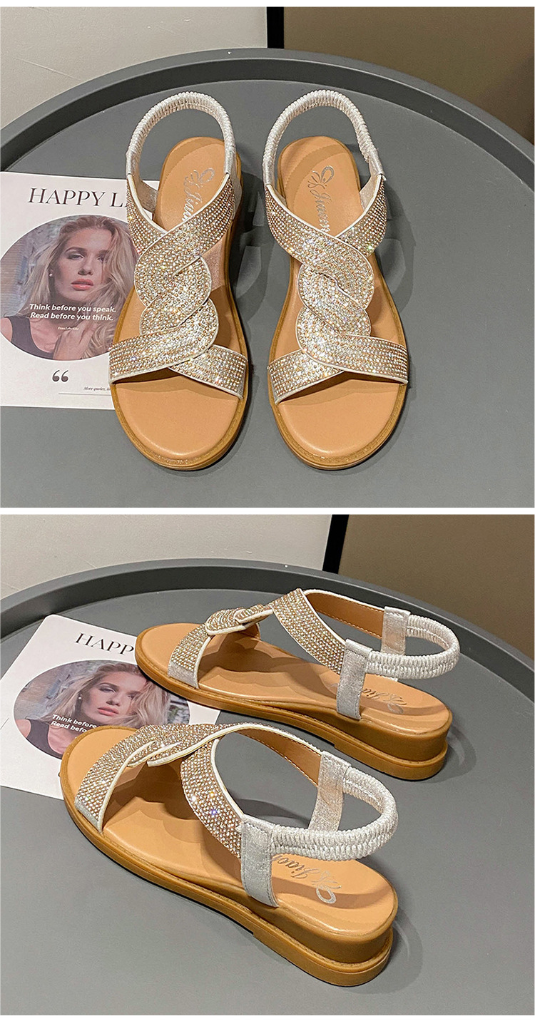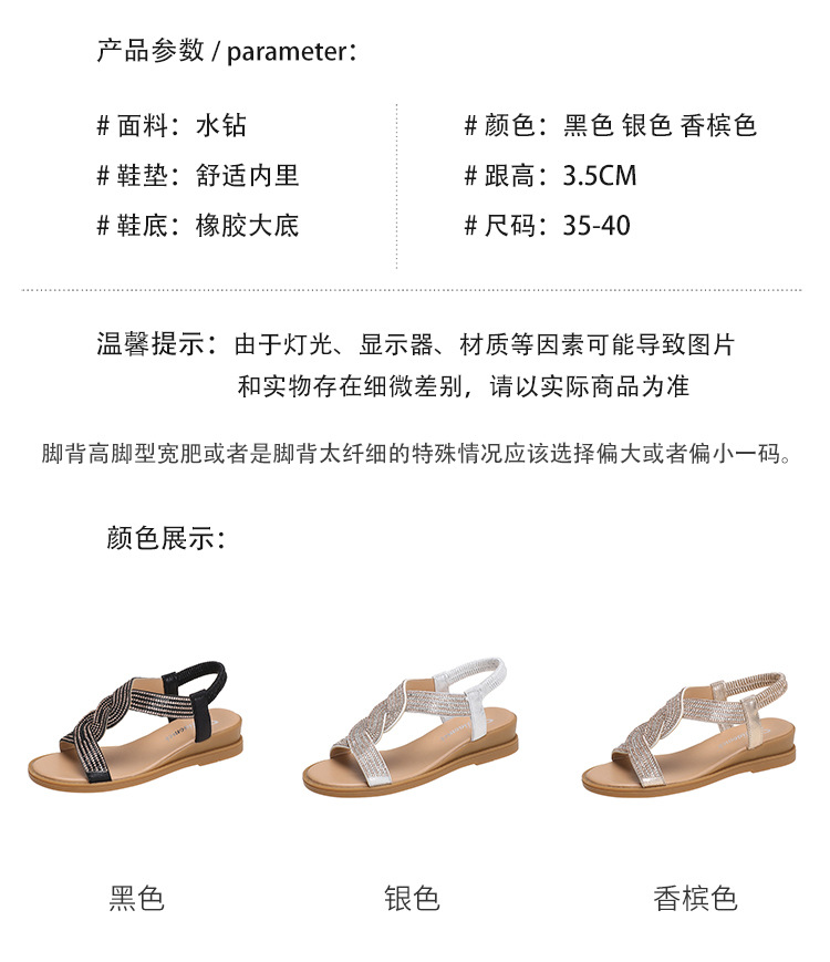 대외 무역 대형 2025 여름 신작 라인스톤 웨지 샌들 여성용 로마 오픈 토우 패션 샌들