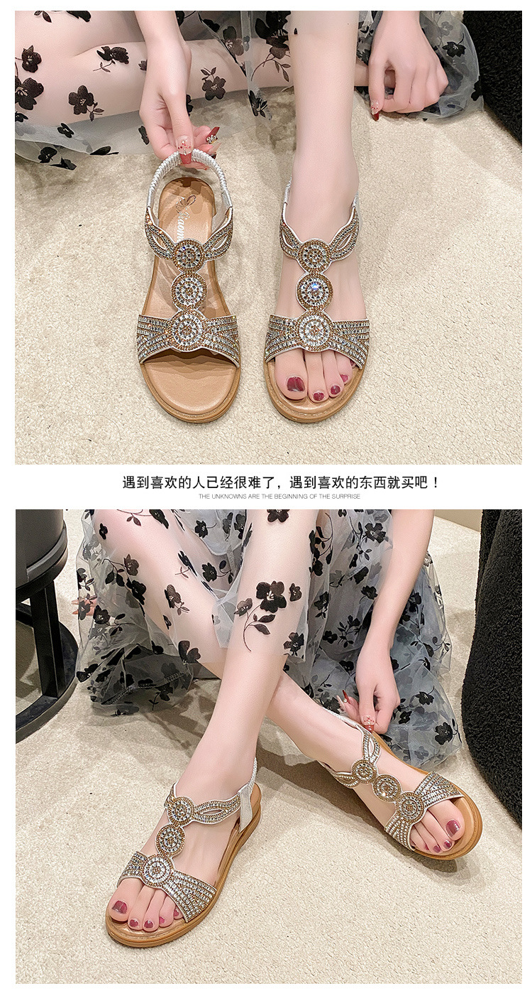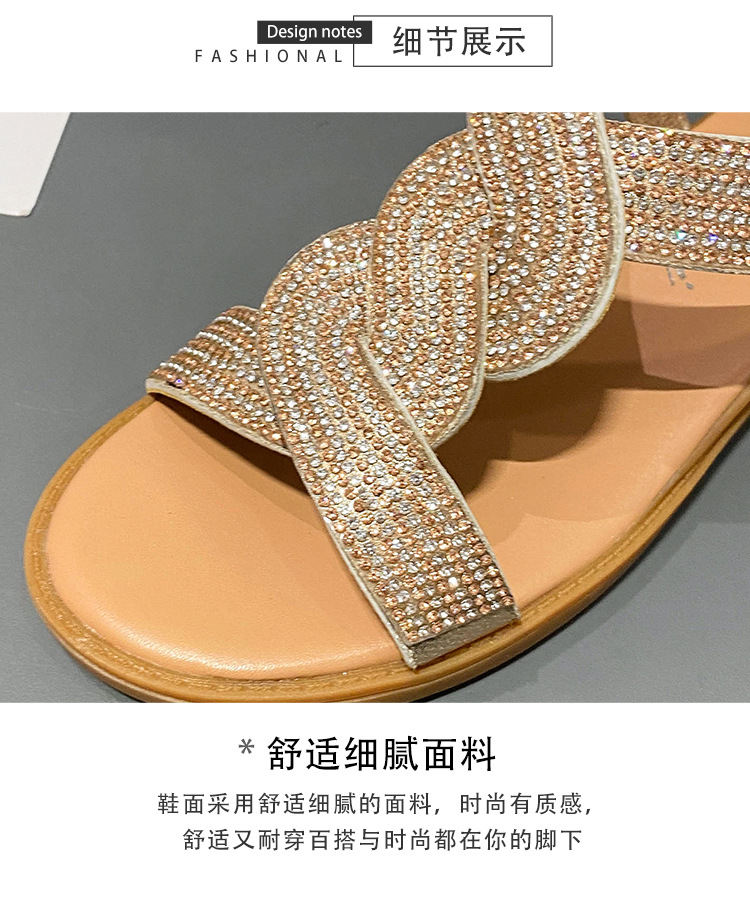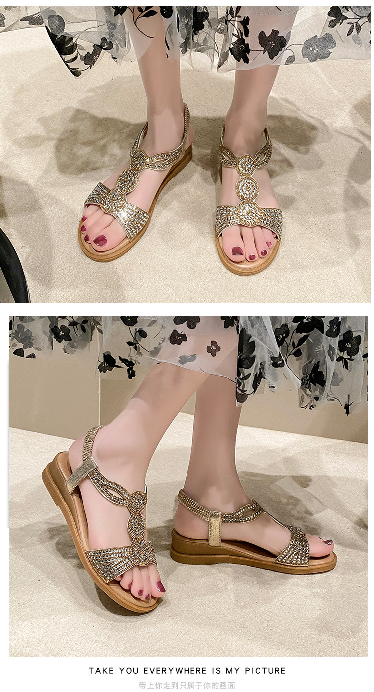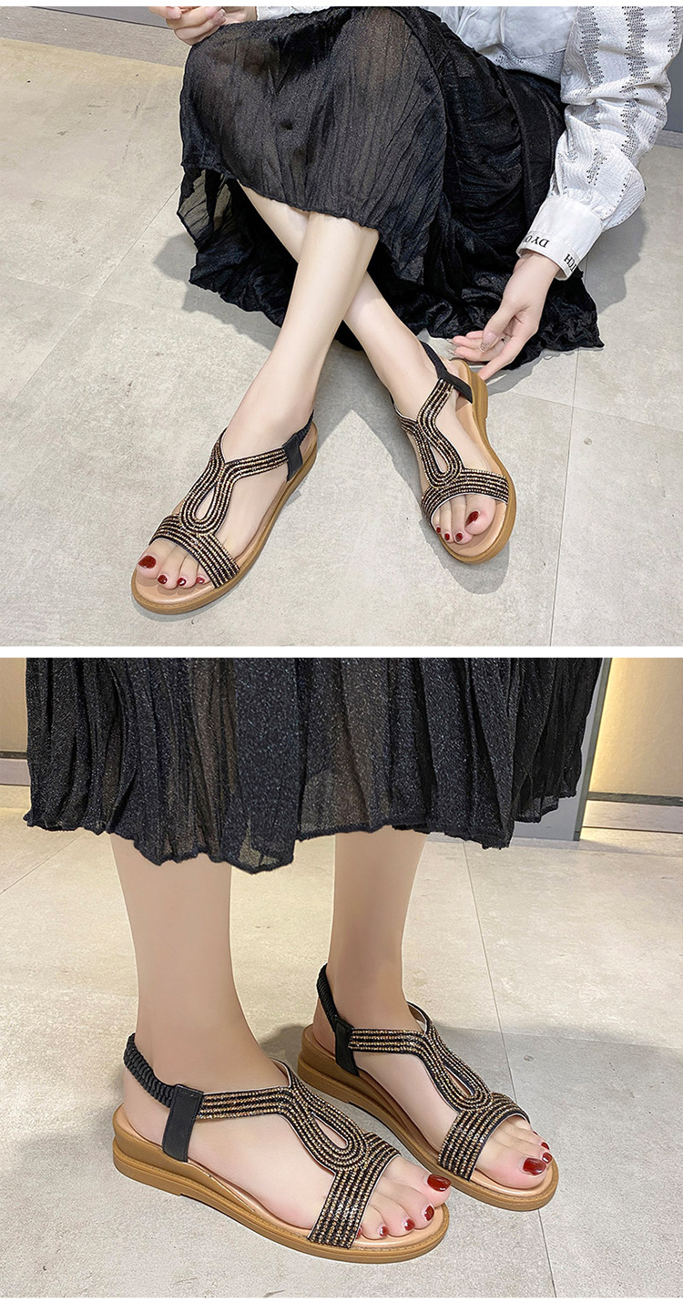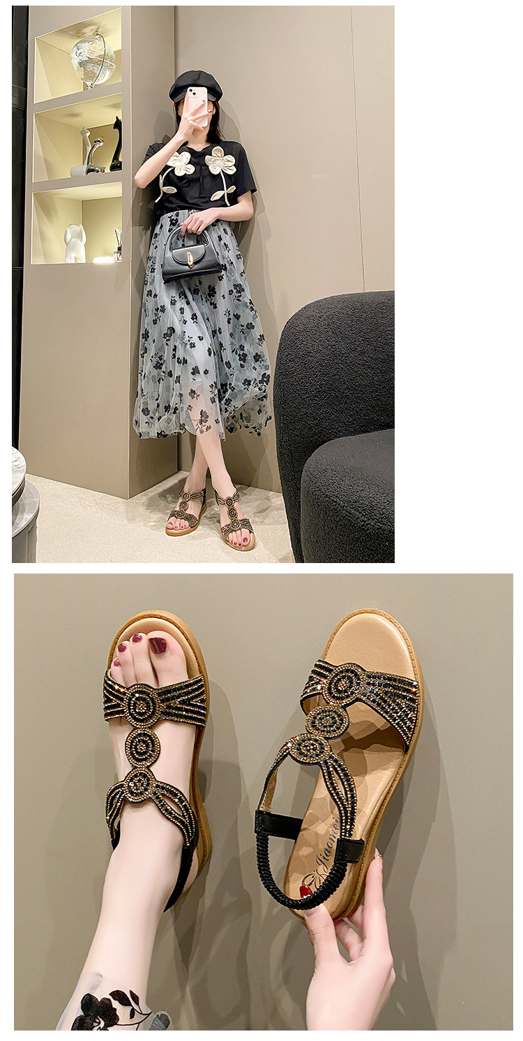 대외 무역 대형 2025 여름 신작 라인스톤 웨지 샌들 여성용 로마 오픈 토우 패션 샌들