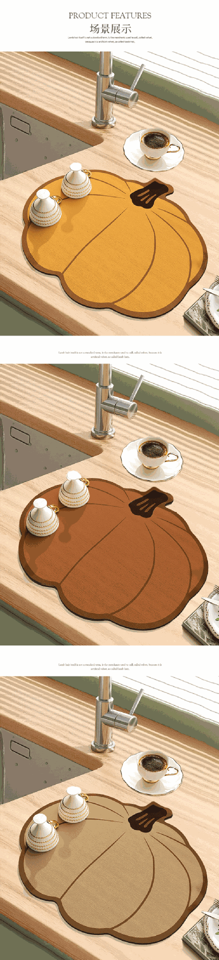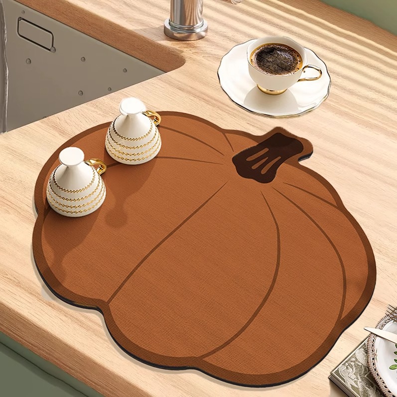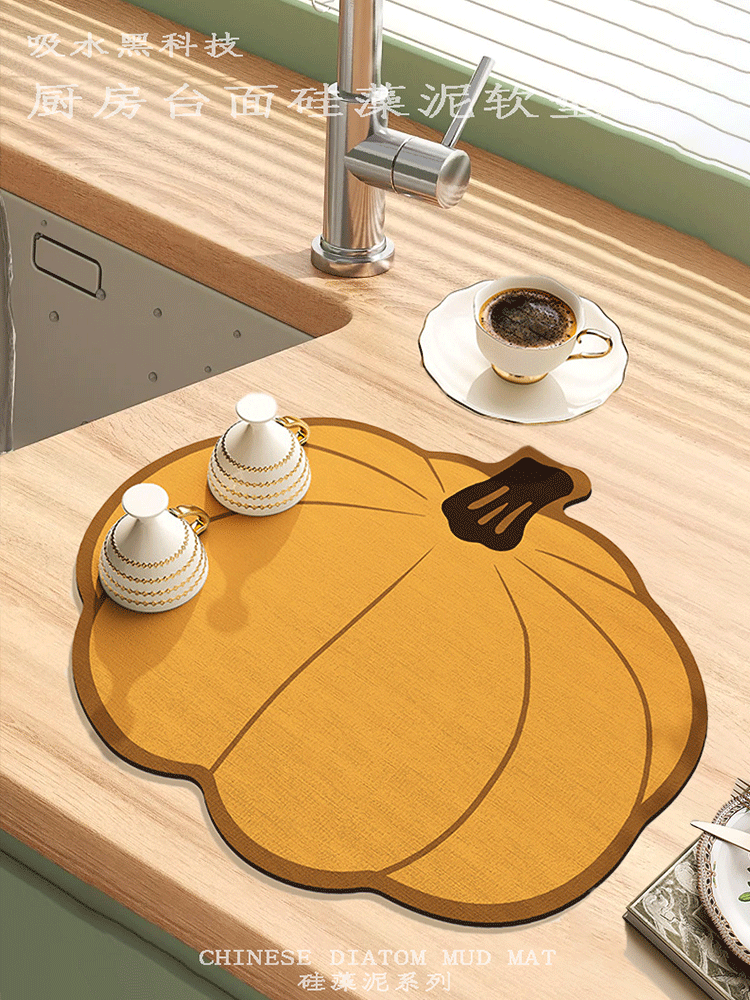 주방 배수 매트 만화 모양의 호박 흡수성 매트 Diatom 진흙 데스크탑 빠른 건조 코스터 바 매트 열 절연 장소