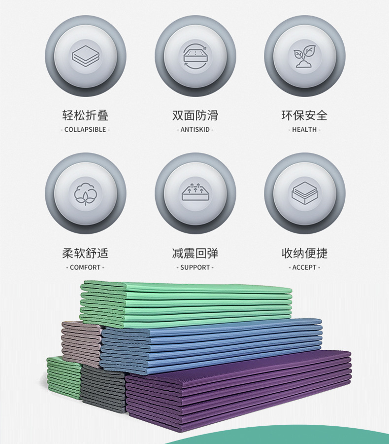 국경 간 새로운 접이식 요가 매트 tpe 미끄럼 방지 학생 점심 시간 매트 댄스 피트니스 필라테스 충격 흡수 바닥 매트