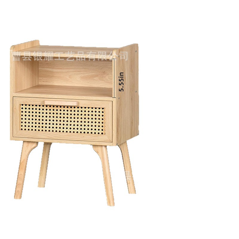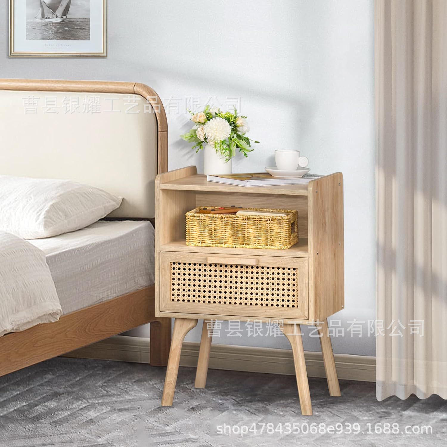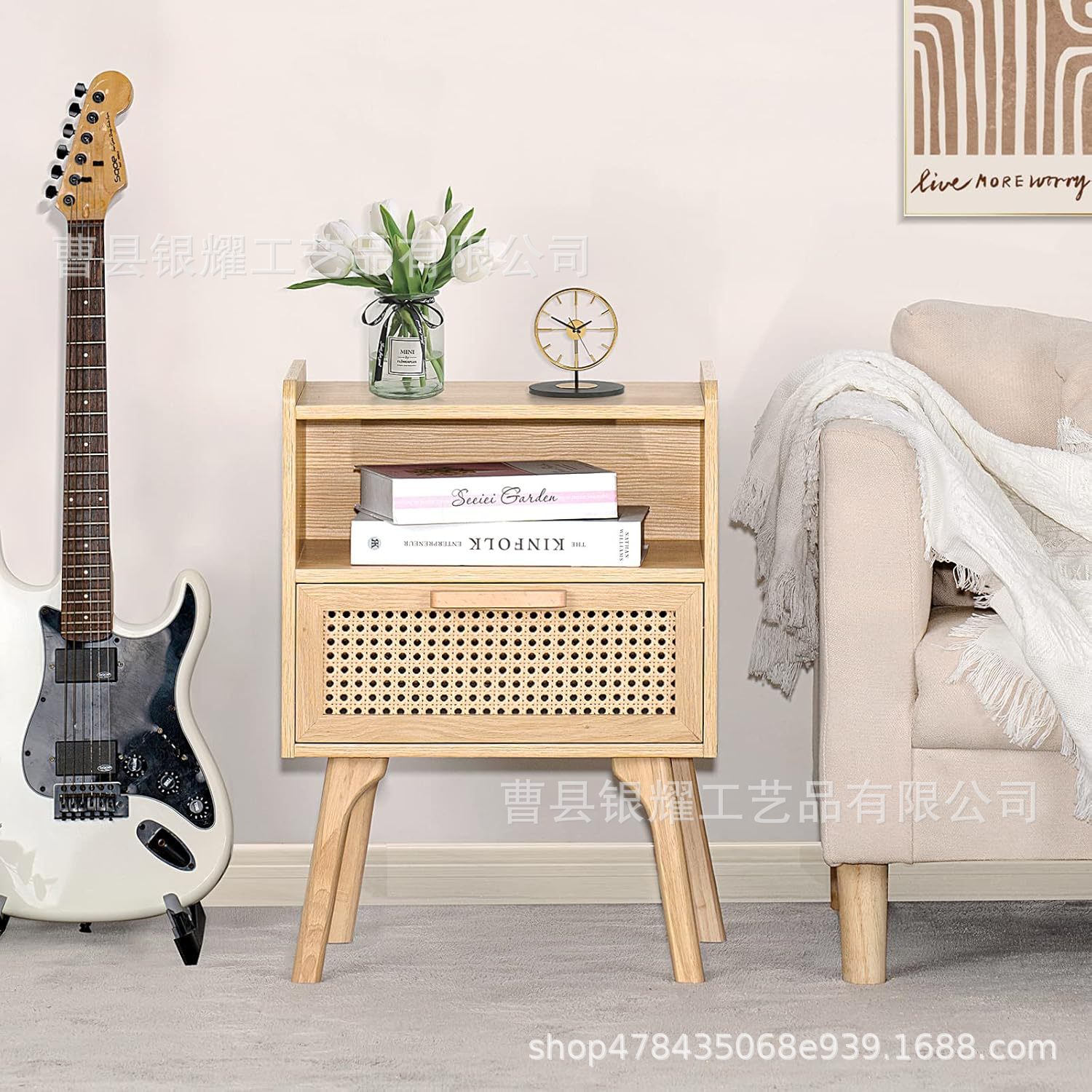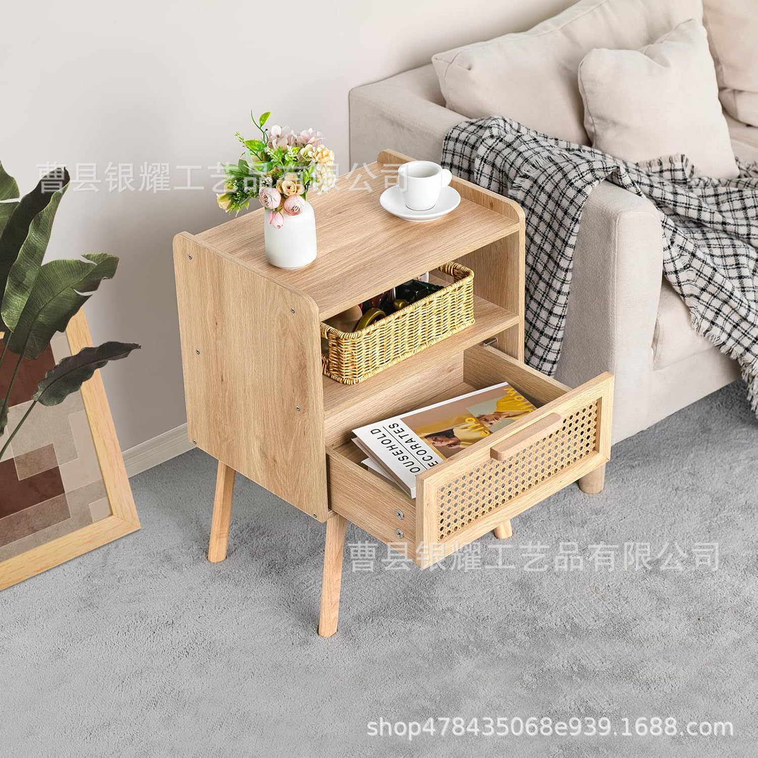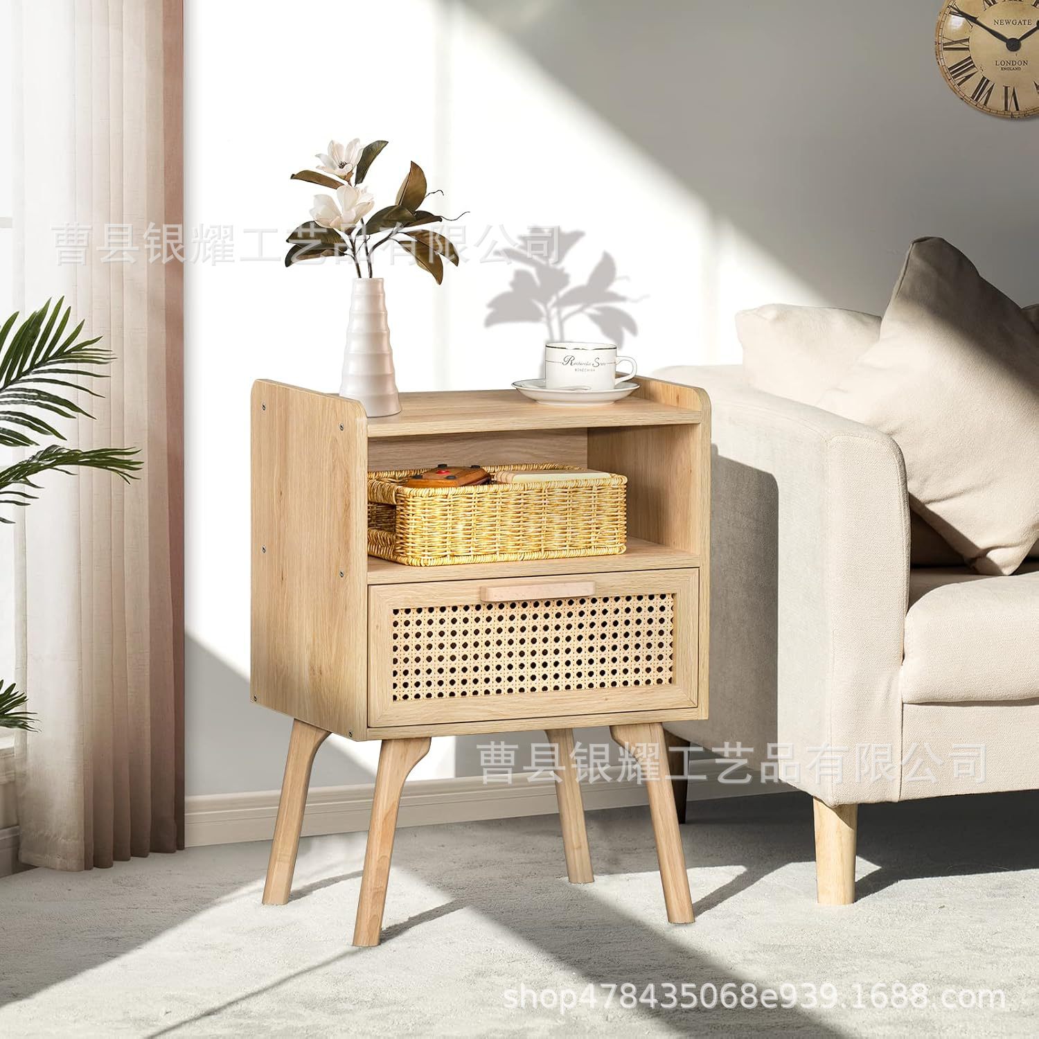 국경 간 목재 침대 옆 테이블 서랍이있는 보헤미안 사이드 테이블 오픈 선반 거실 다층 스토리지 테이블