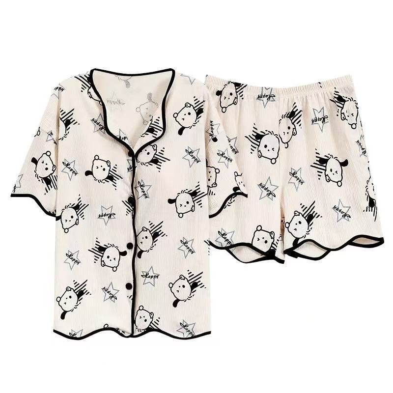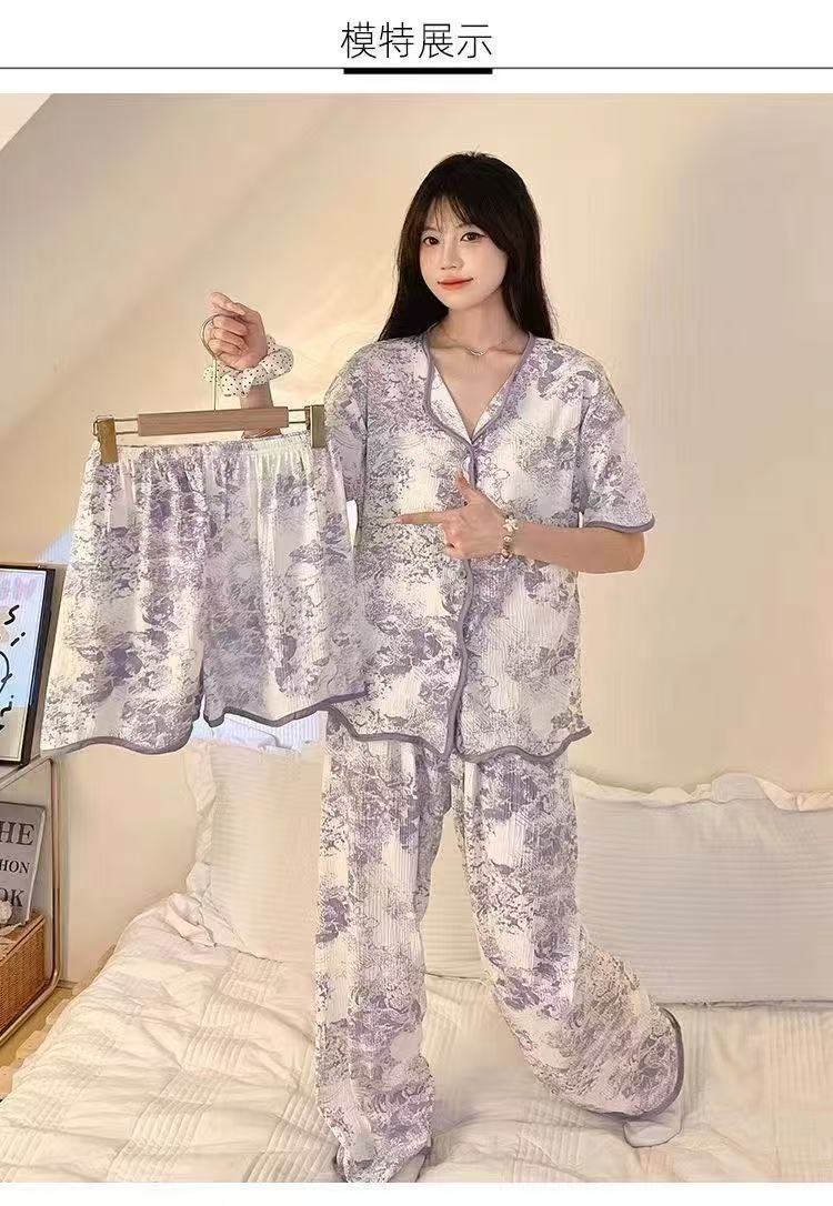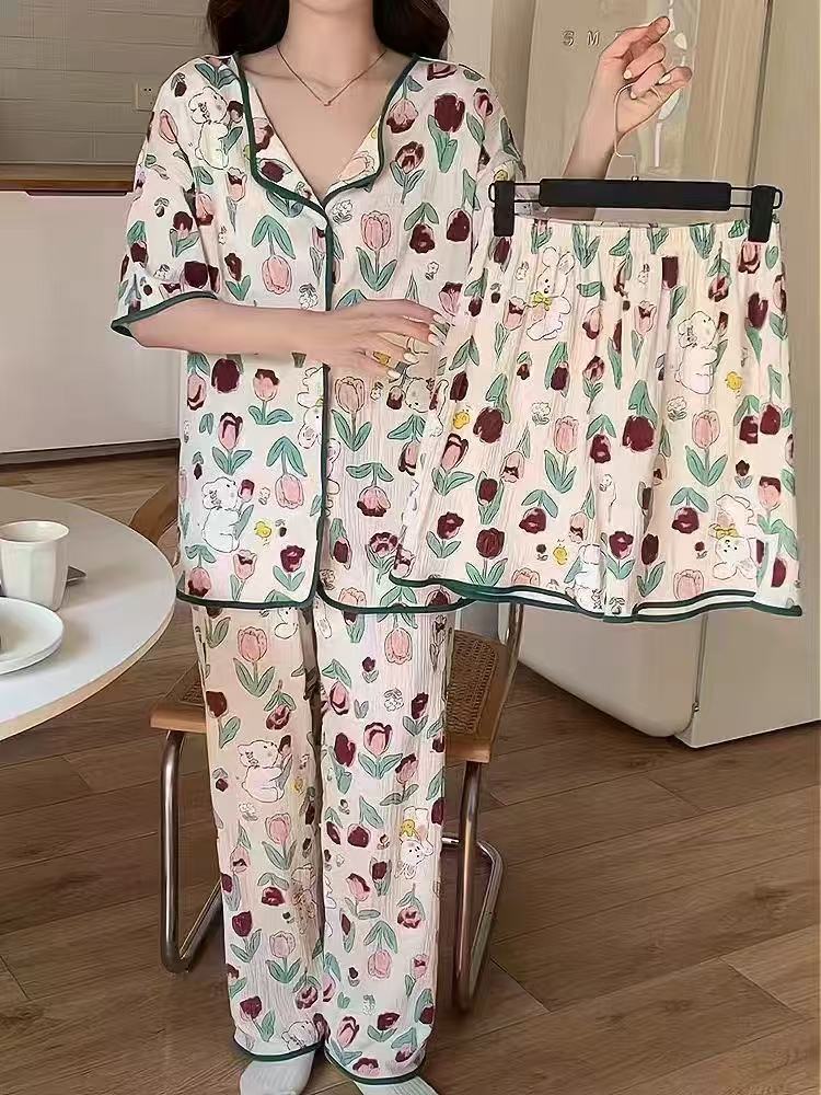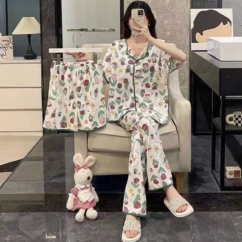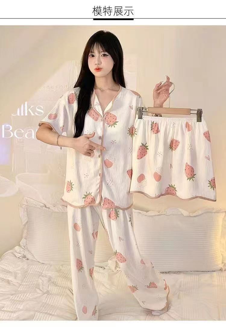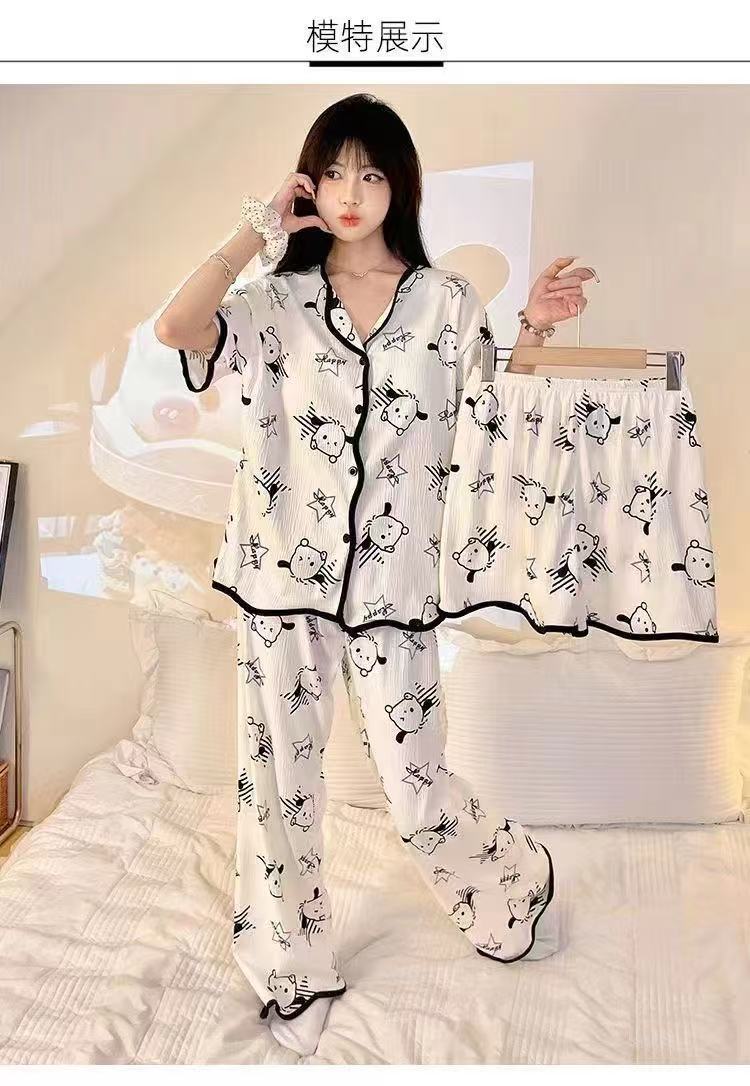 가슴 패드가 있는 잠옷, 여성용 반팔 가디건, 홈웨어 3종 세트, 달콤하고 귀여운 스타일, 캐주얼한 새로운 스타일
