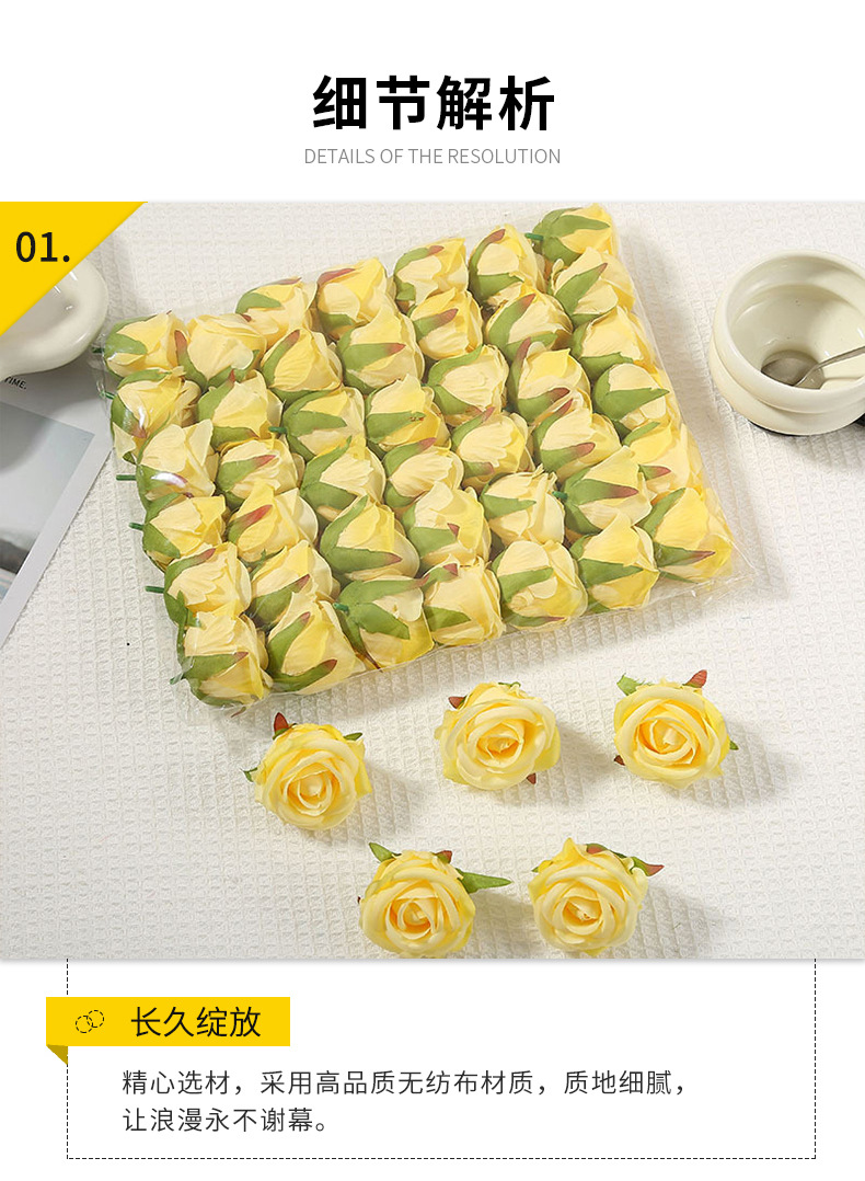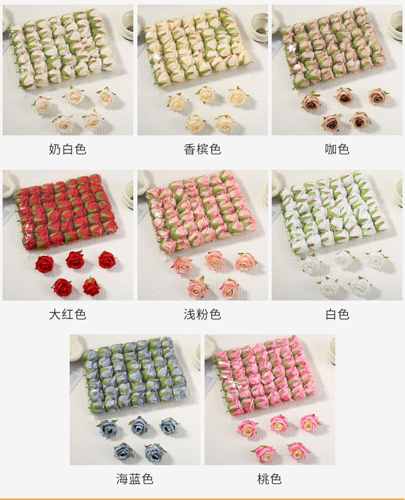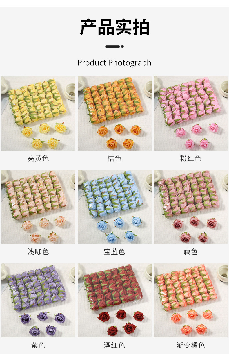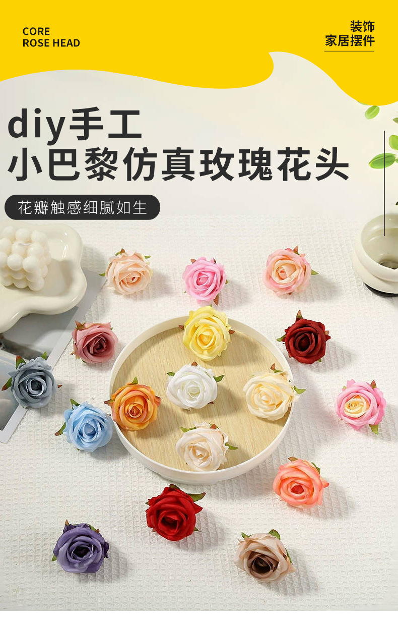 6cm 모조 미니 장미꽃 머리, 웨딩카 DIY용 코어가 있는 장미 장식품, 장미꽃 벽 장식 꽃