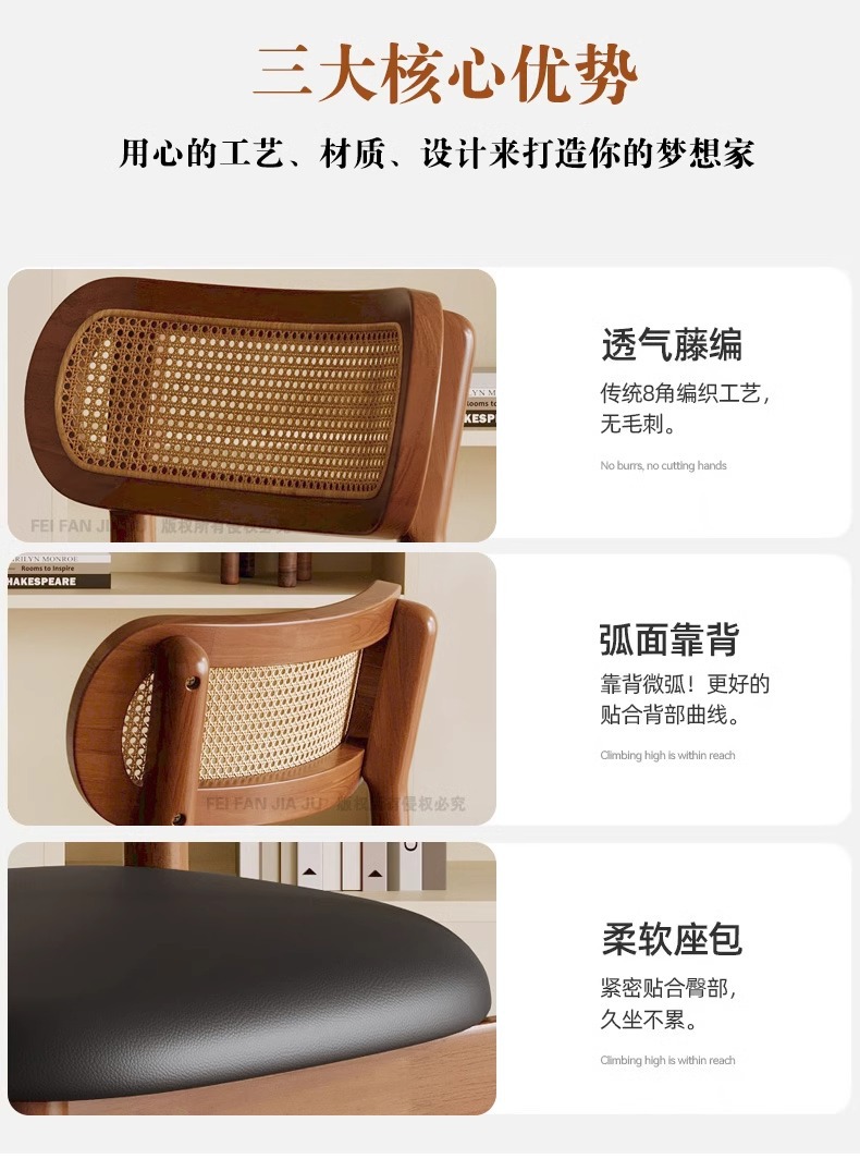 북유럽 단단한 나무 식당 의자 홈 레저 등나무 의자 호텔 라이트 럭셔리 레스토랑 식탁 협상 프랑스 복고풍 상업