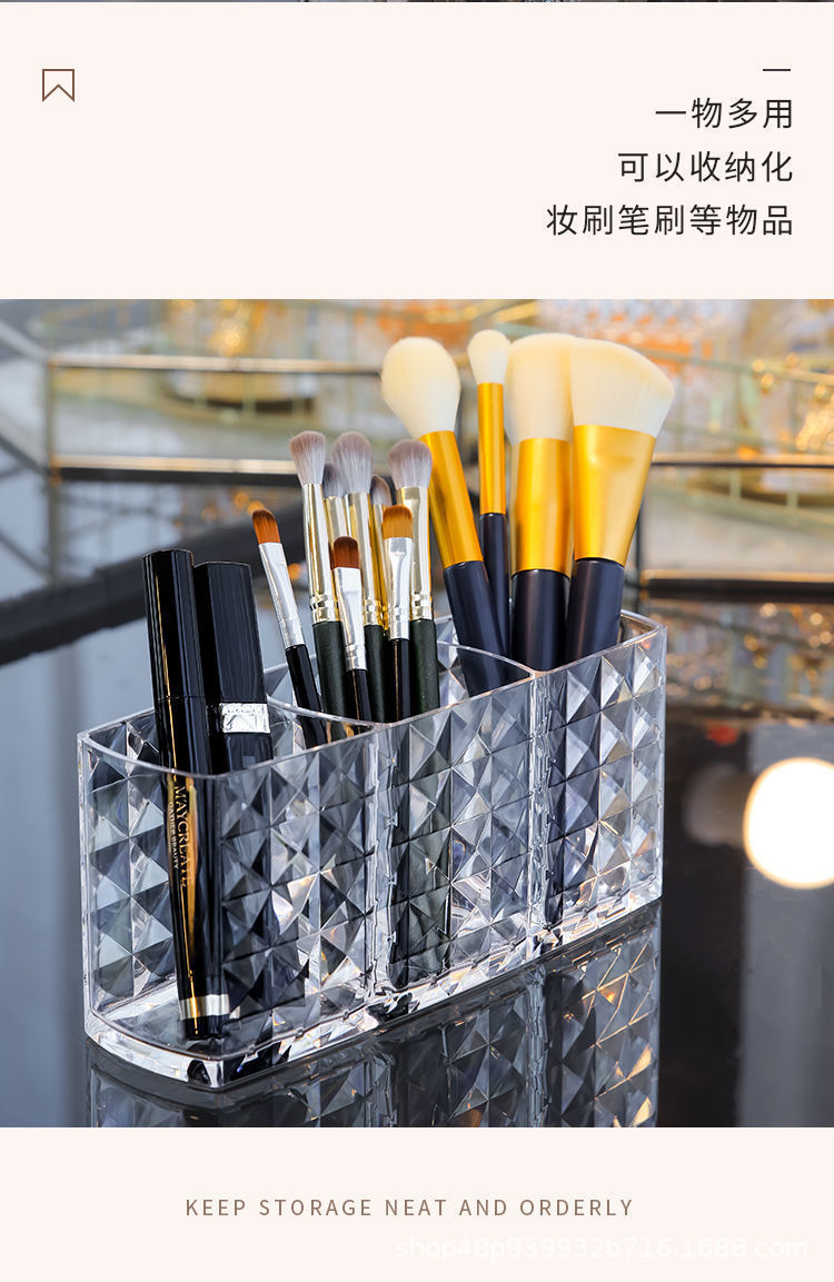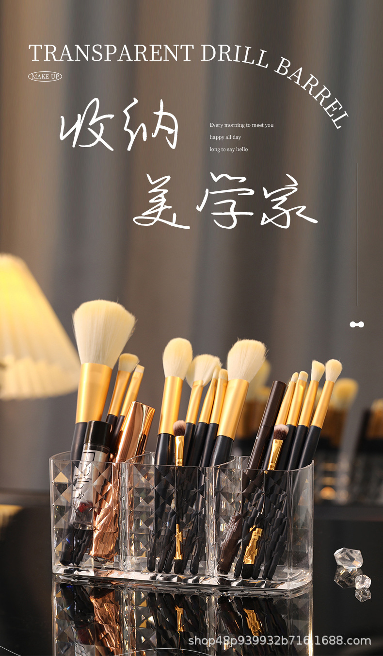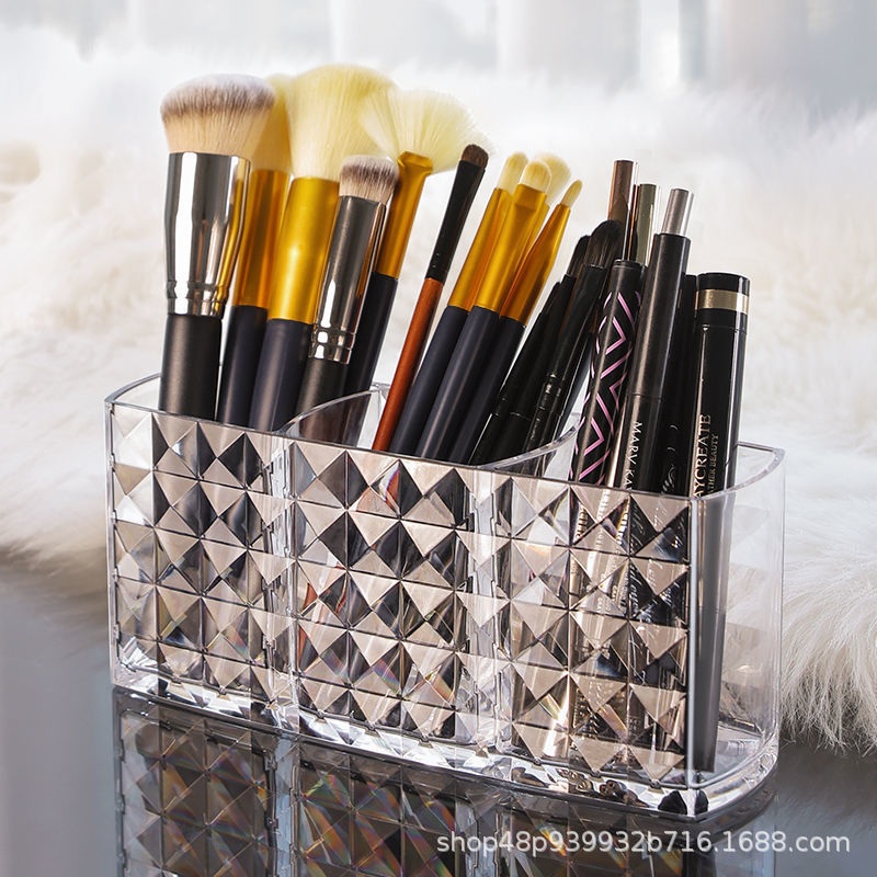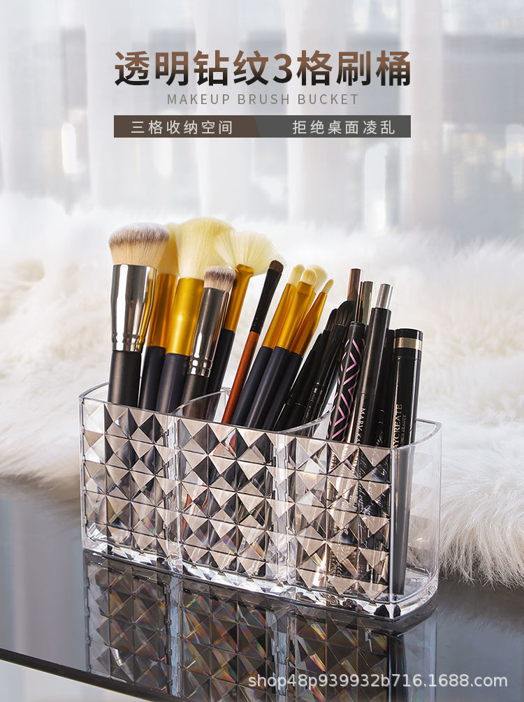 다이아몬드 패턴 메이크업 브러쉬 보관 상자 투명 학생 기숙사 아이 섀도우 브러쉬 버킷 데스크탑 립스틱 화장품 보관 상자