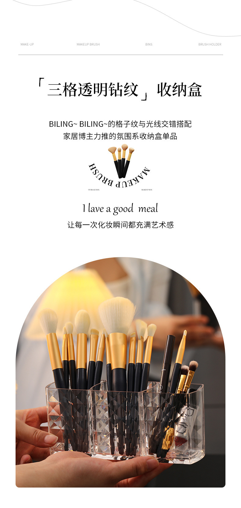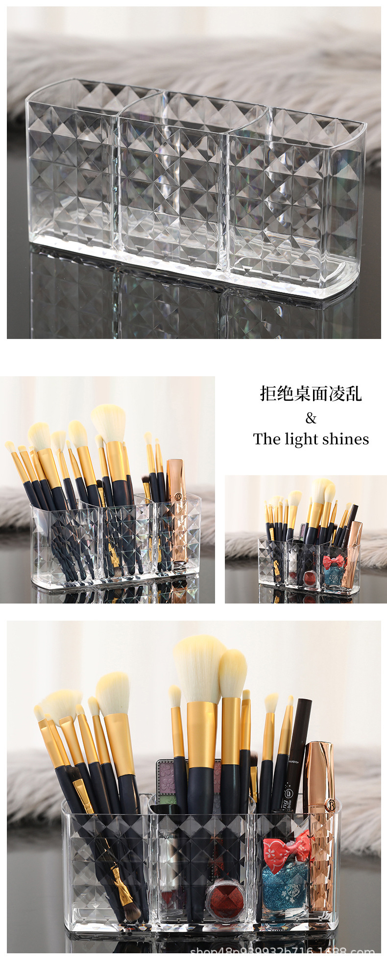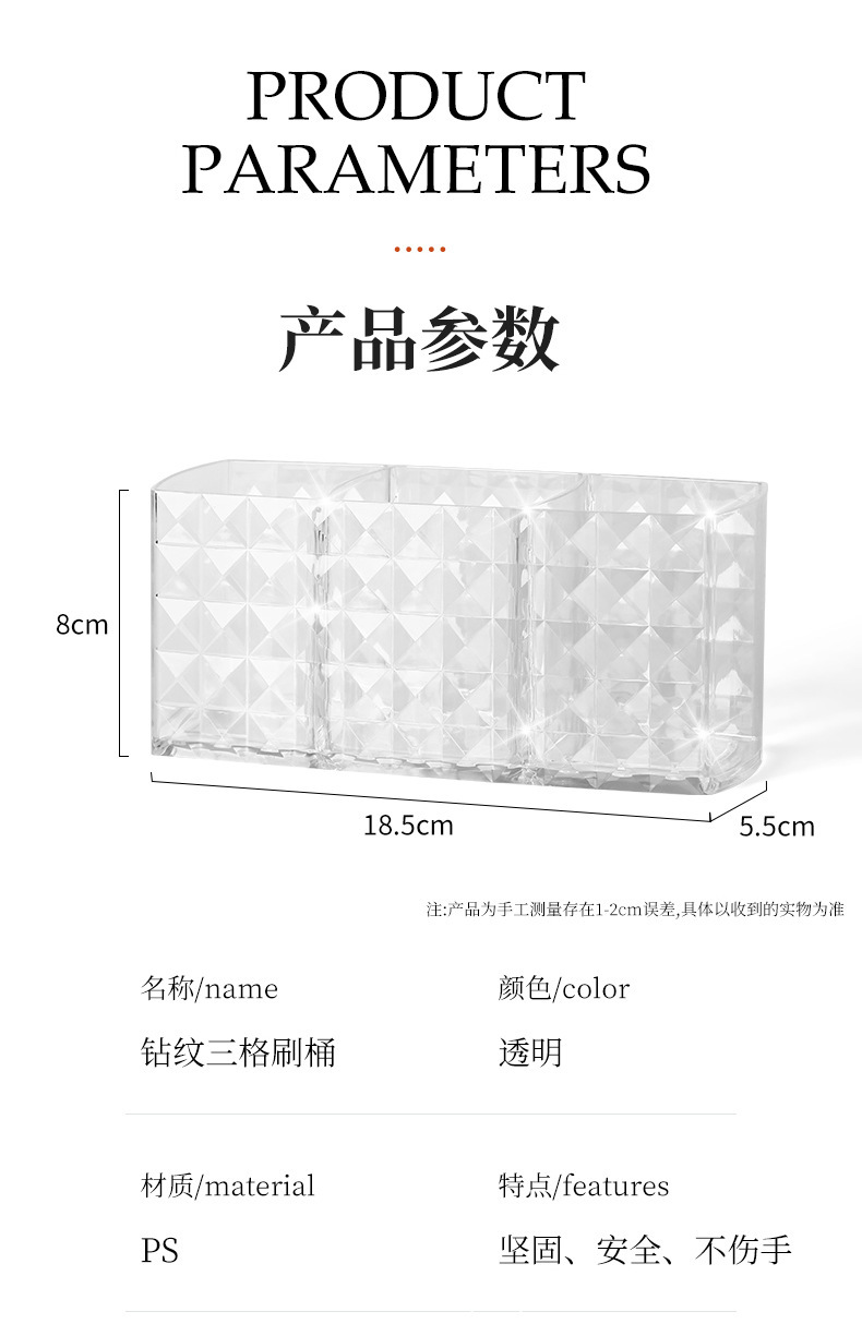 다이아몬드 패턴 메이크업 브러쉬 보관 상자 투명 학생 기숙사 아이 섀도우 브러쉬 버킷 데스크탑 립스틱 화장품 보관 상자