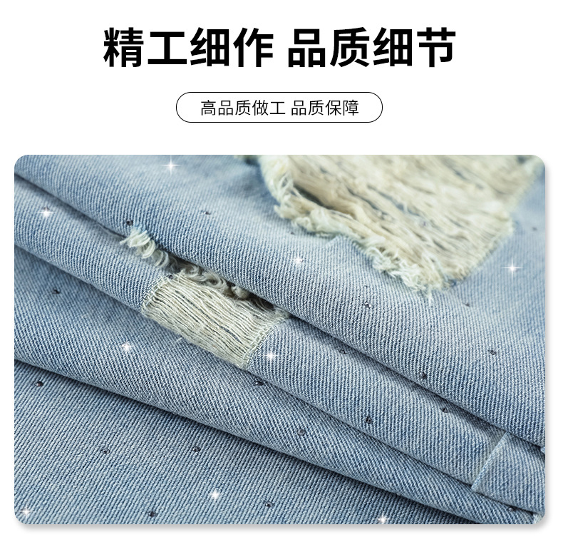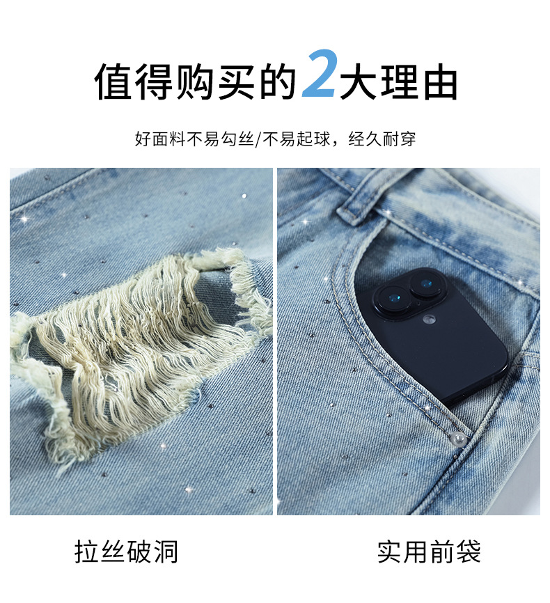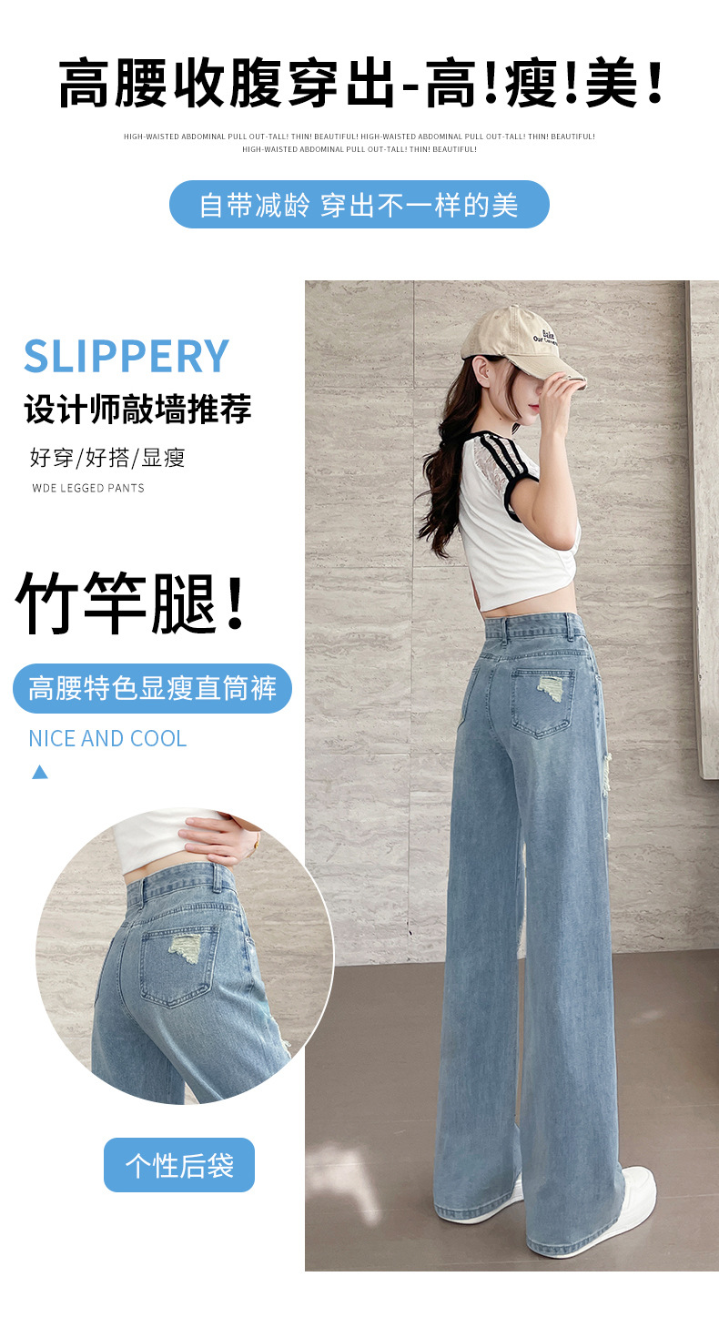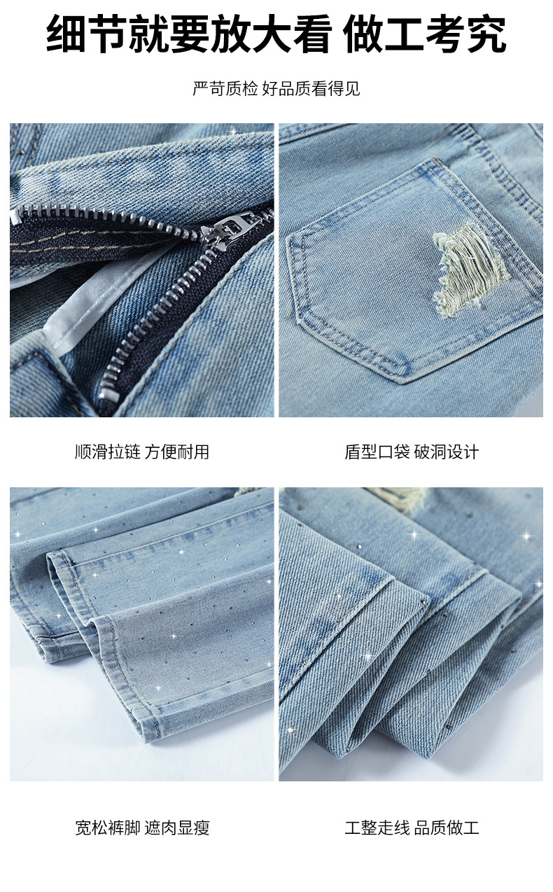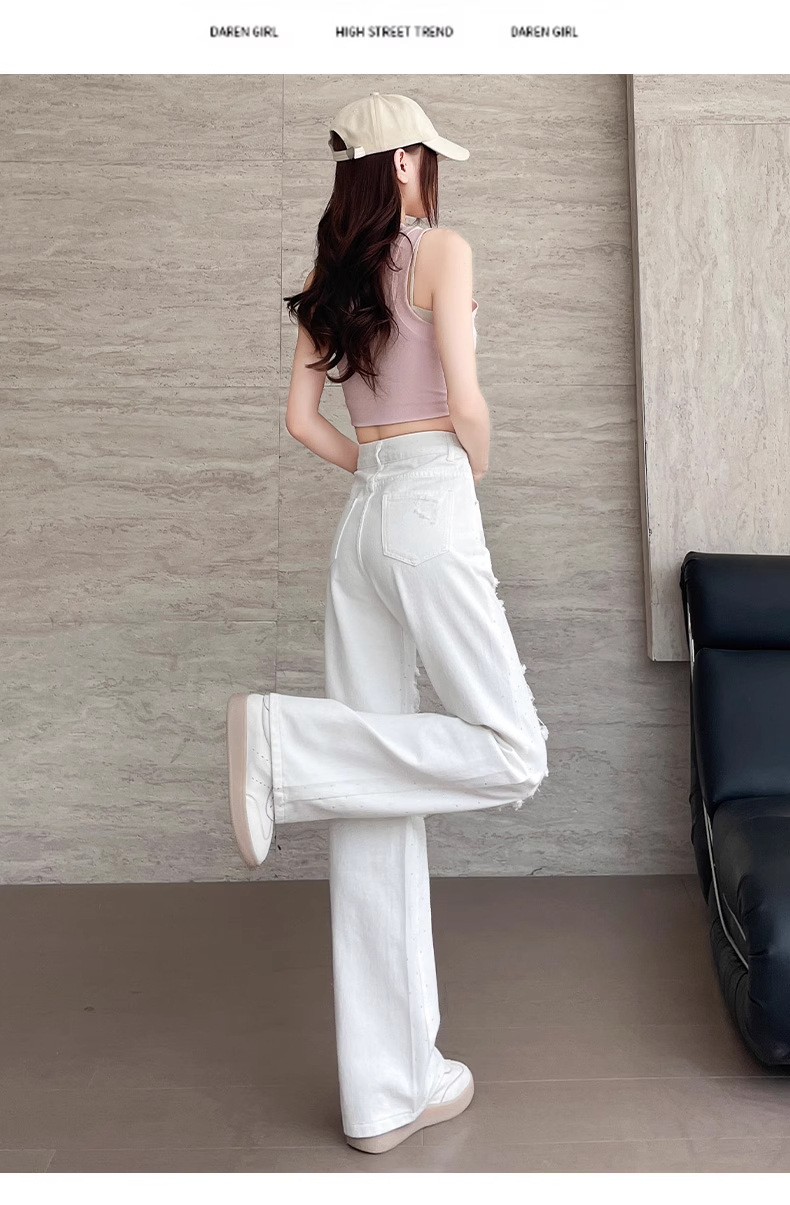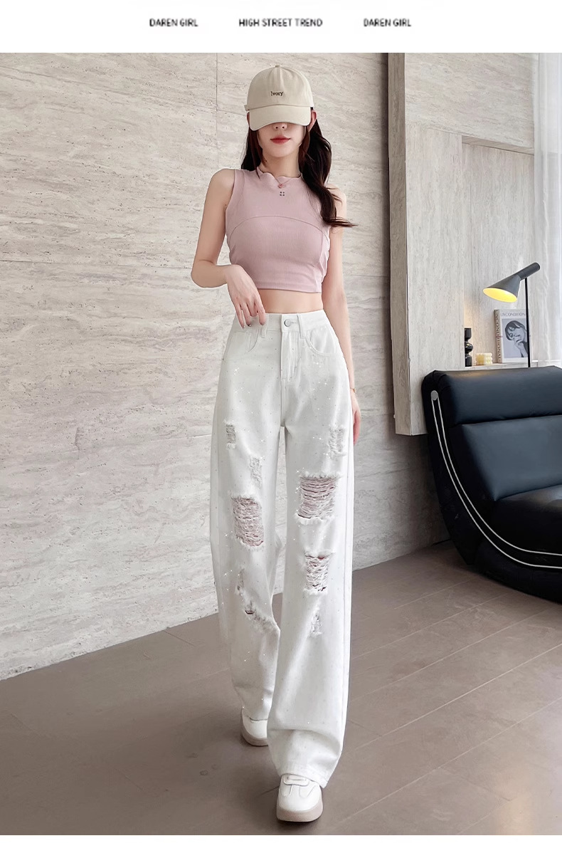 여름 얇은 여성용 찢어진 핫 다이아몬드 와이드 레그 청바지 2025 새로운 트렌디 슈퍼 핫 패셔너블 스트레이트 팬츠 여성용