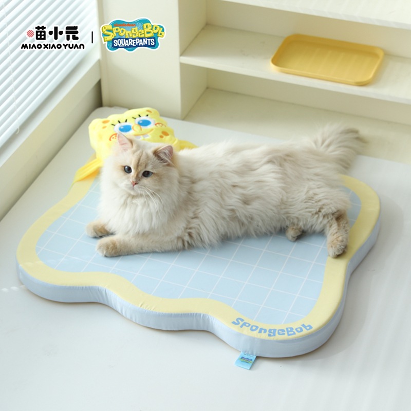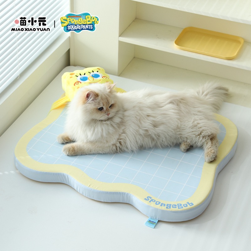 야옹샤오위안 | 스폰지밥 공동 브랜드 애완 동물 쿨링 매트 여름 쿨링 스폰지 매트 고양이와 개 미끄럼 방지 고양이 수면 매트
