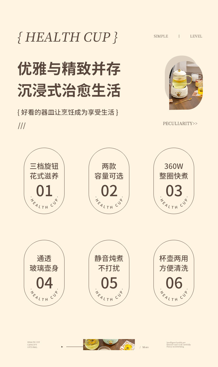 다기능 미니 전기 컵 가정용 꽃 차 뜨거운 우유 전기 스튜 컵 사무실 대용량 건강 냄비