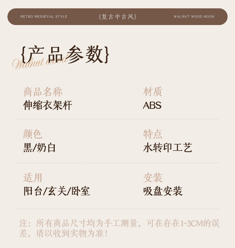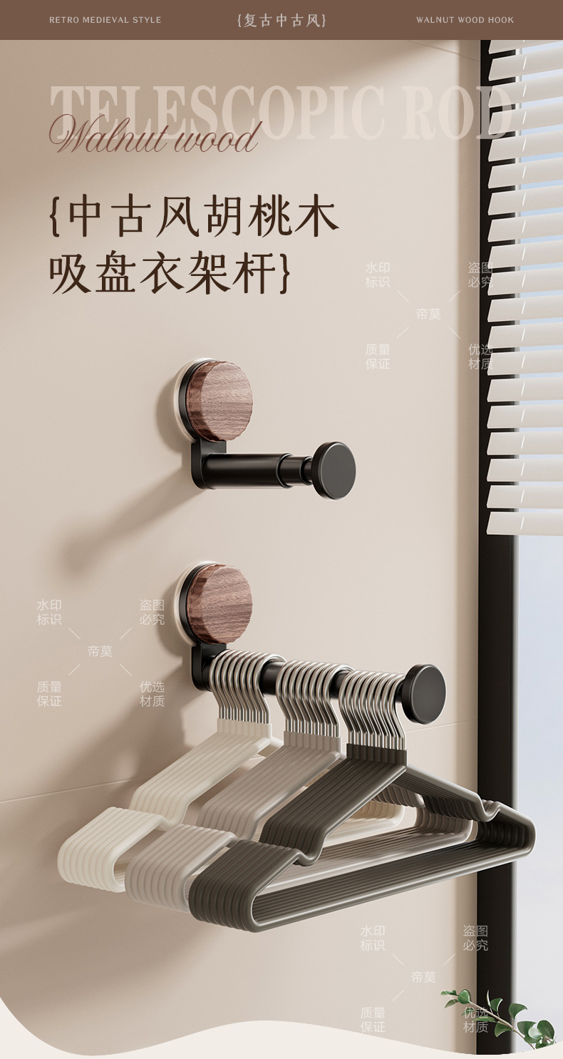 [중세풍 블랙] 흡착컵 건조 텔레스코픽 폴