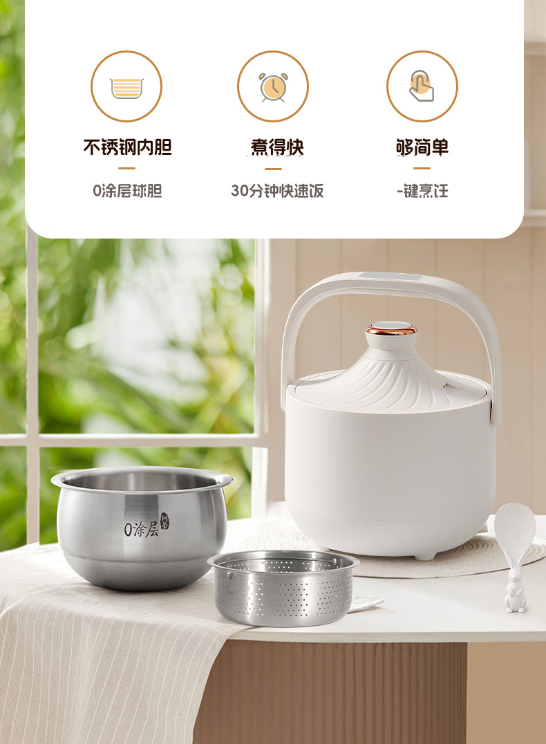 새로운 0 코팅 밥솥 다기능 가정용 쌀 수프 분리 3L 밥솥 스테인레스 스틸 라이너 밥솥
