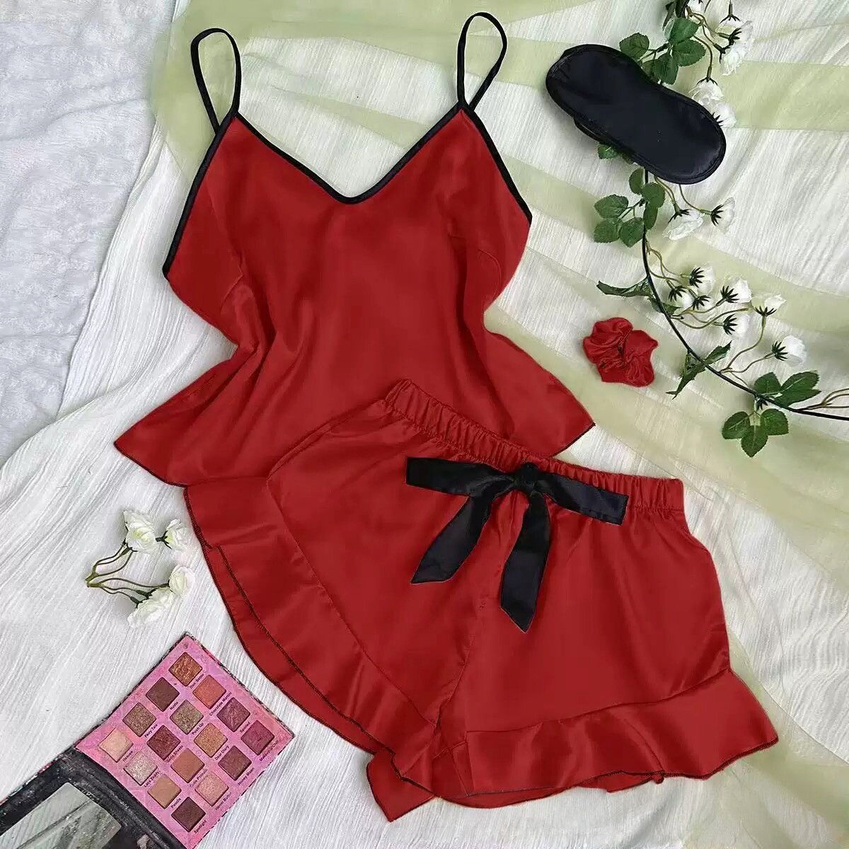 유럽과 미국에서 인기 있는 홈웨어 잠옷, 여성 여름 패션 민소매 반바지 세트, 아이스 실크 새틴, 공장 직판
