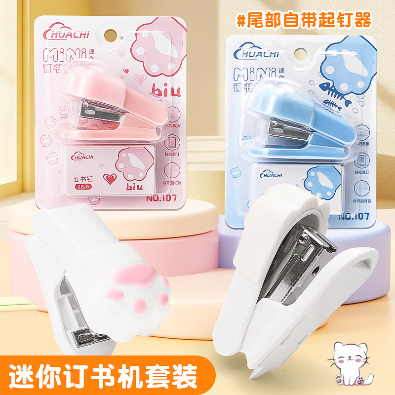 만화 미니 스테이플러 스테이플 세트 학생 고급 휴대용 스테이플러 사무실 데스크탑 용품 도매