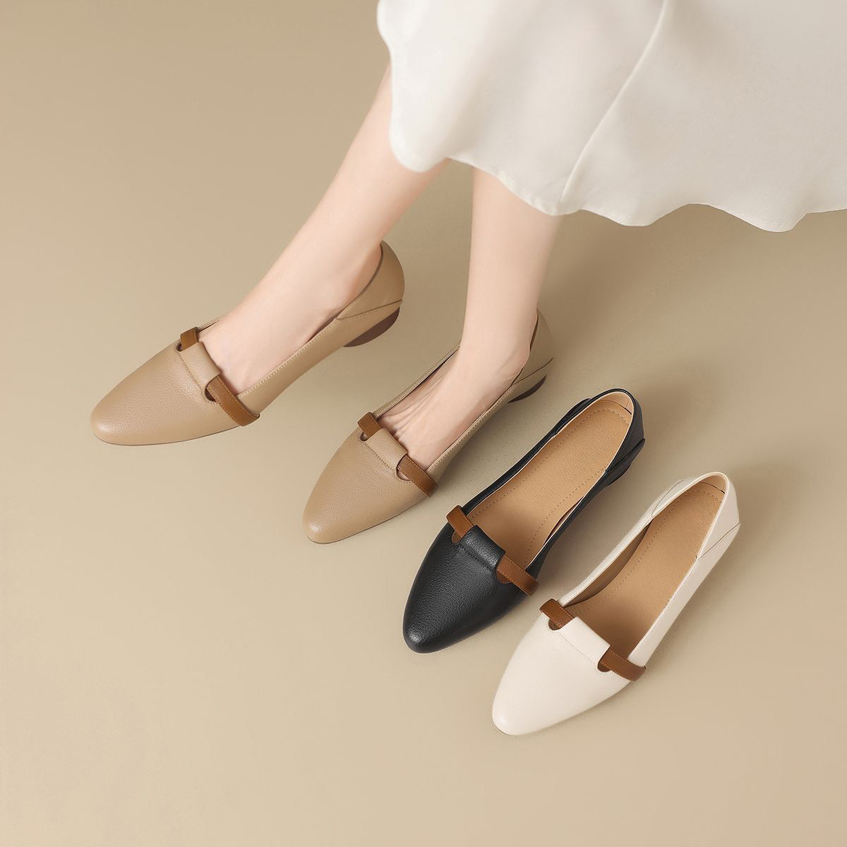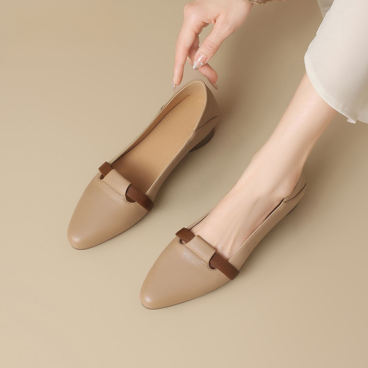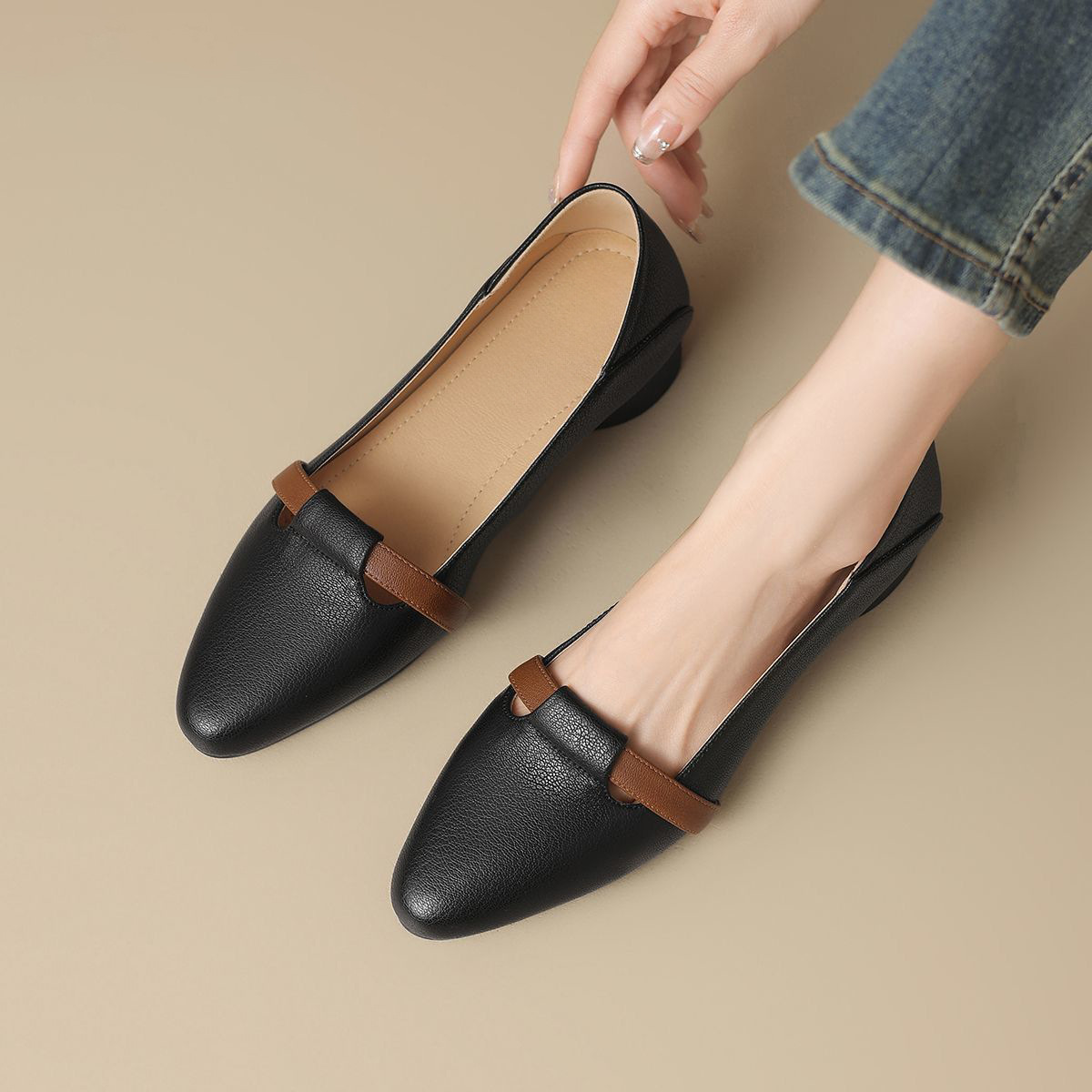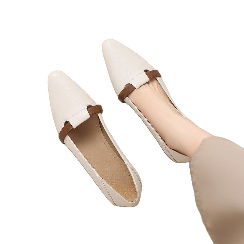 2025년 봄 여성용 뾰족코 싱글 슈즈 새로운 스타일 플랫 바닥 봄, 가을 얕은 굽 메리 제인 작은 가죽 신발 슬립온 할머니 신발