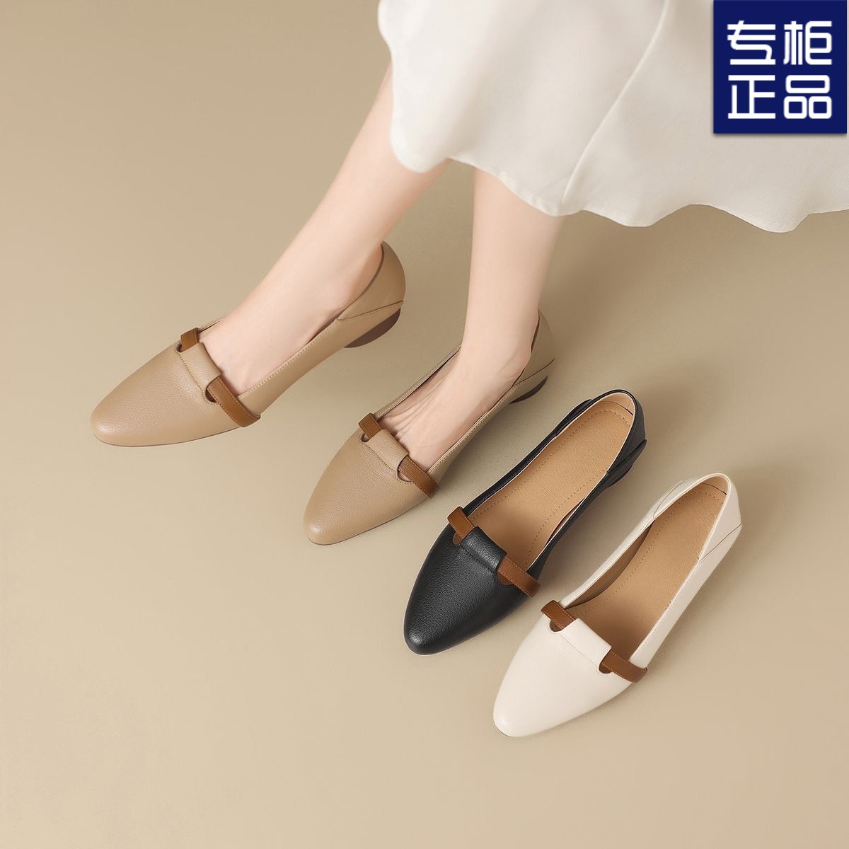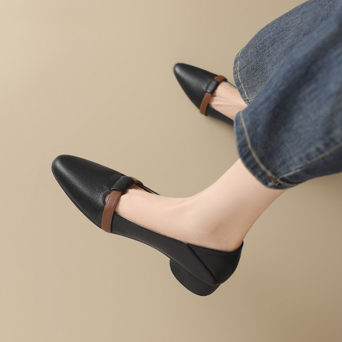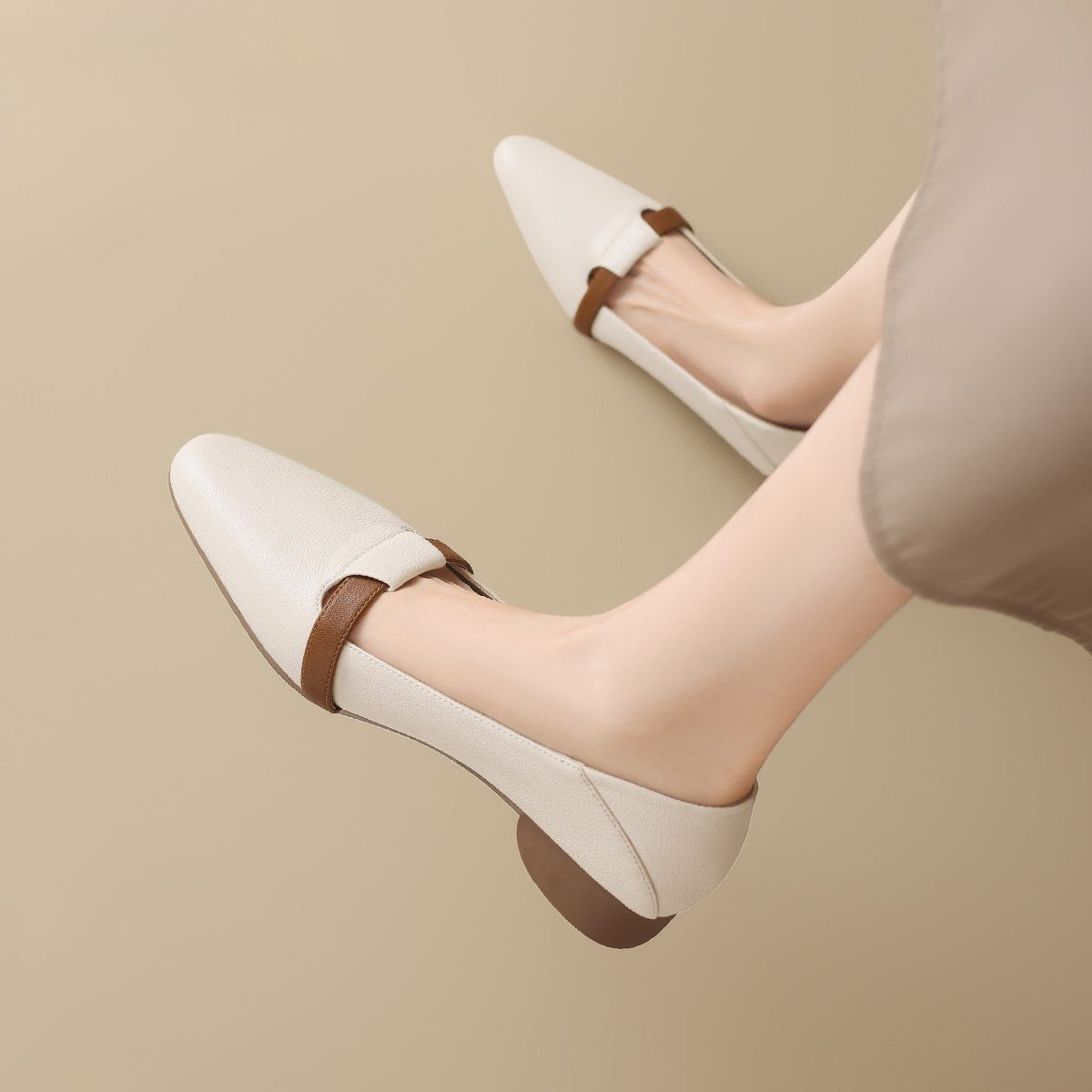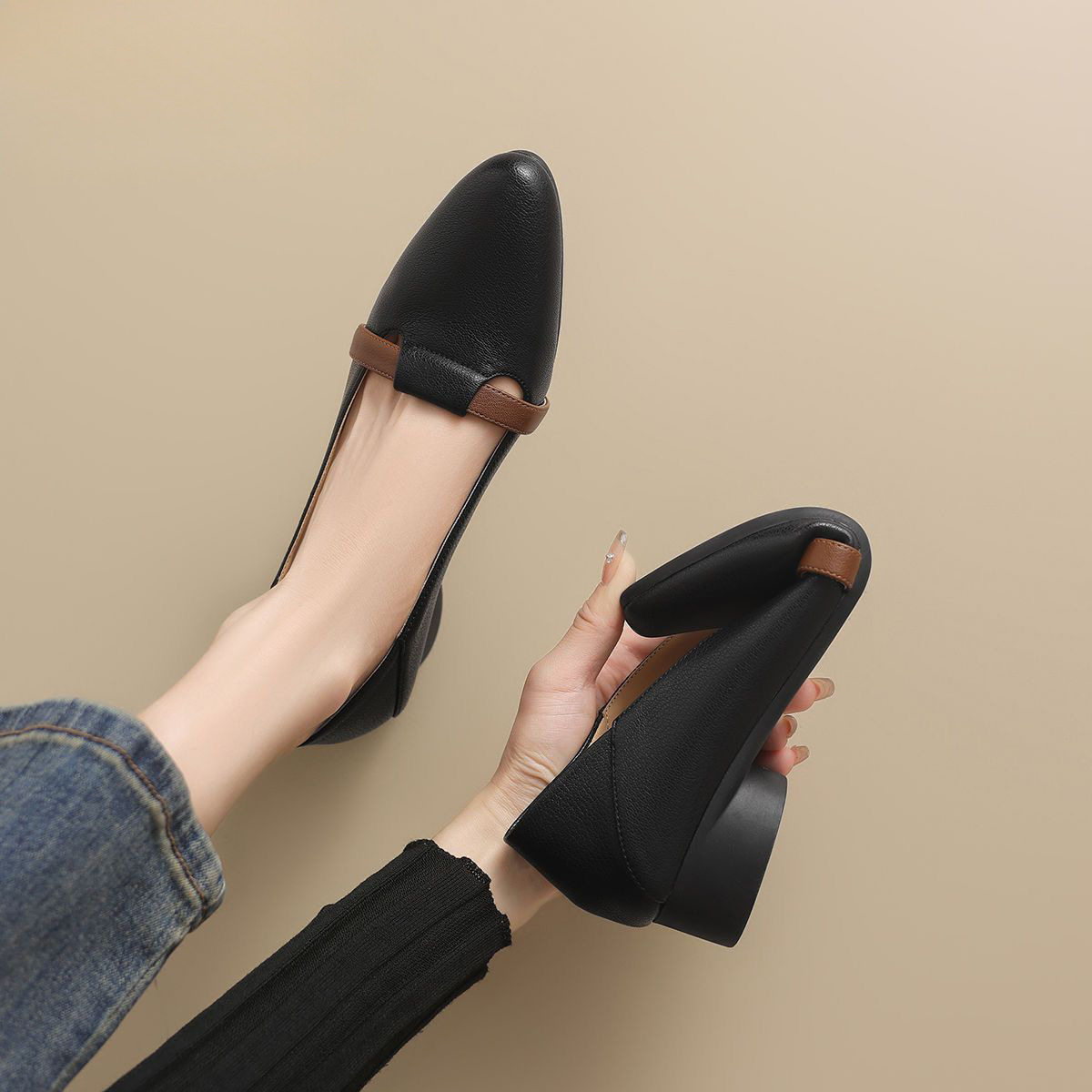 2025년 봄 여성용 뾰족코 싱글 슈즈 새로운 스타일 플랫 바닥 봄, 가을 얕은 굽 메리 제인 작은 가죽 신발 슬립온 할머니 신발