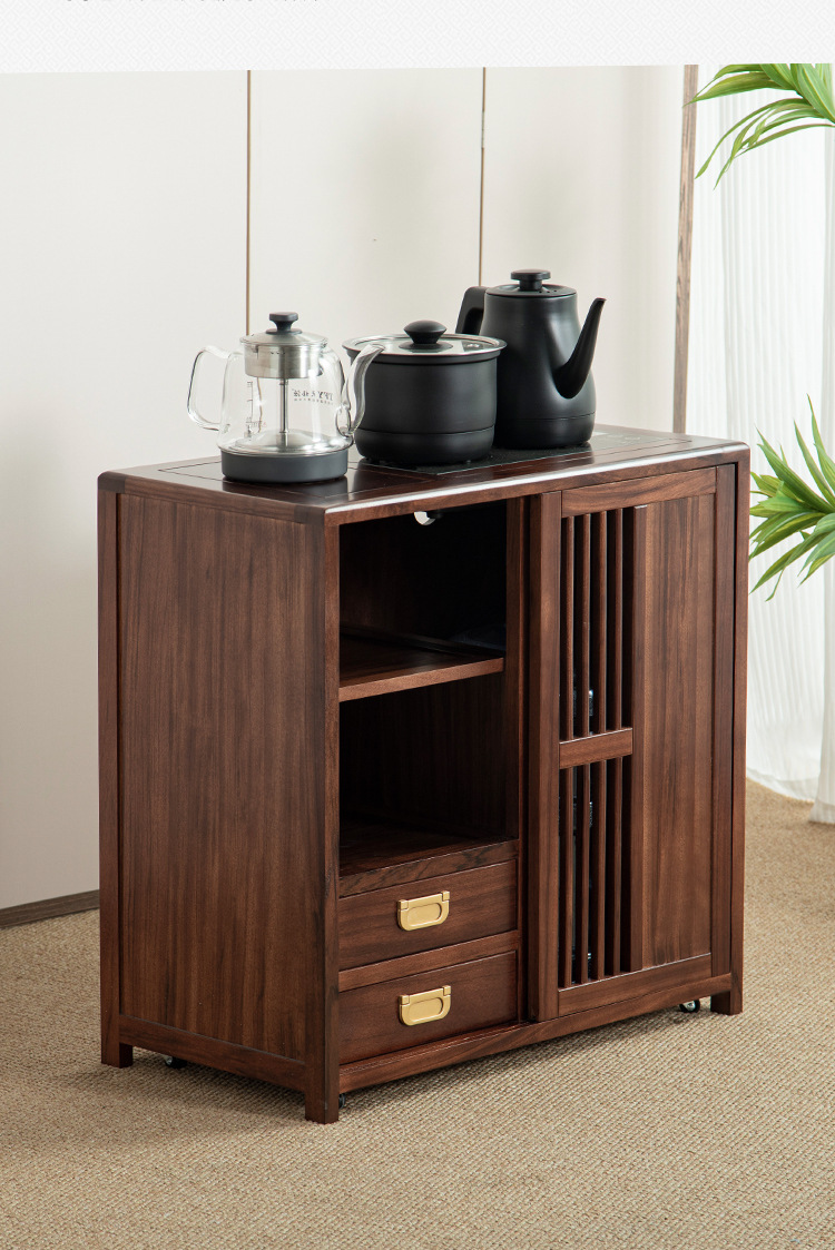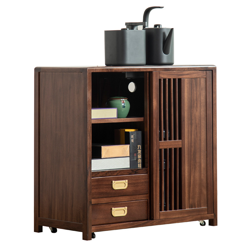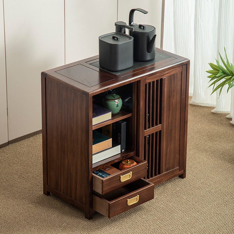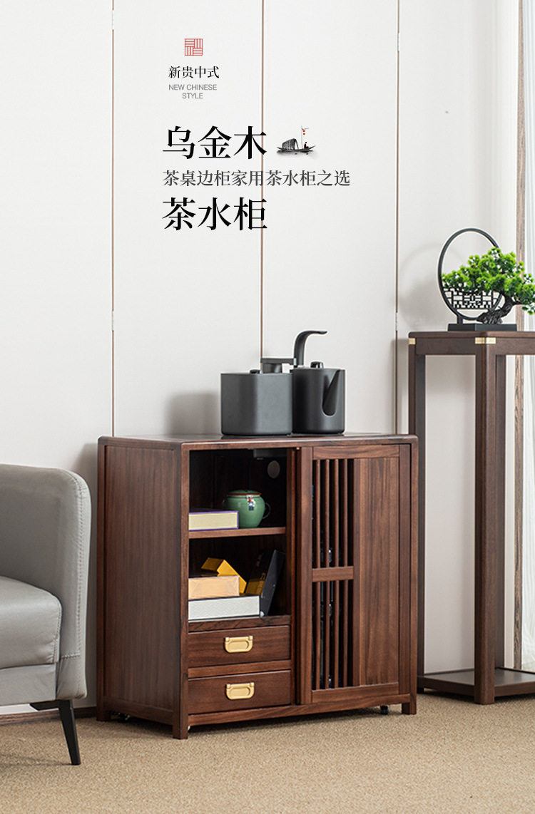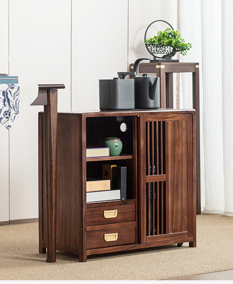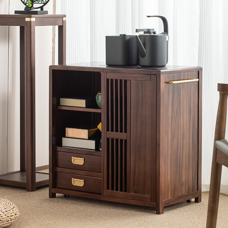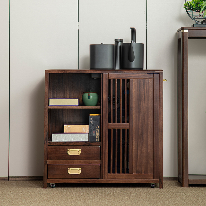 새로운 중국 스타일의 단단한 나무 차 캐비닛, 검은 금색 나무 이동식 소형 주전자, 통합 사이드 테이블, 차 테이블 사이드 캐비닛, 차 사이드 테이블