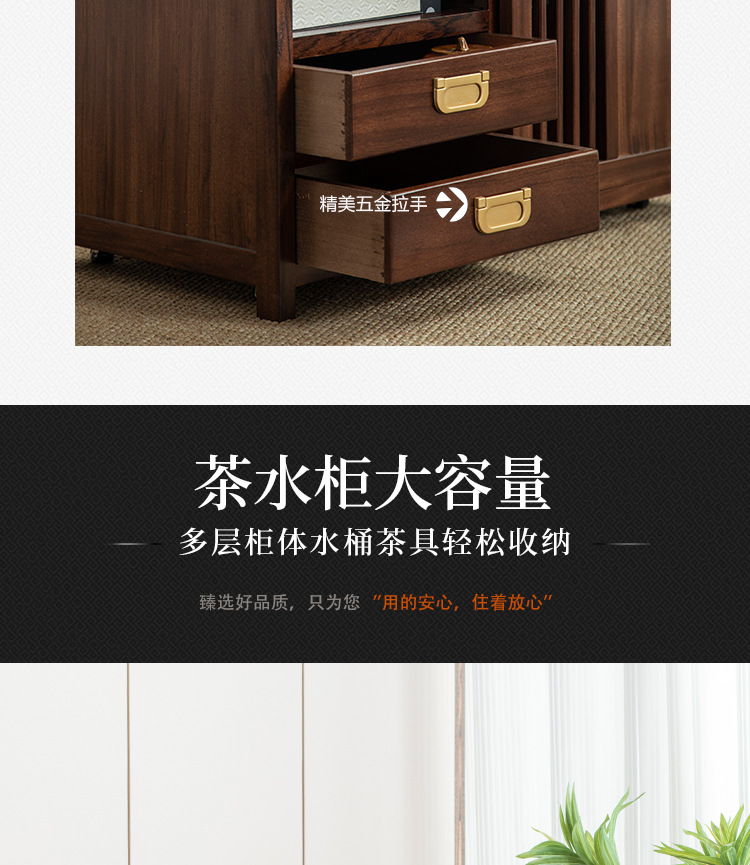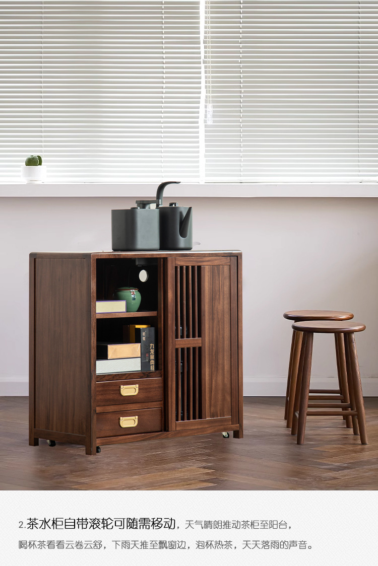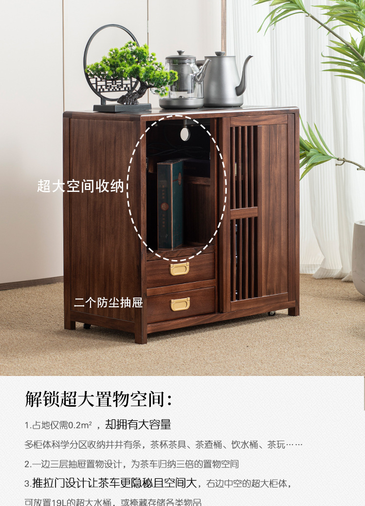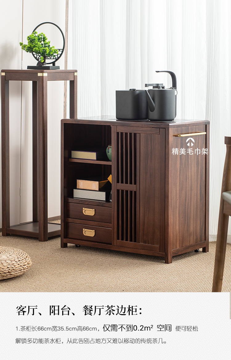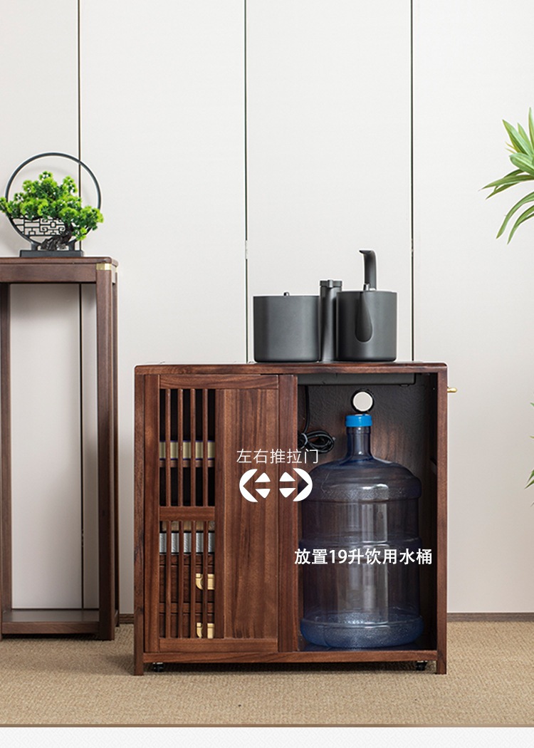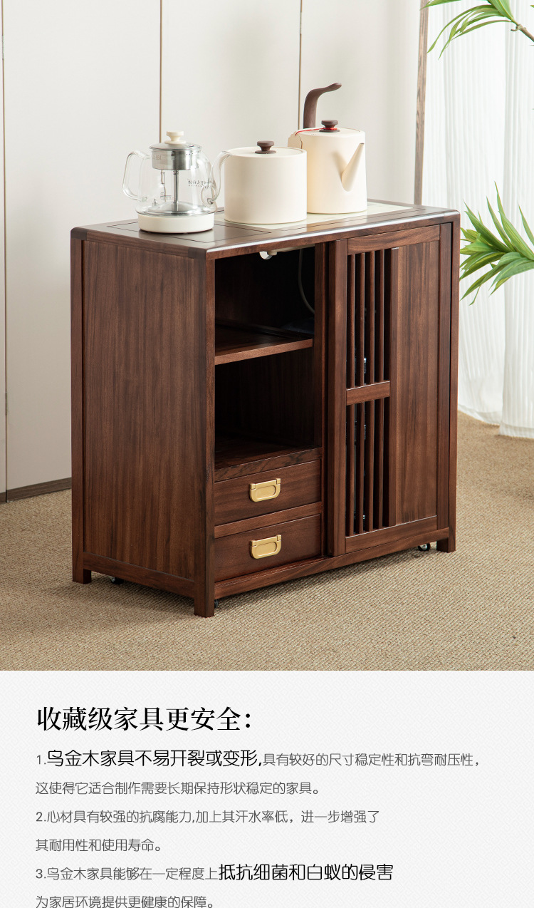 새로운 중국 스타일의 단단한 나무 차 캐비닛, 검은 금색 나무 이동식 소형 주전자, 통합 사이드 테이블, 차 테이블 사이드 캐비닛, 차 사이드 테이블