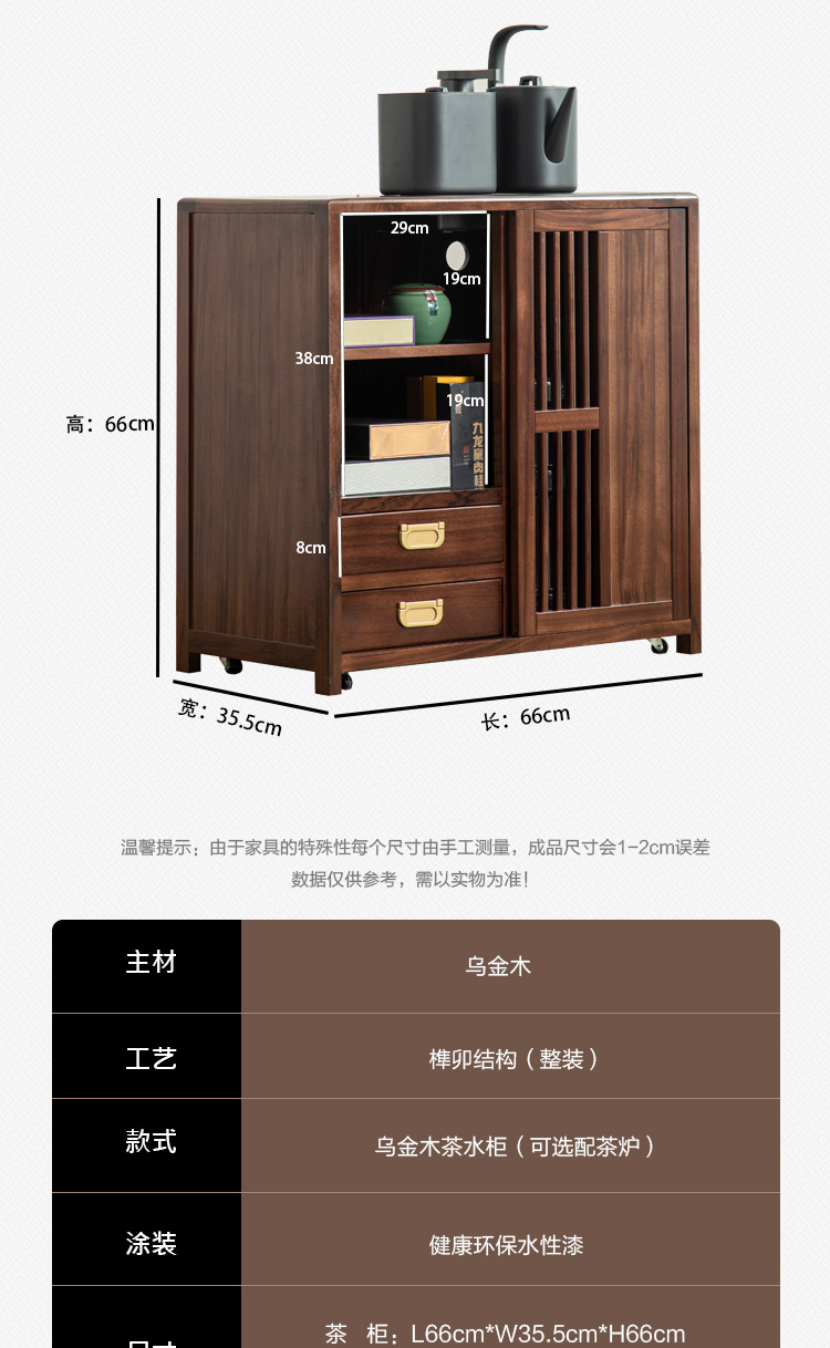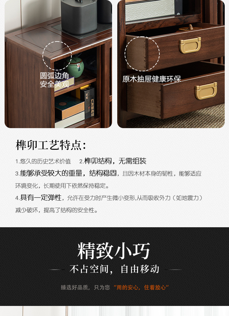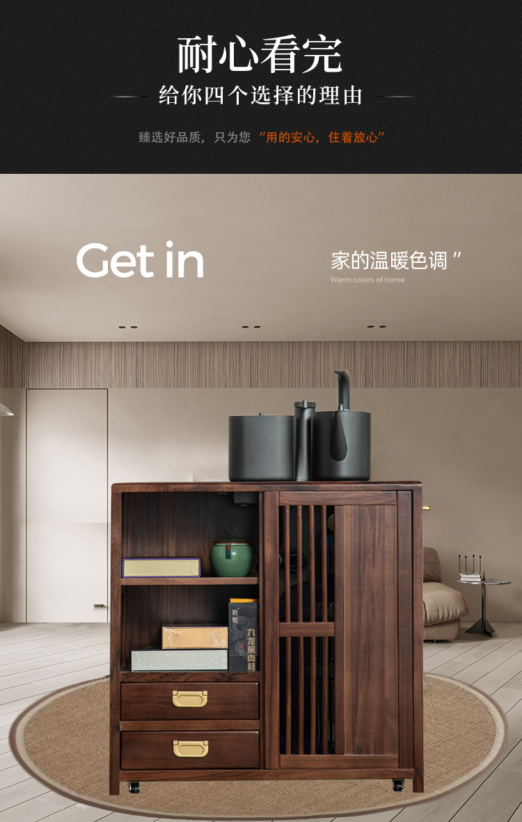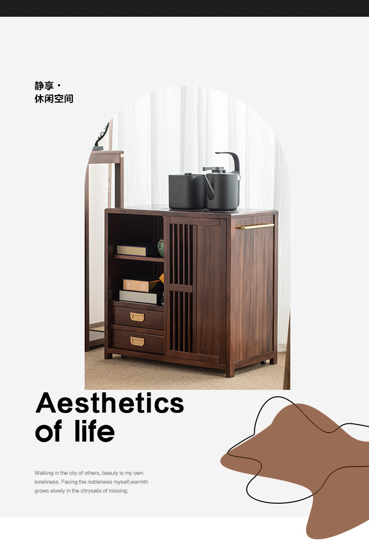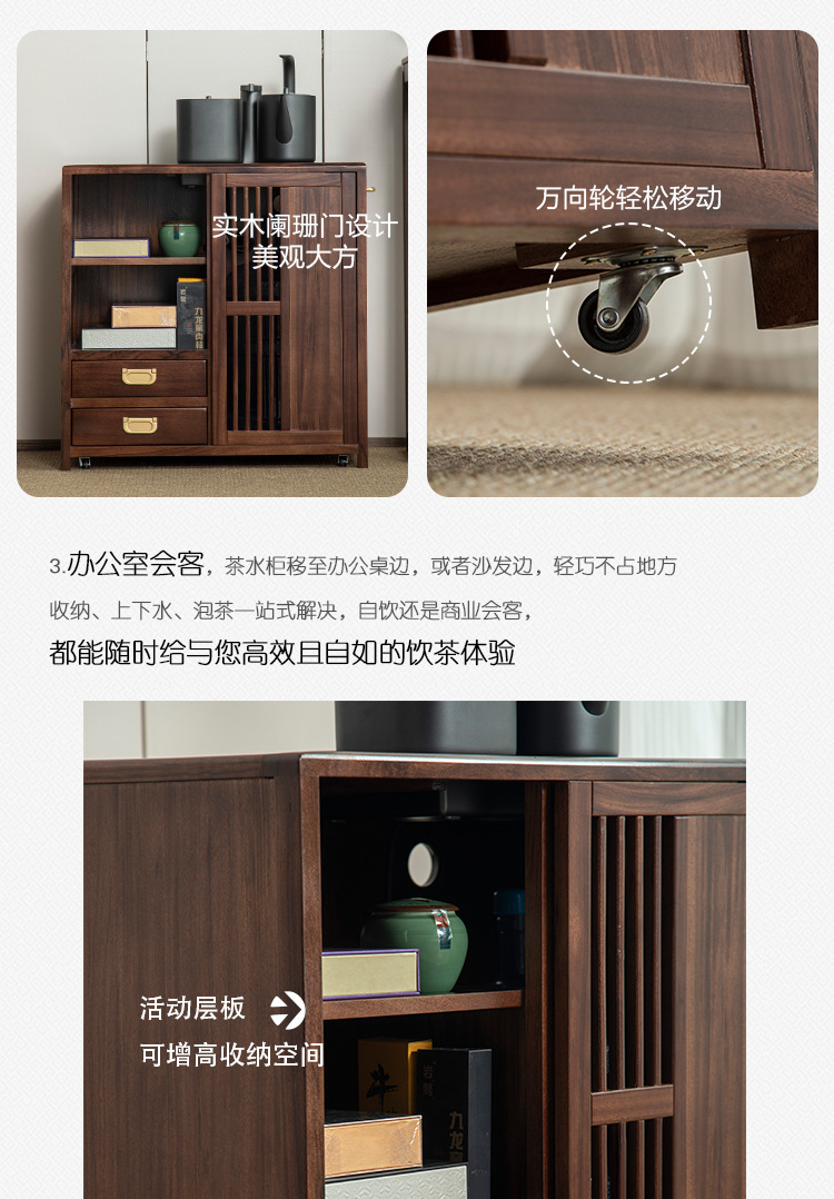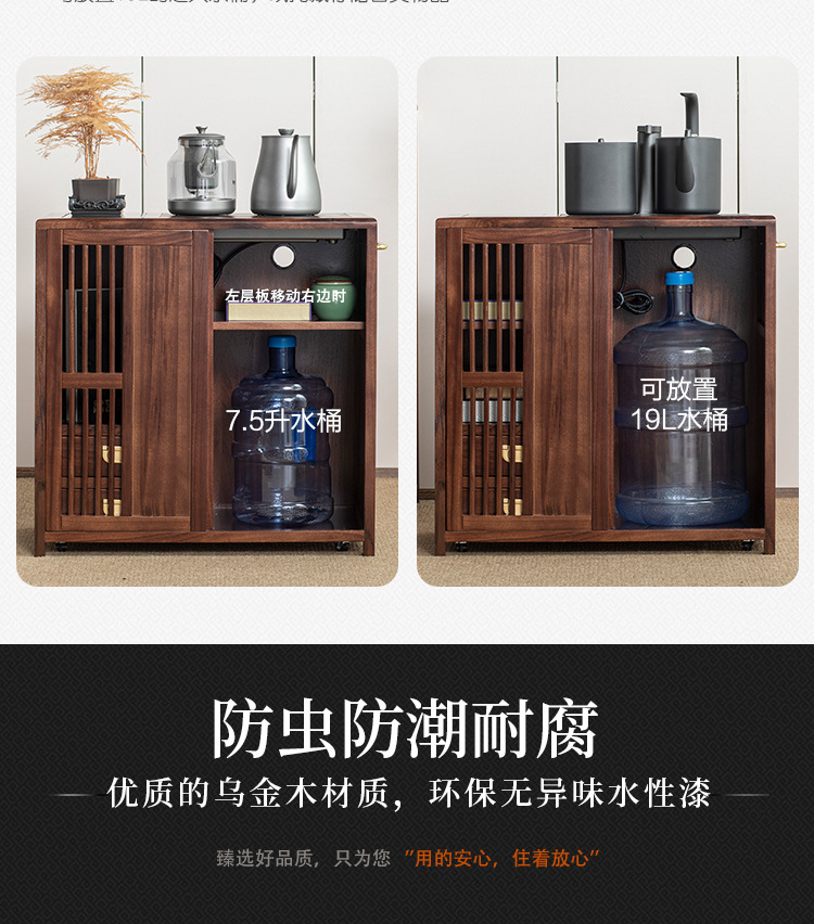 새로운 중국 스타일의 단단한 나무 차 캐비닛, 검은 금색 나무 이동식 소형 주전자, 통합 사이드 테이블, 차 테이블 사이드 캐비닛, 차 사이드 테이블