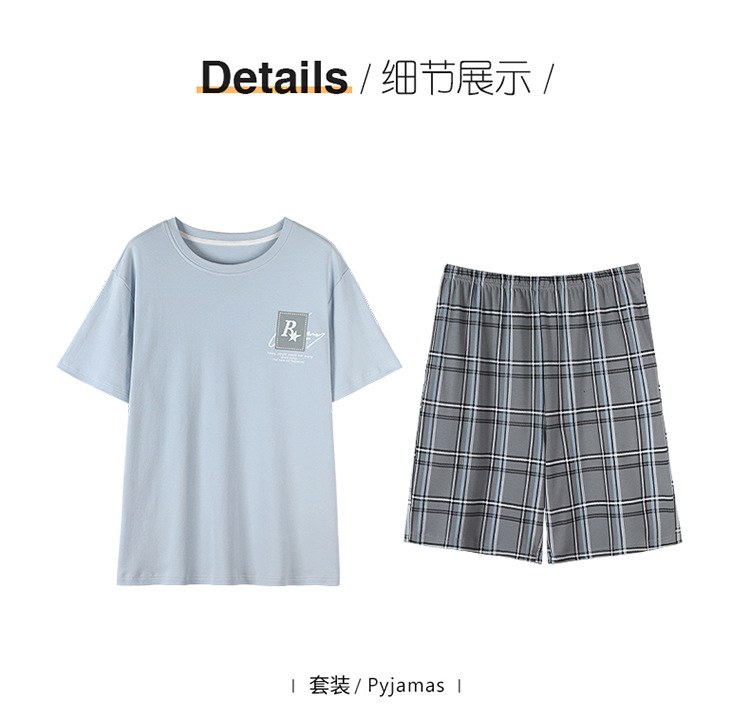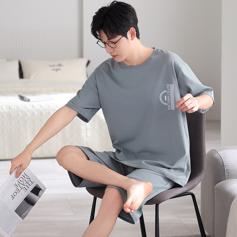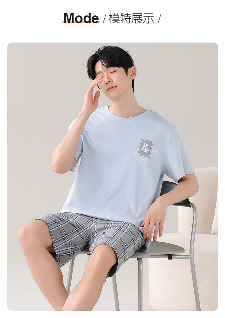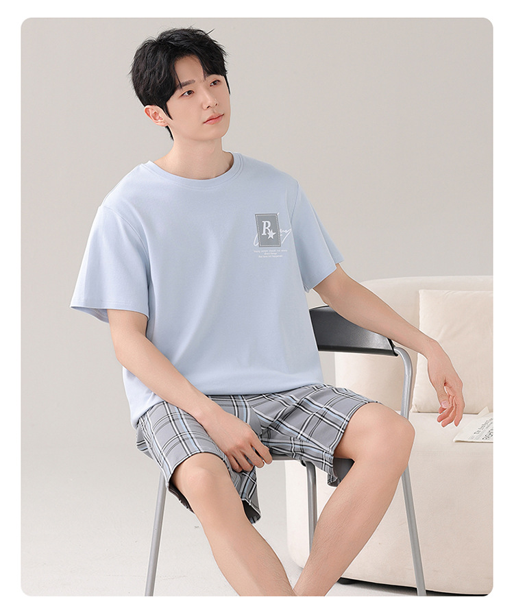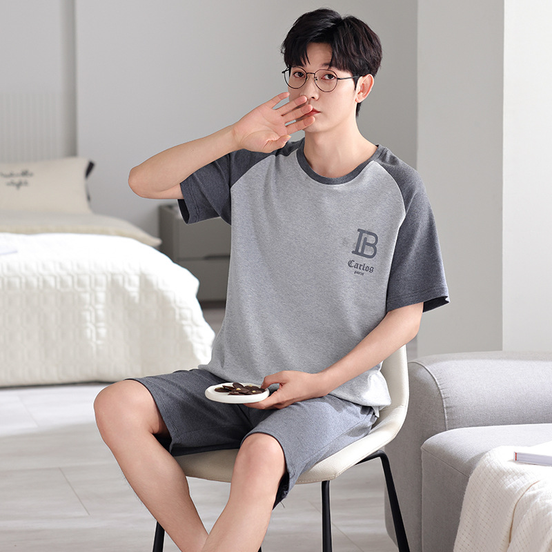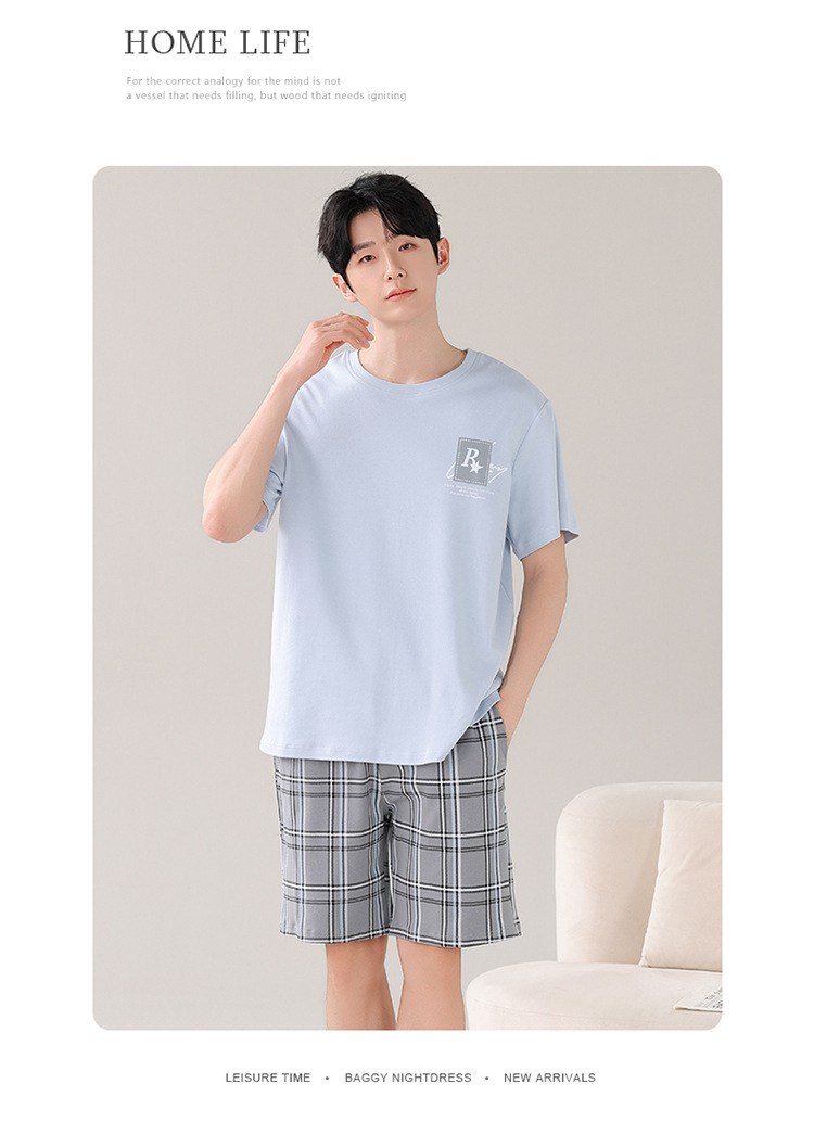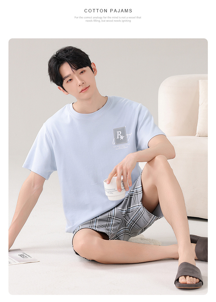 2025 년 여름 뉴 코튼 파자마 젊은 남성 반팔 반바지 라운드 넥 아웃웨어 캐주얼 스타일 세트