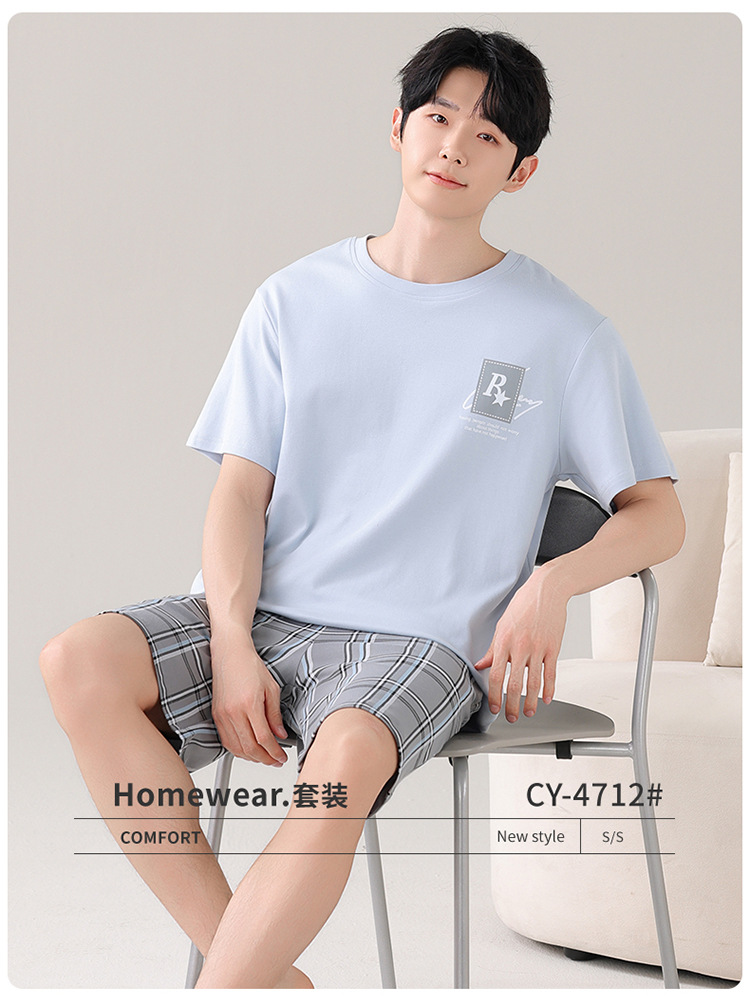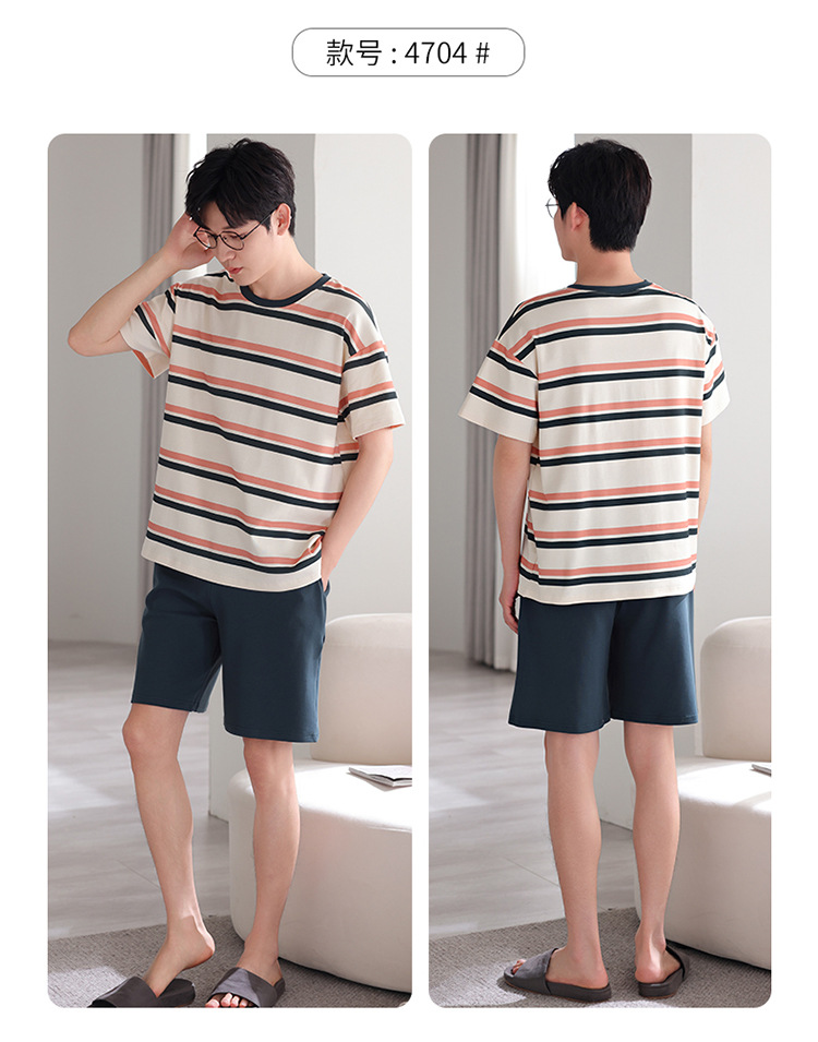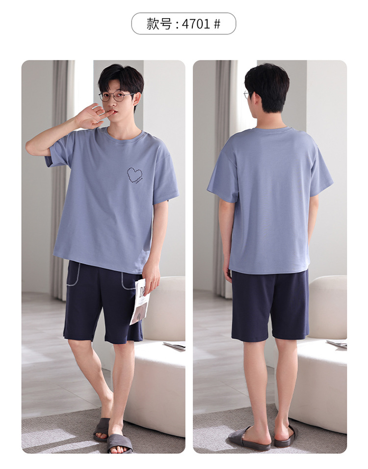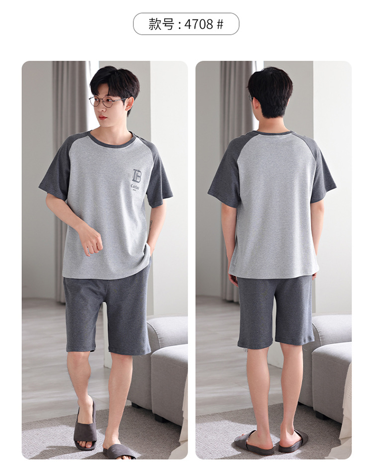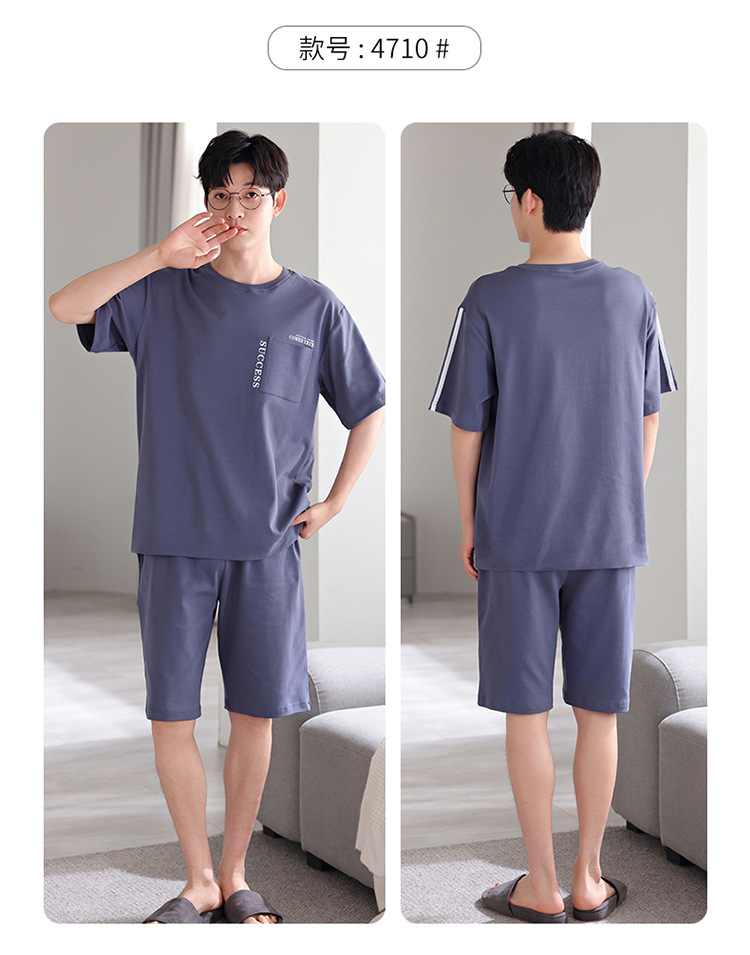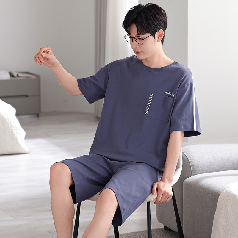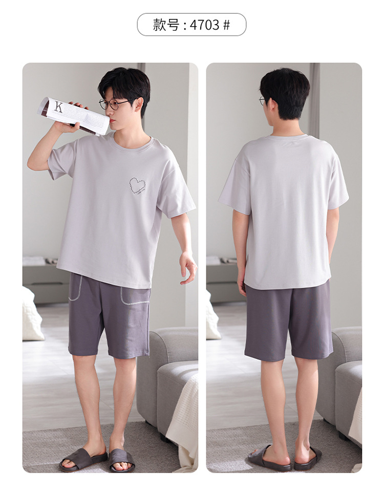 2025 년 여름 뉴 코튼 파자마 젊은 남성 반팔 반바지 라운드 넥 아웃웨어 캐주얼 스타일 세트