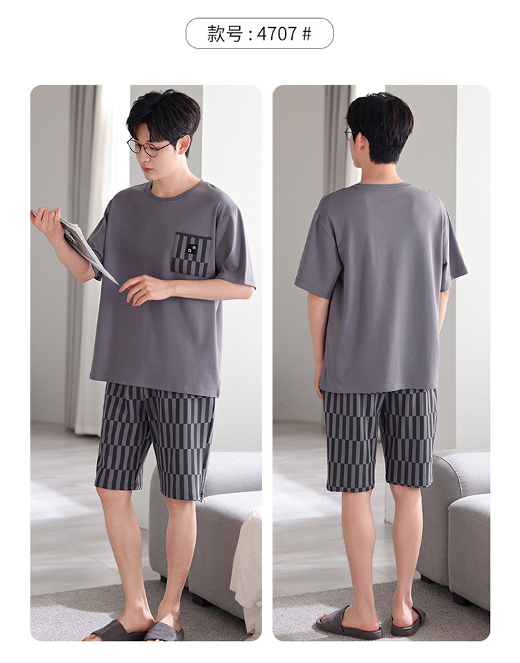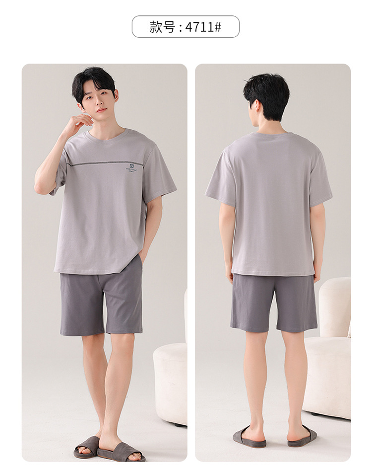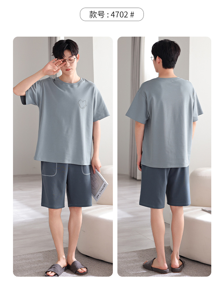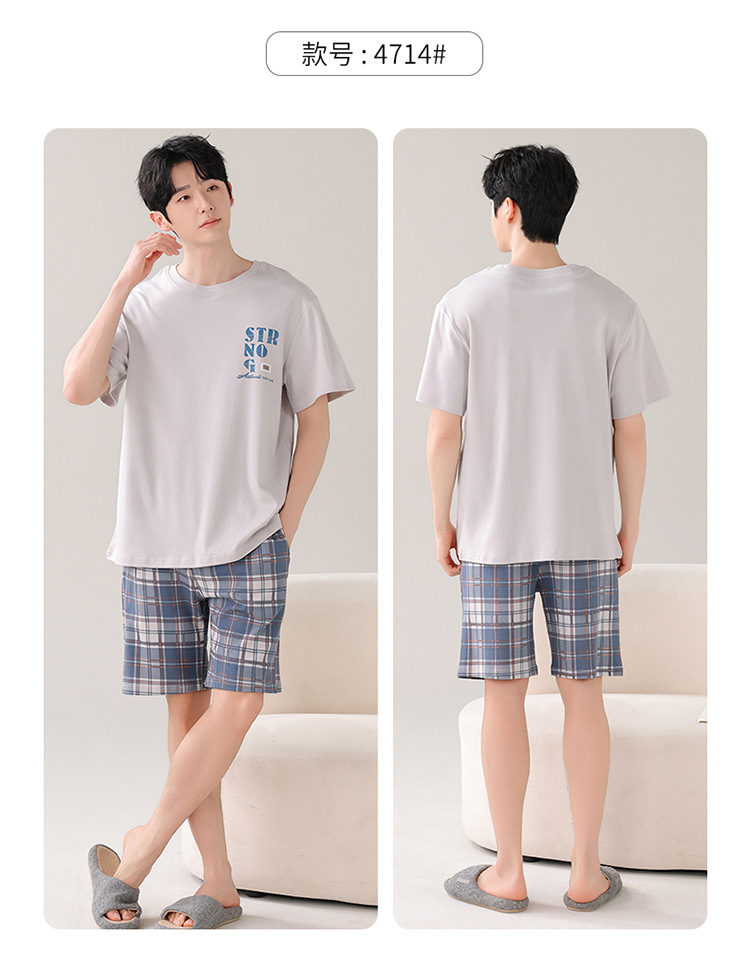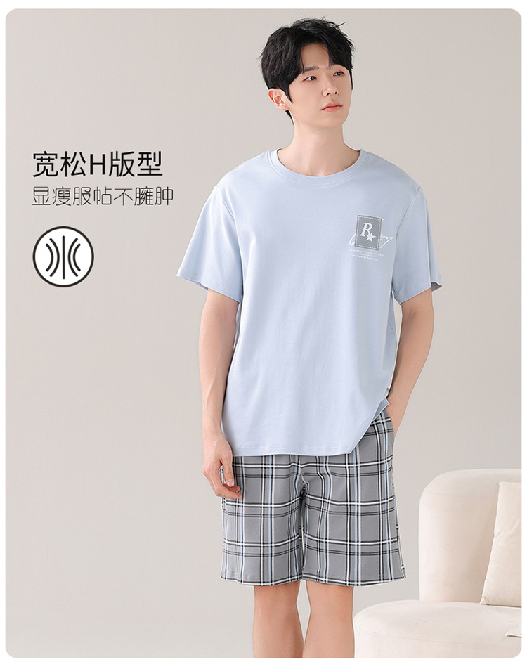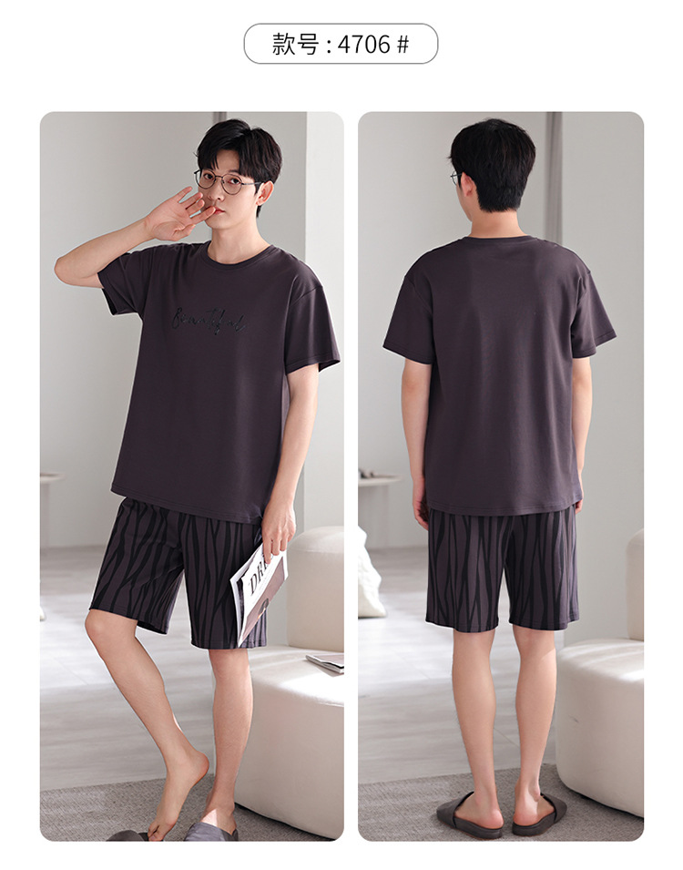 2025 년 여름 뉴 코튼 파자마 젊은 남성 반팔 반바지 라운드 넥 아웃웨어 캐주얼 스타일 세트