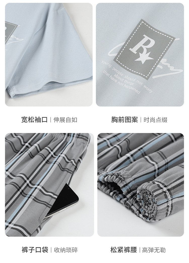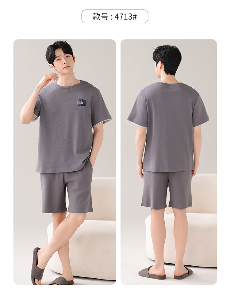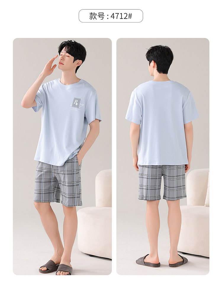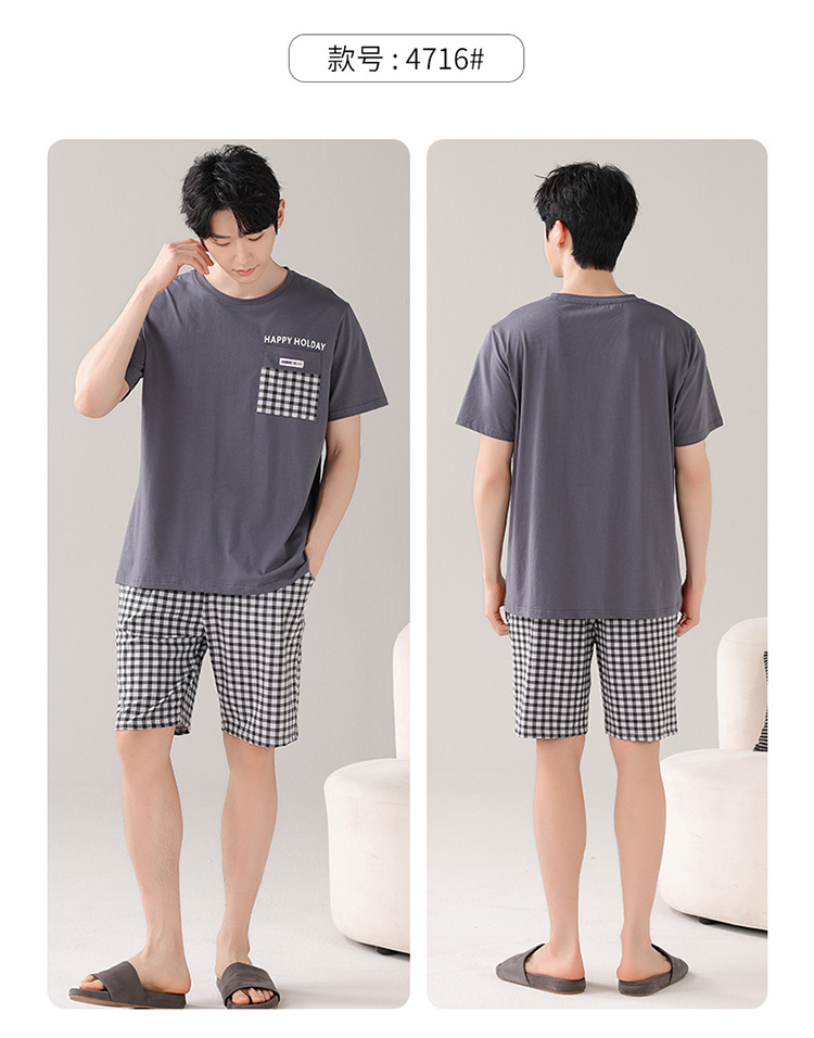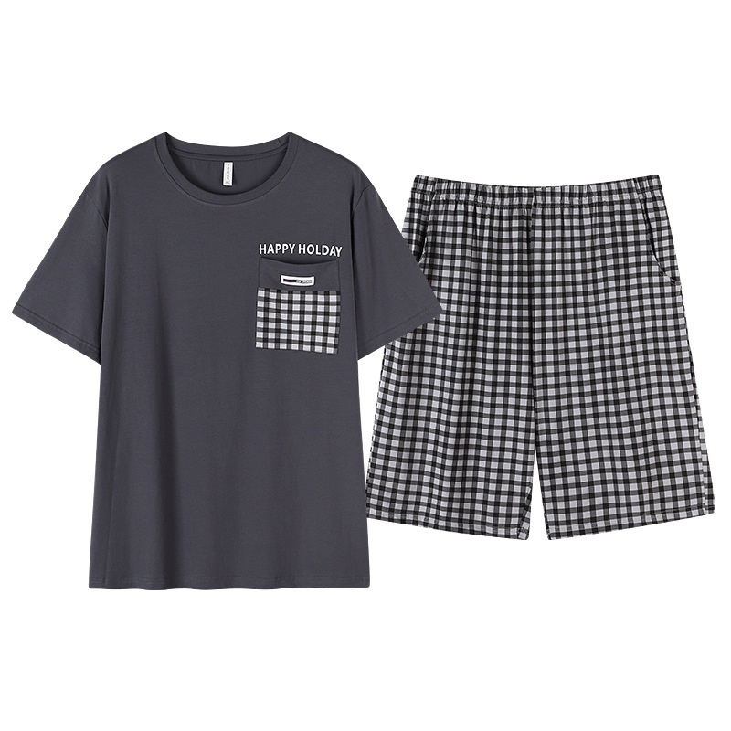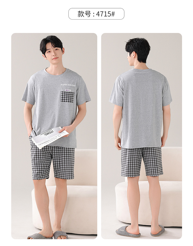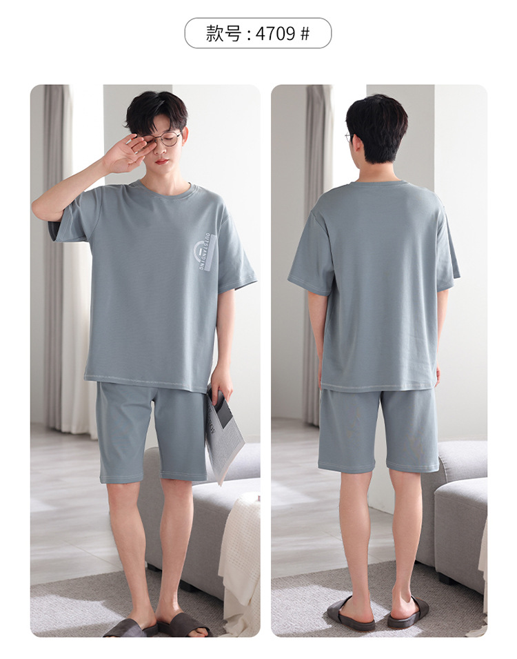 2025 년 여름 뉴 코튼 파자마 젊은 남성 반팔 반바지 라운드 넥 아웃웨어 캐주얼 스타일 세트