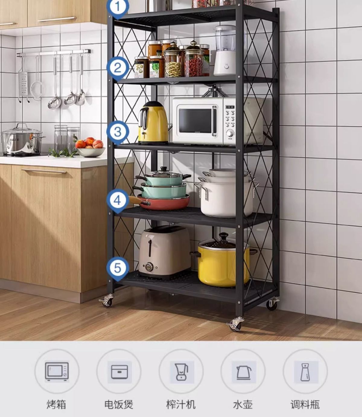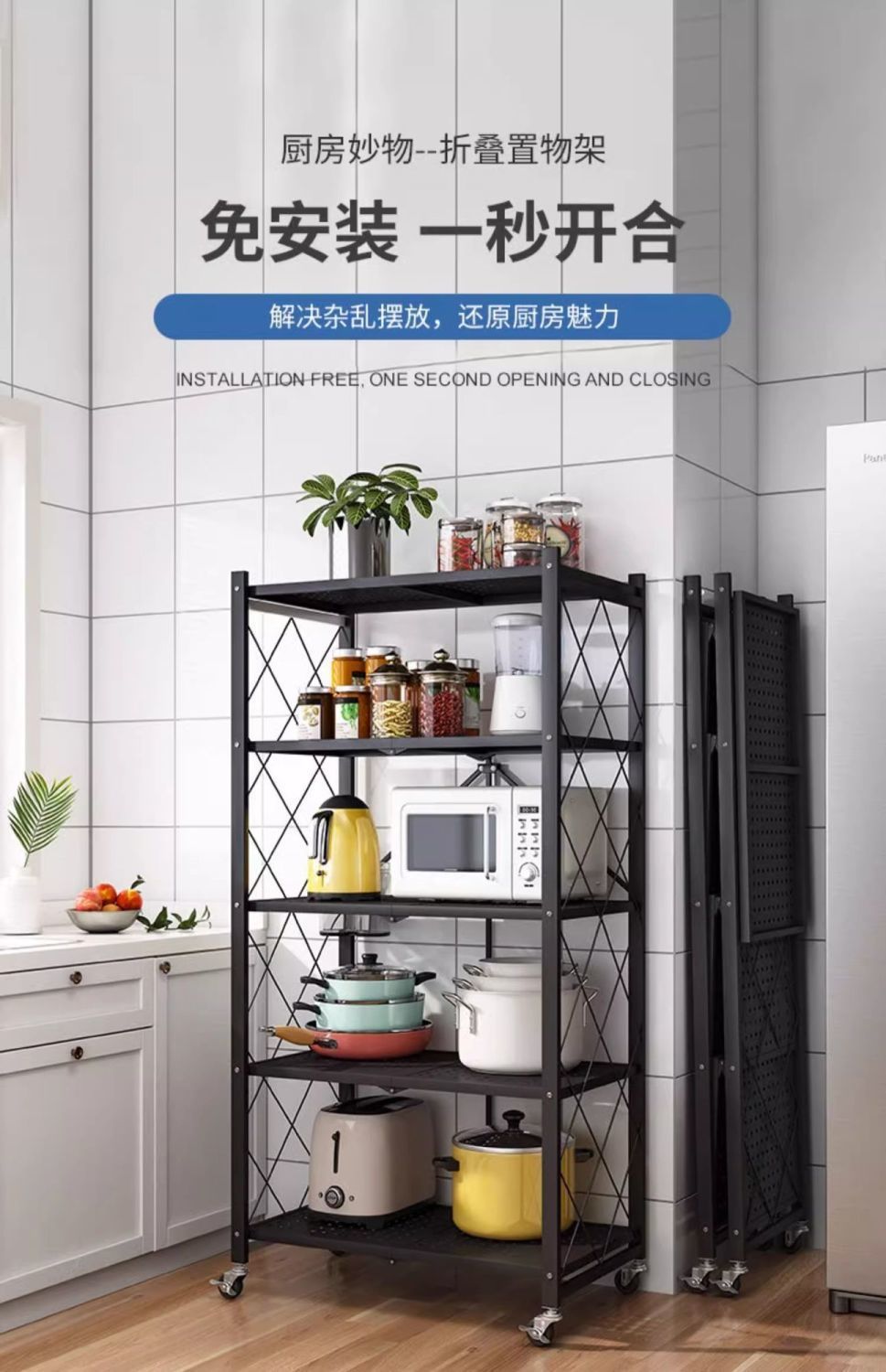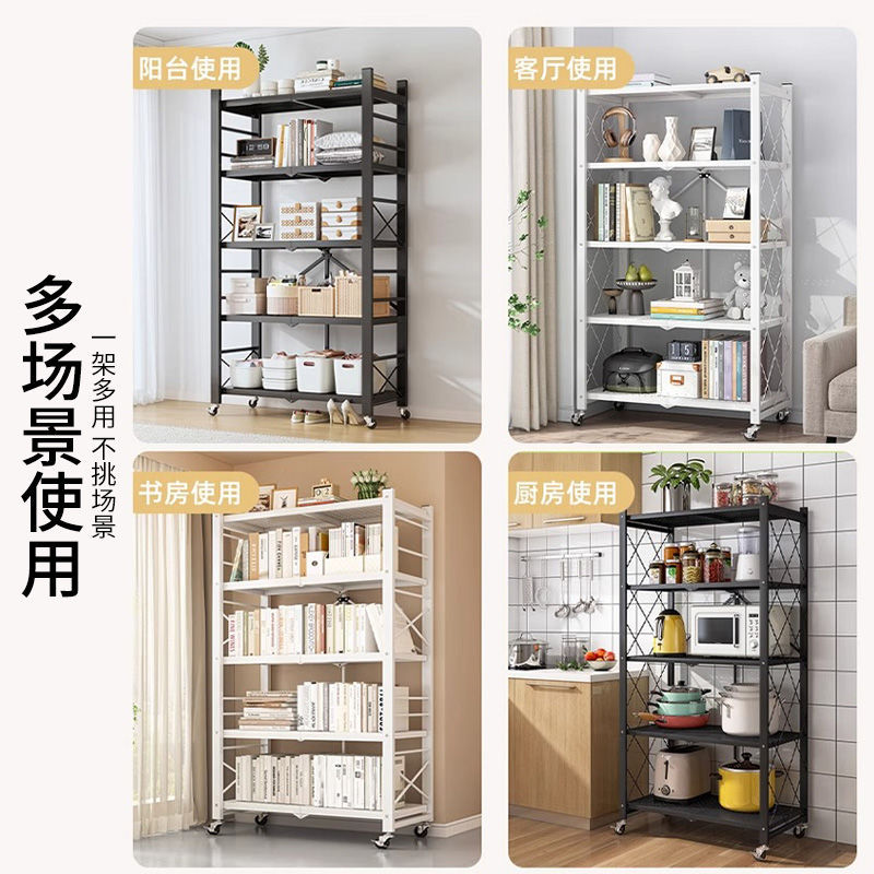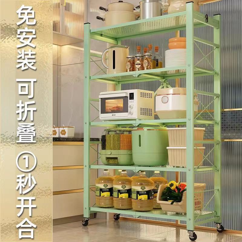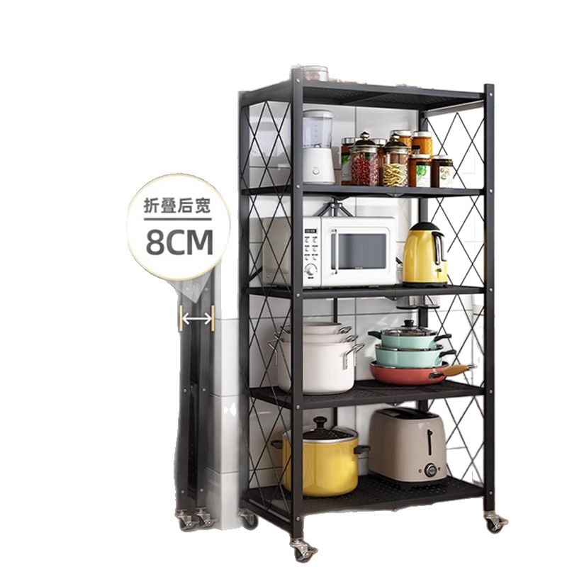 설치가 필요없는 접이식 주방 보관함 가정용 다층 오븐 바닥 스탠딩 전자 레인지 보관함 보관함 선반