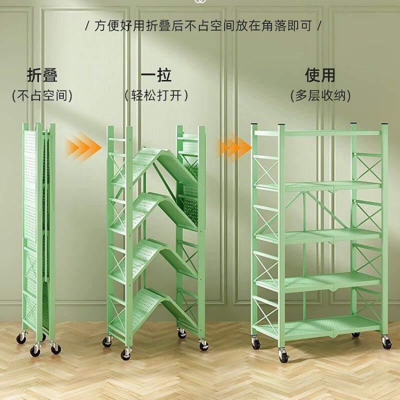 [설치가 필요 없는 1초 접이식 수납선반] - 그린 5단 길이 81